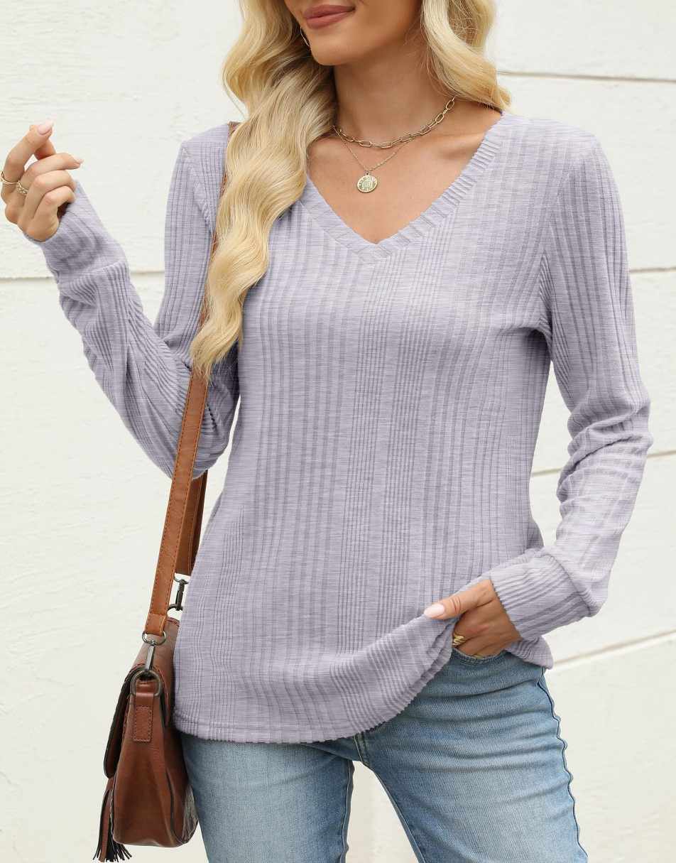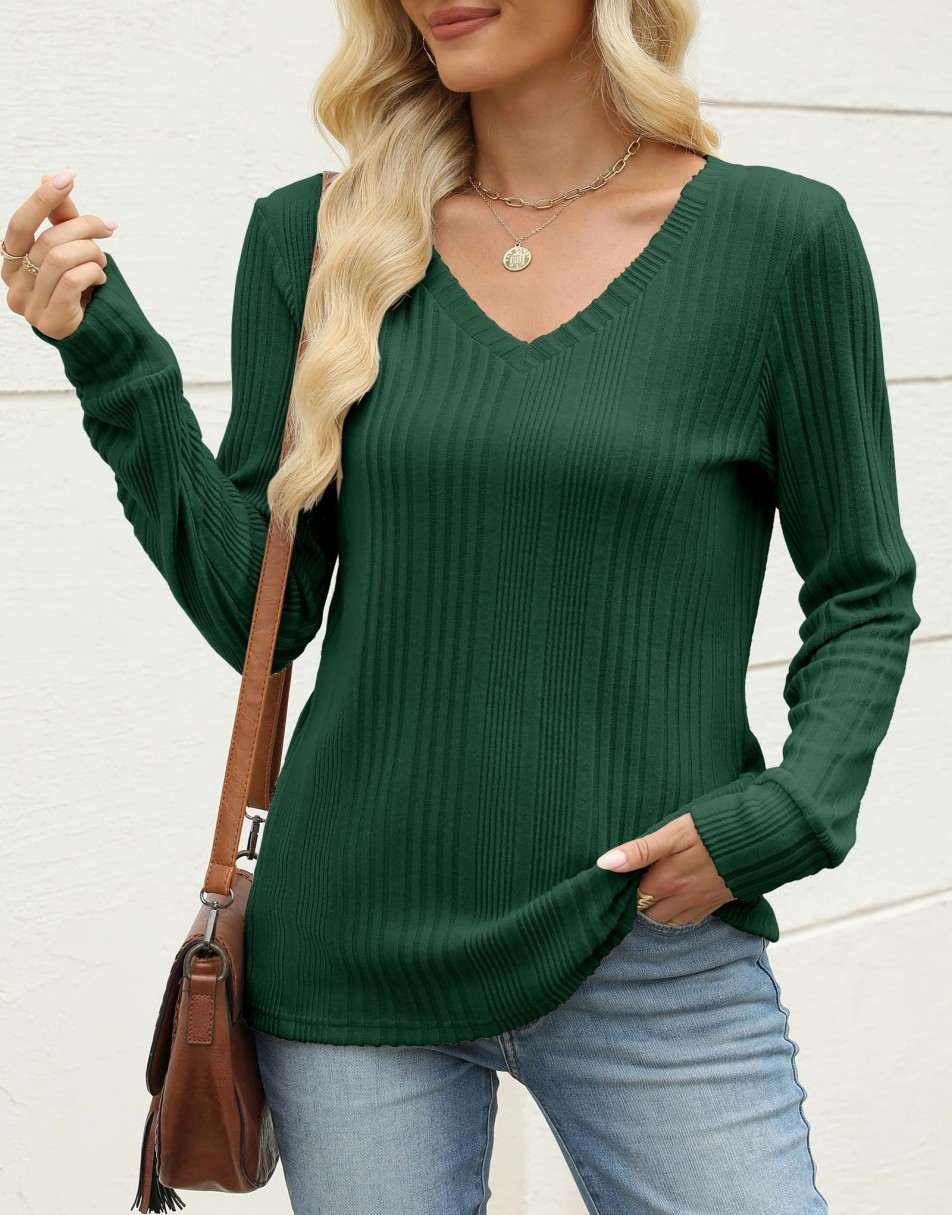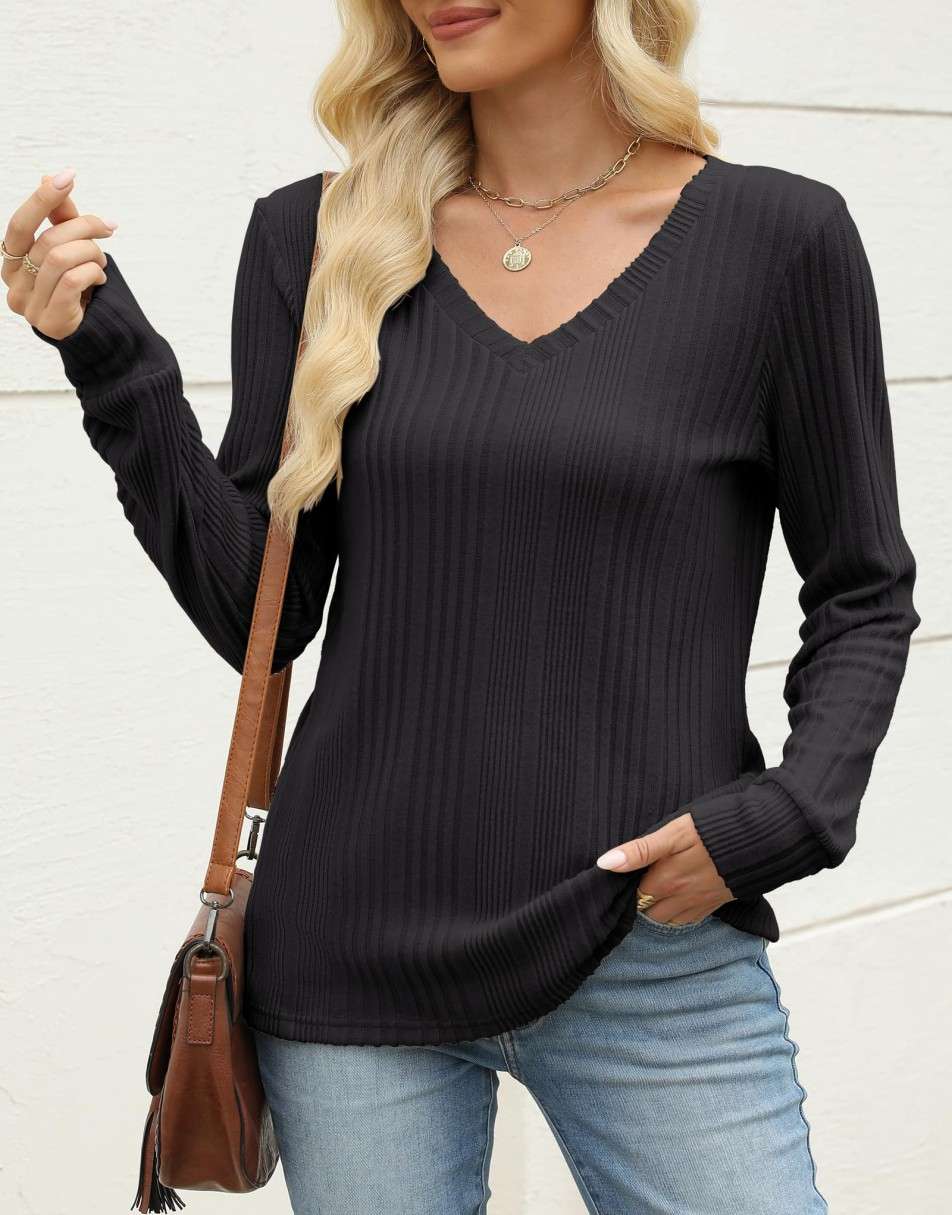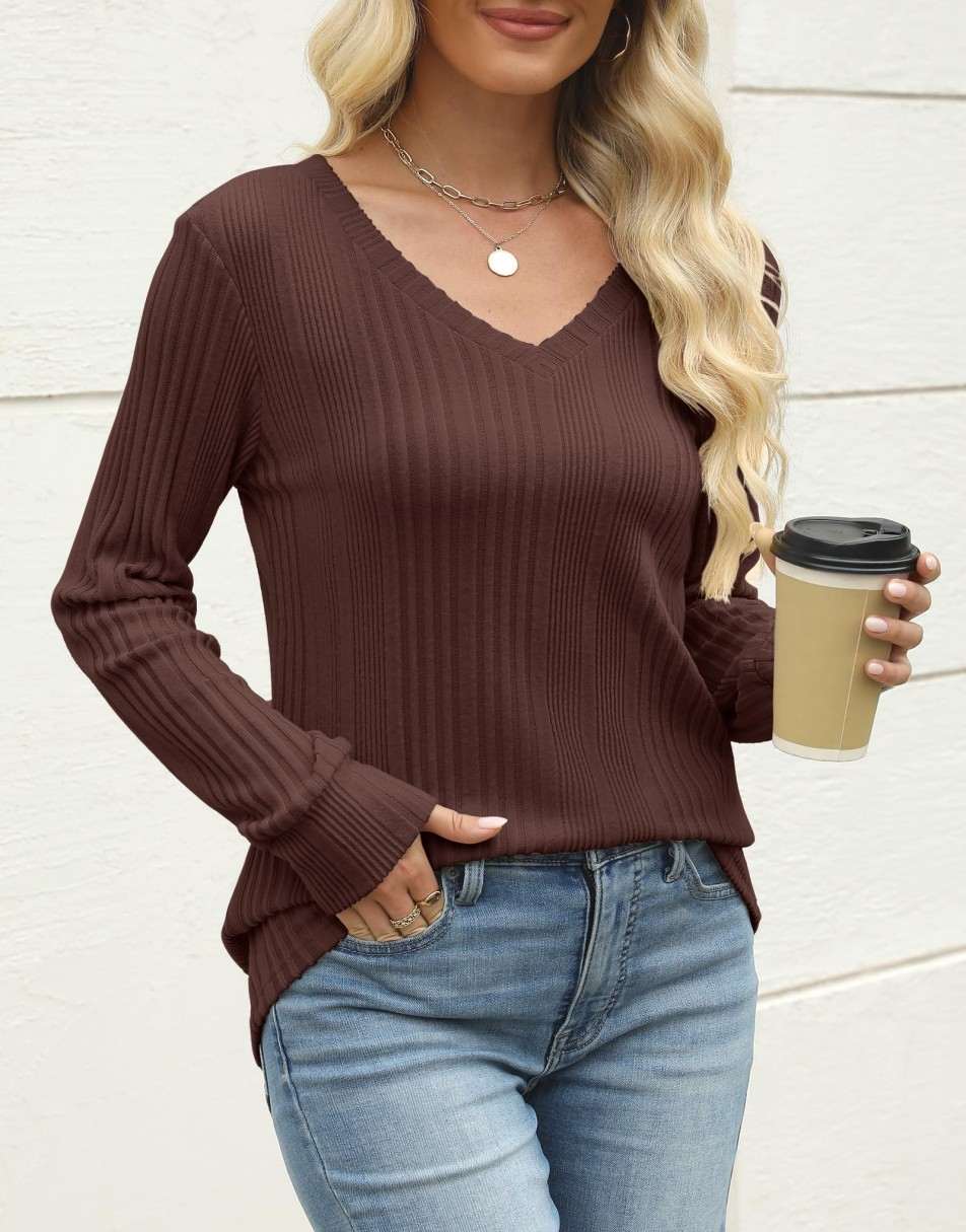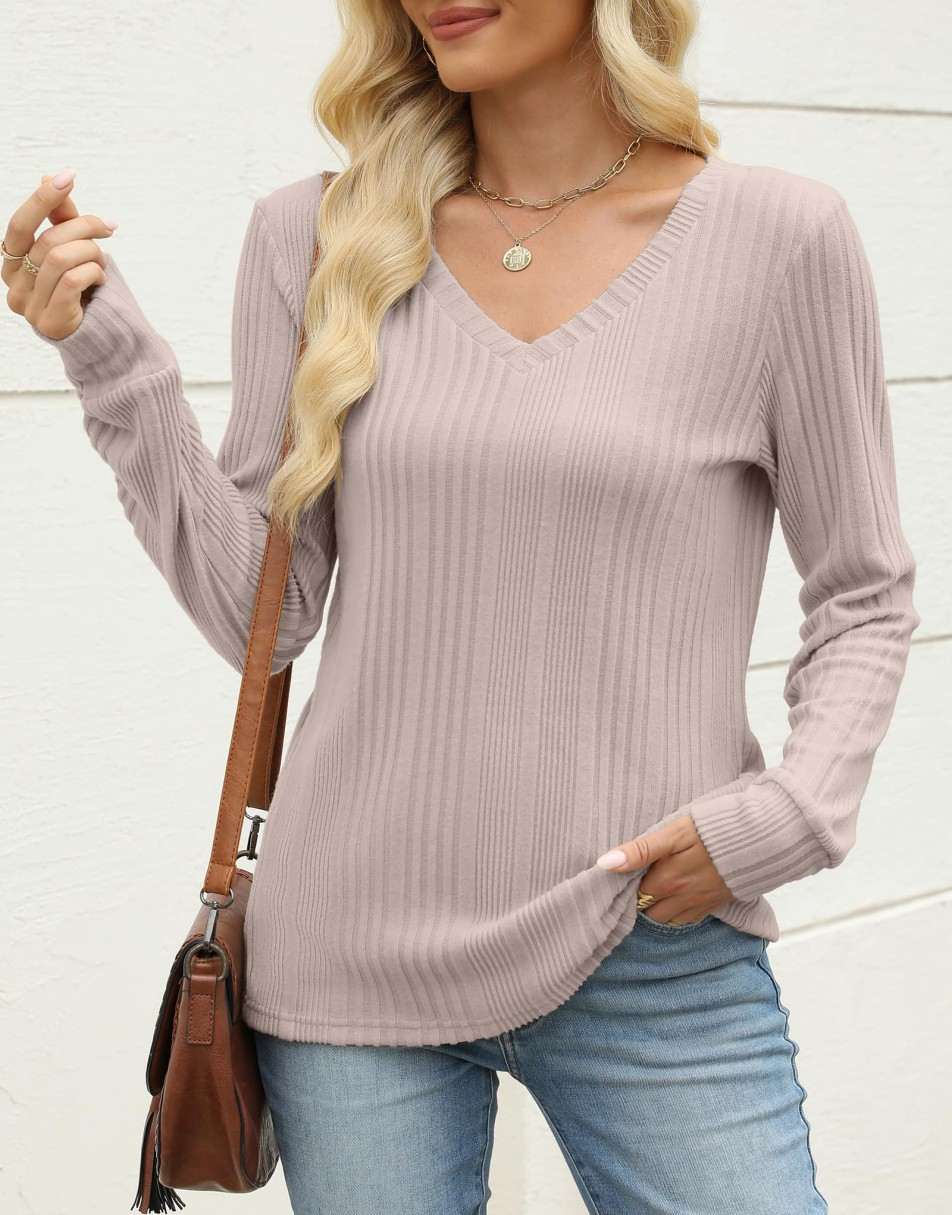 - Features - Women's Casual lightweight sweater, v neck, long sleeve shirts, irregular pit strips fabric tops.The women tops great for casual daily wear, school, office, work, shopping, vacation, travel, going out. The lightweight sweater goes well with jeans, shorts, leggings, or skirts.