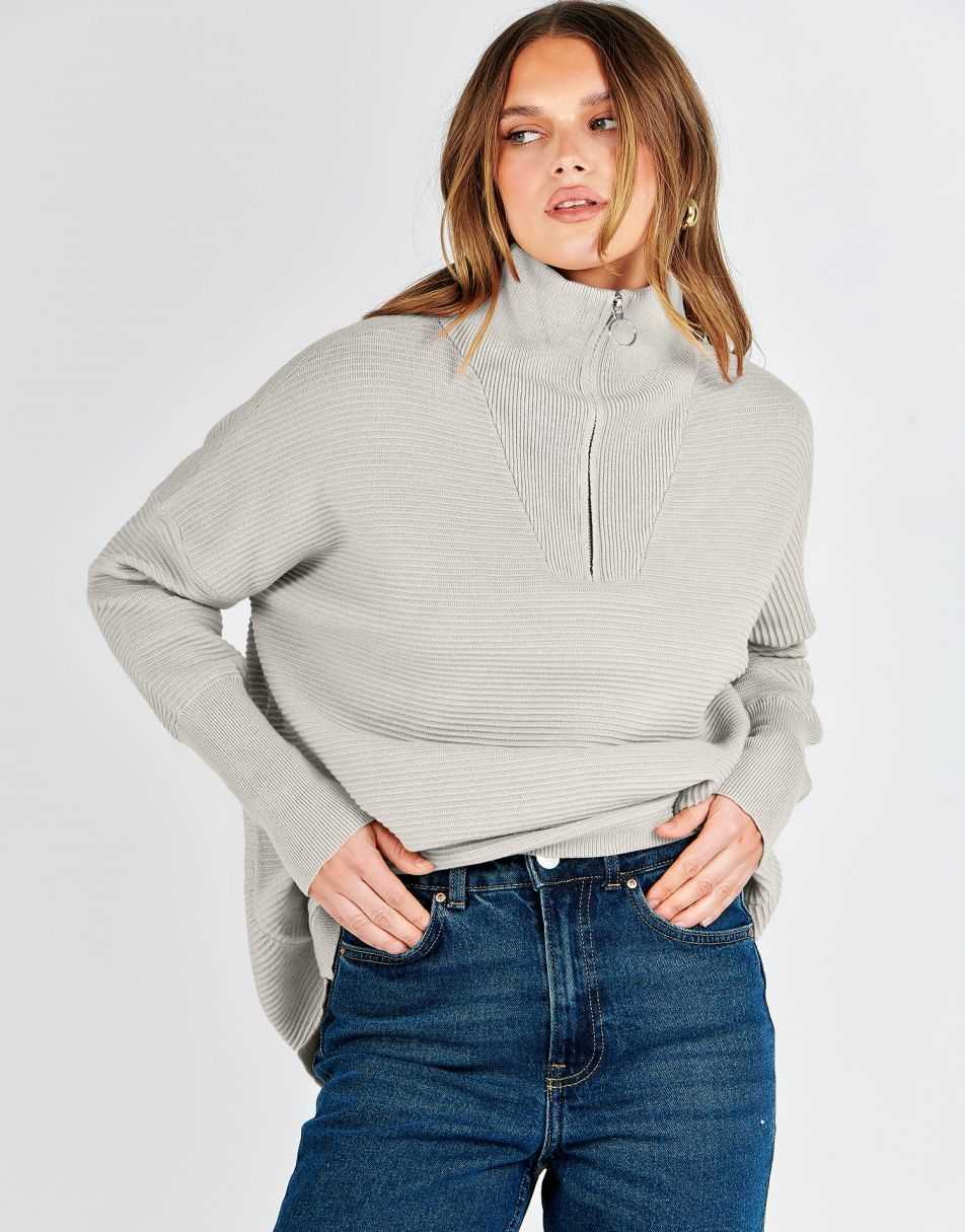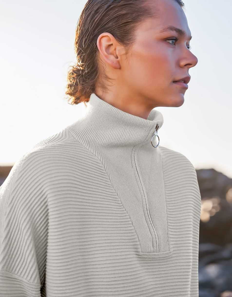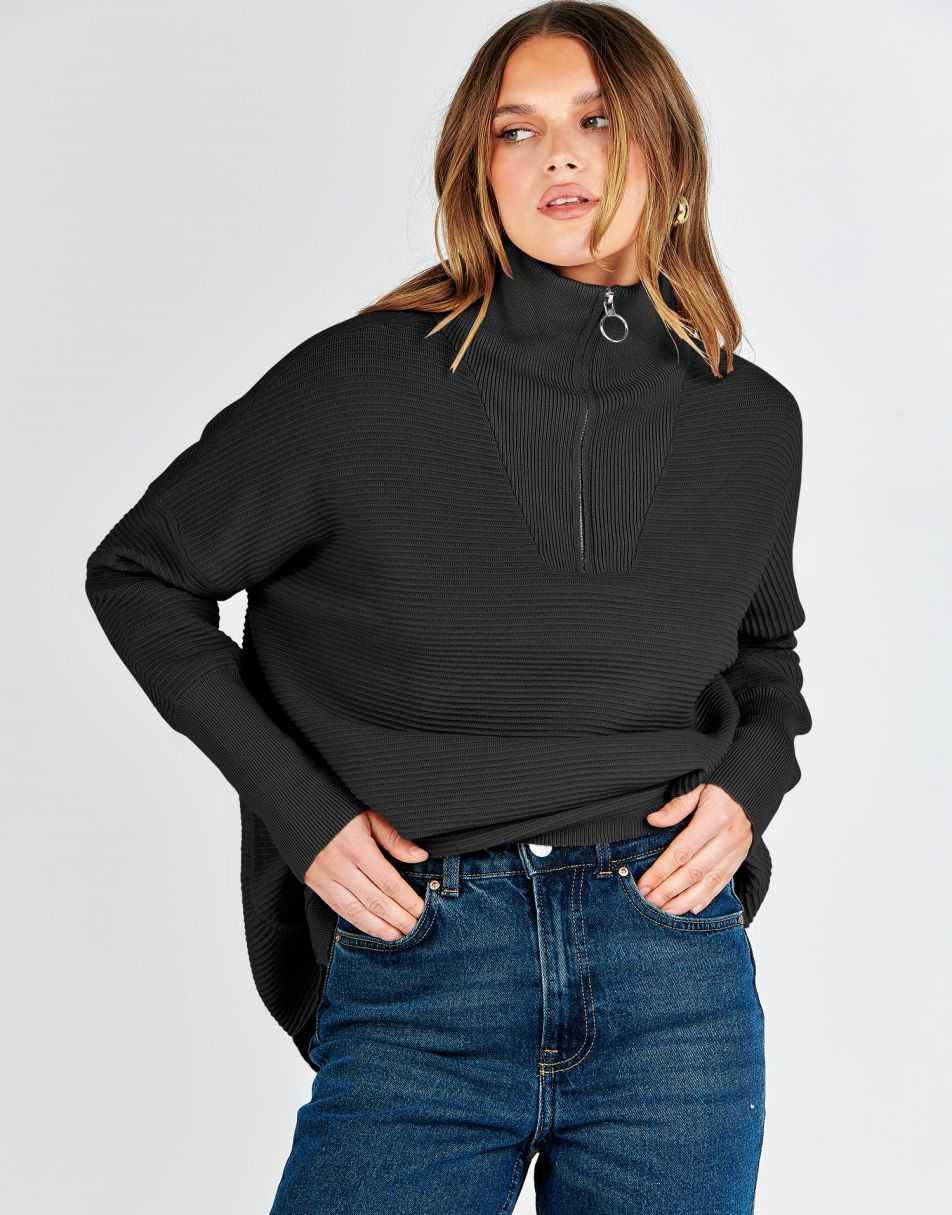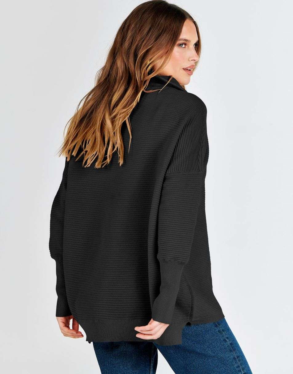 - Design - 2023 fall / winter fashion sweater锛�quarter zipper锛�v neck锛�collared锛�oversized style锛�Slit Side锛�long sleeve锛�ribbed knit tunic sweater.