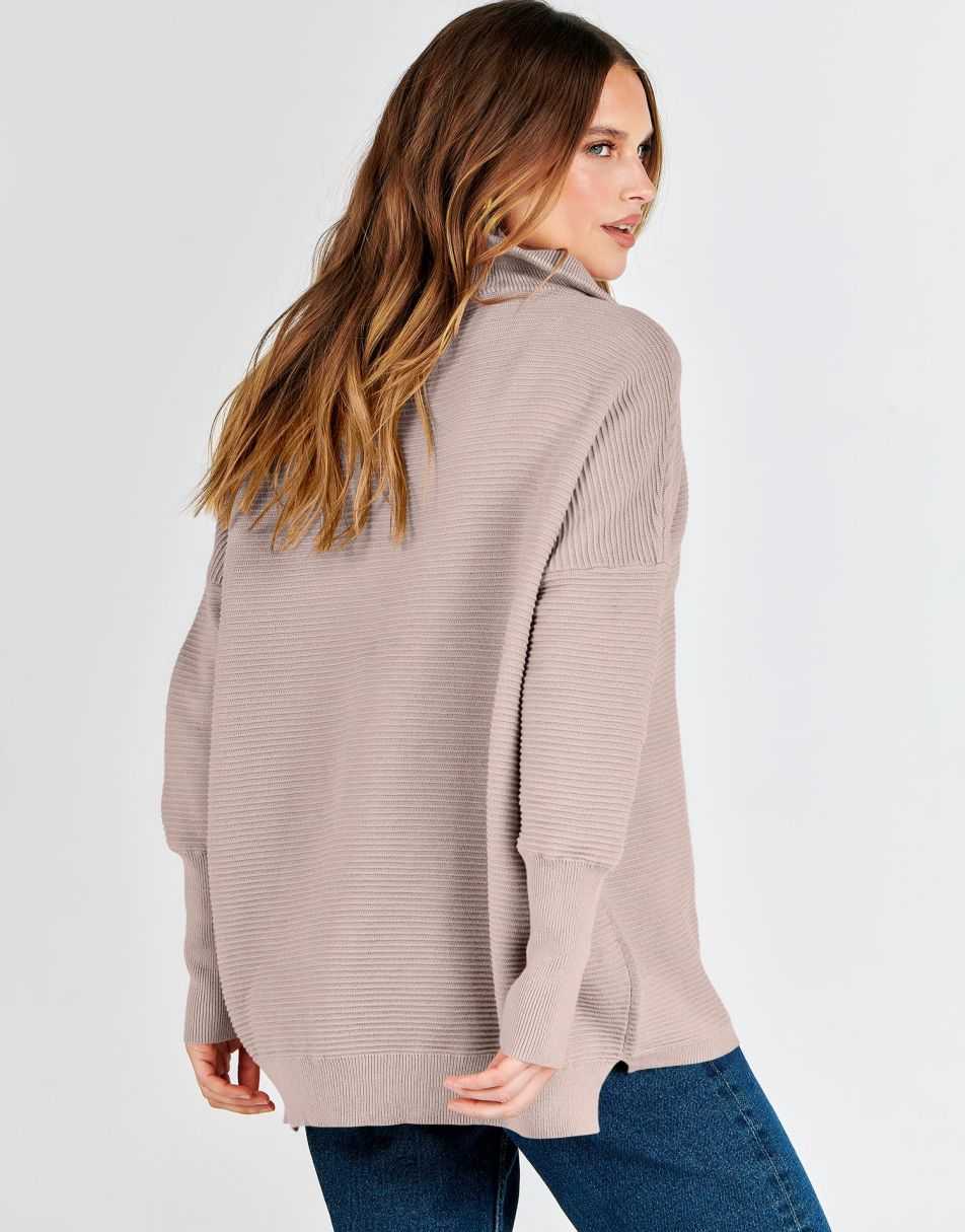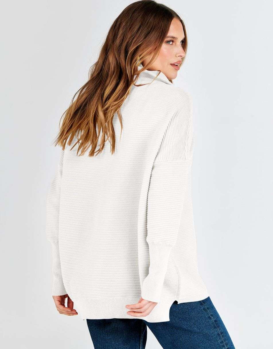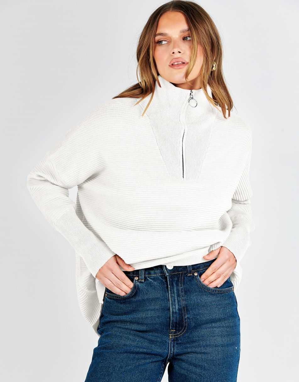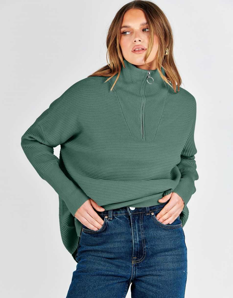 - Design - 2023 fall / winter fashion sweater锛�quarter zipper锛�v neck锛�collared锛�oversized style锛�Slit Side锛�long sleeve锛�ribbed knit tunic sweater.