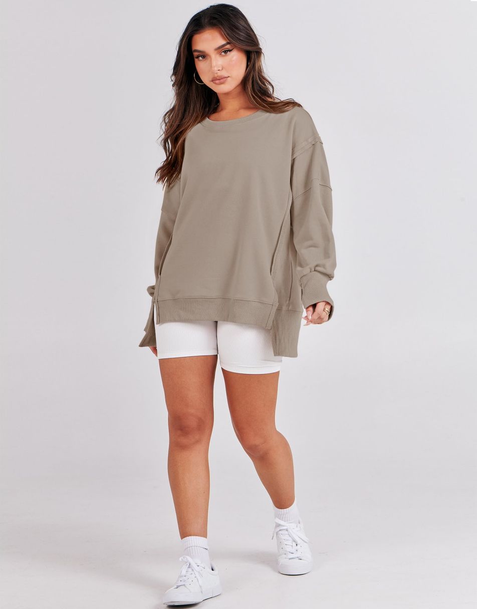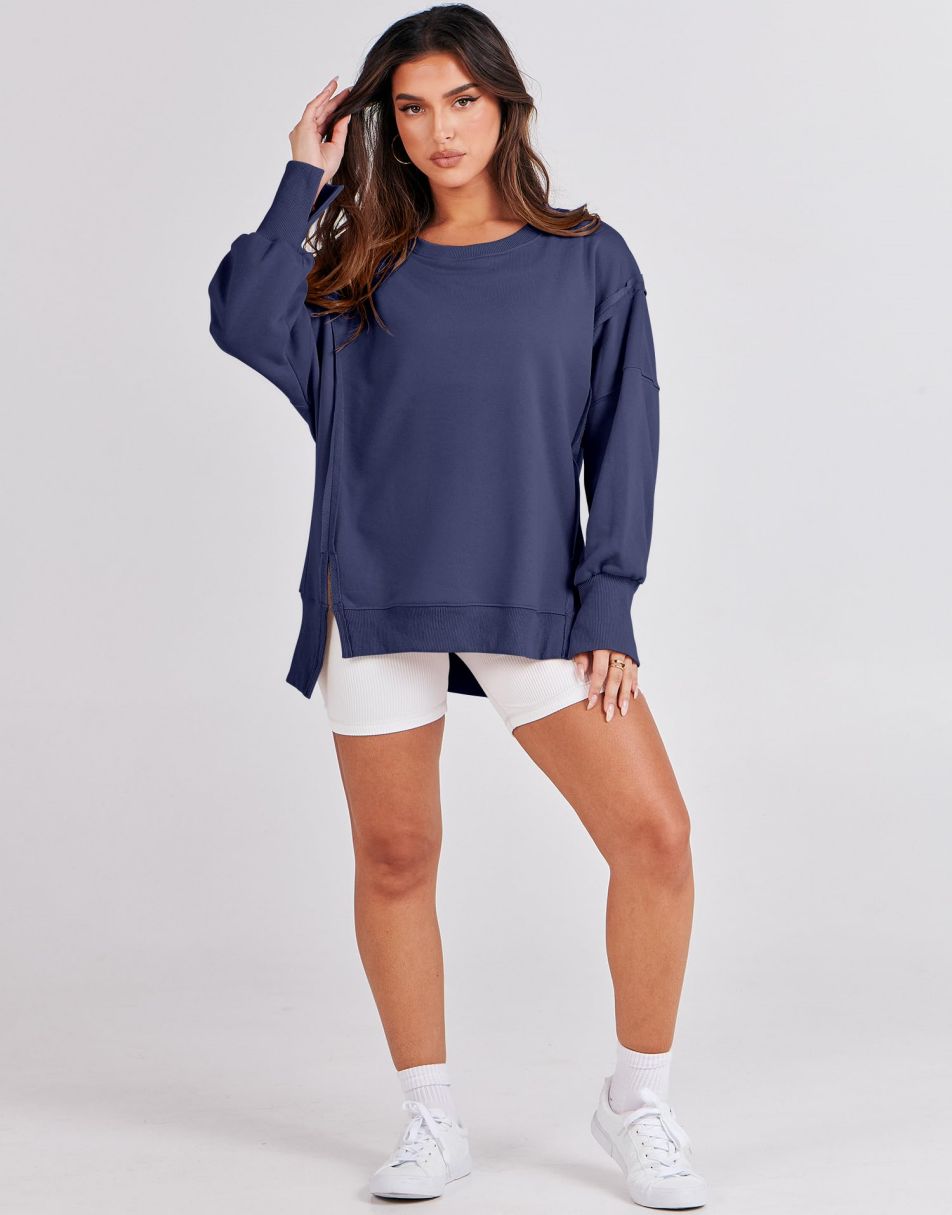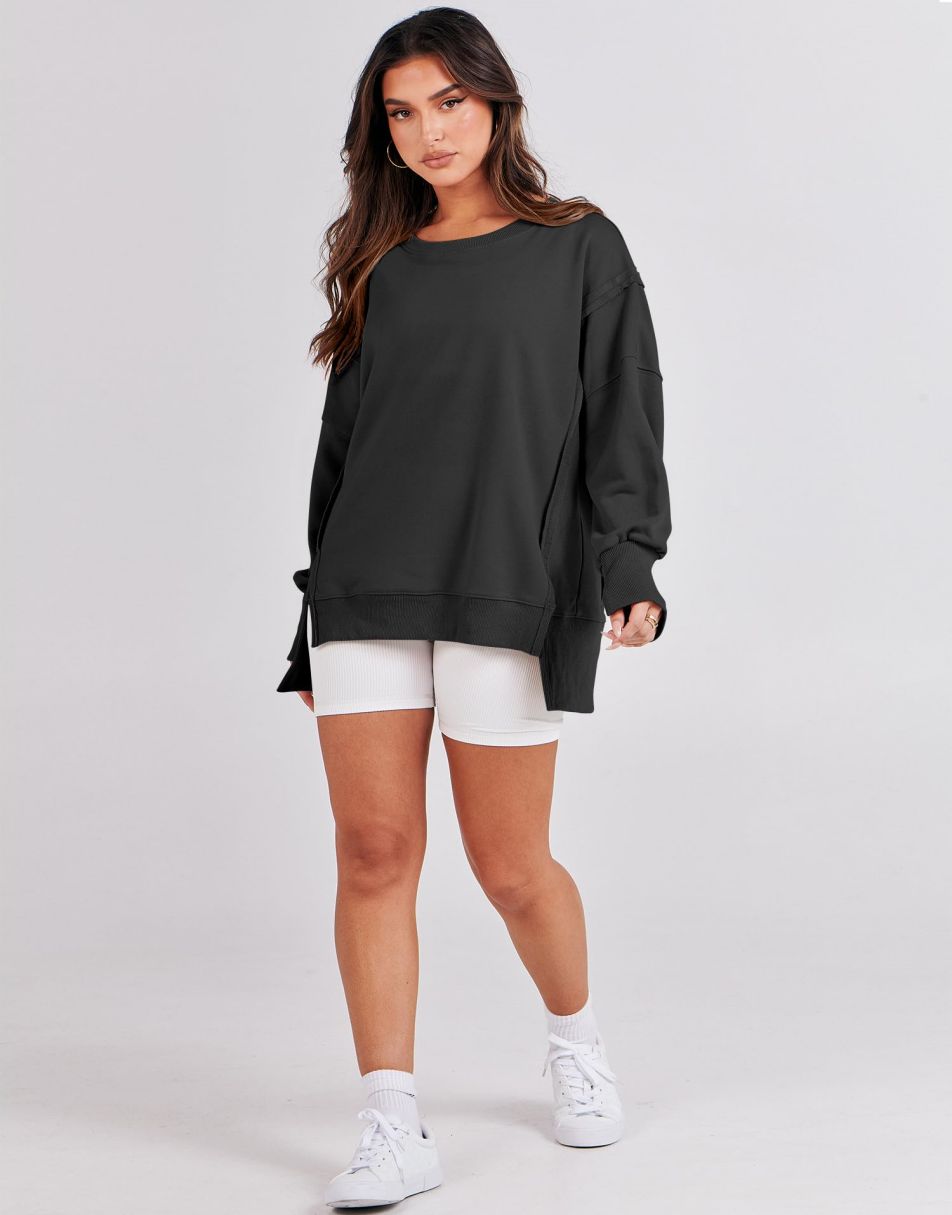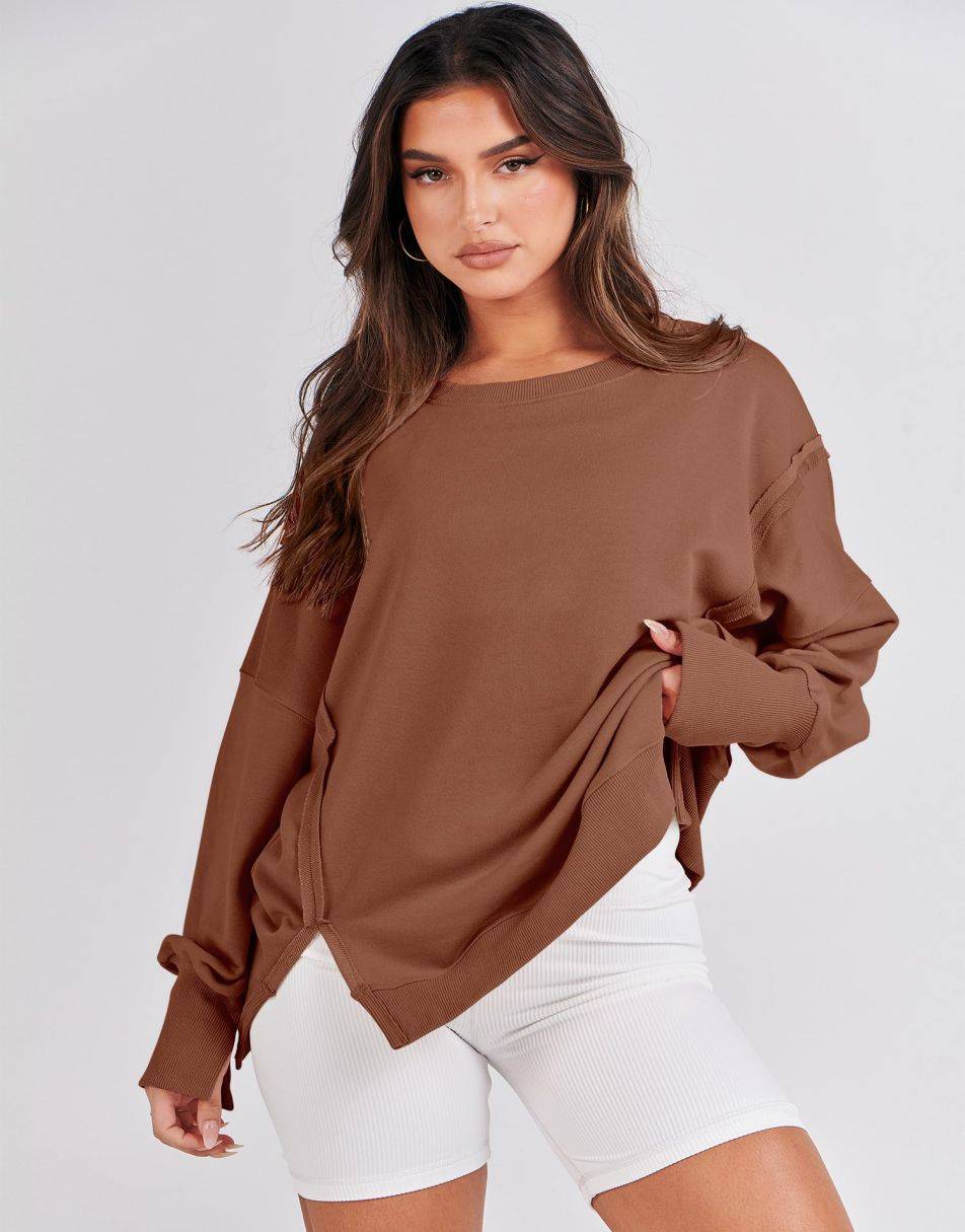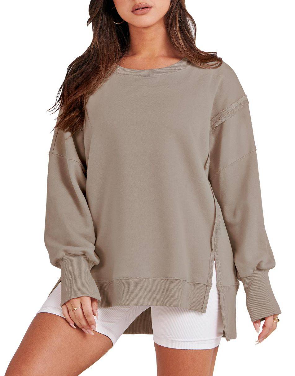 • ANRABESS Women's Oversized Sweatshirt Crew Neck Long Sleeve Casual Slit Sloucthy Pullover Top Fall Clothes