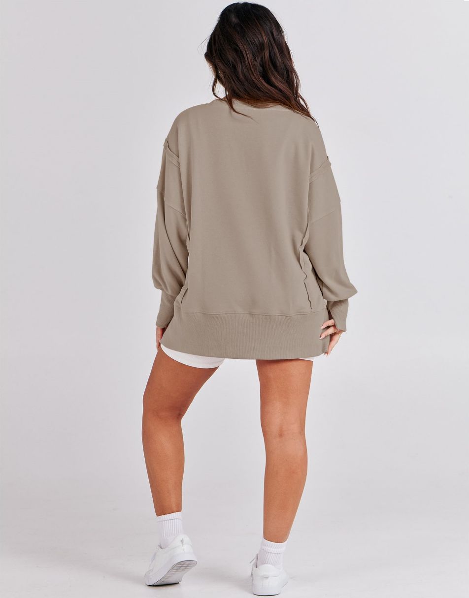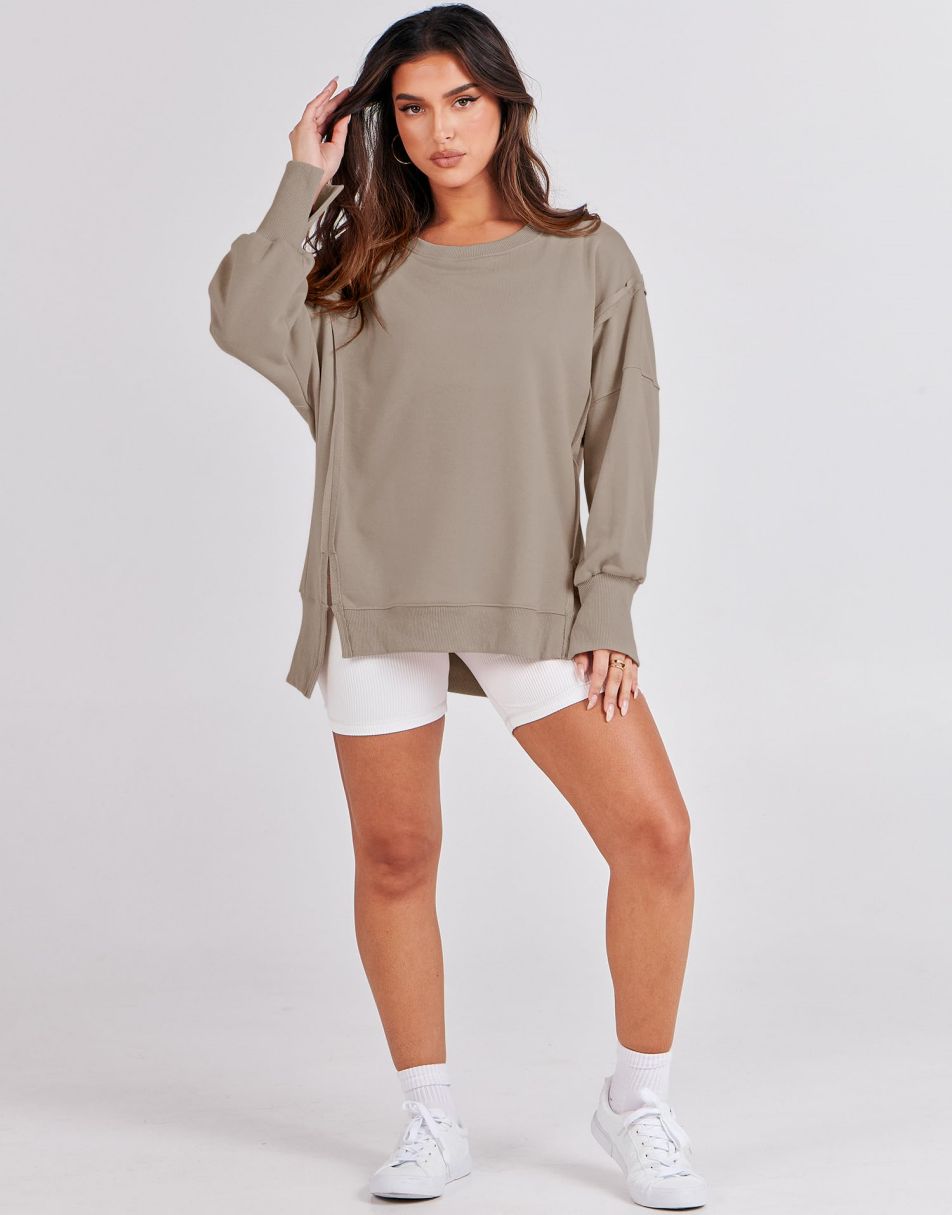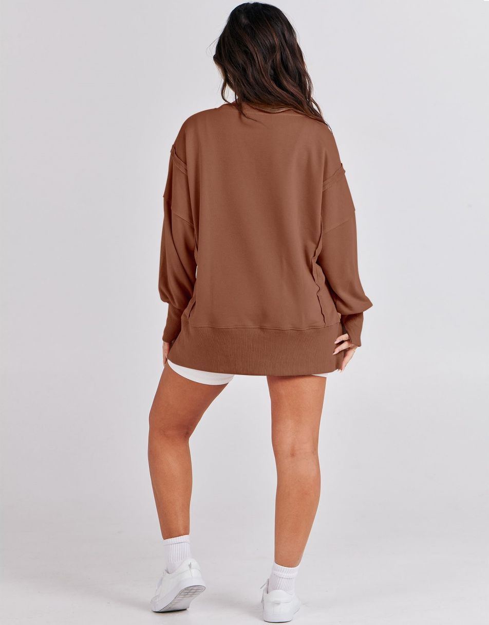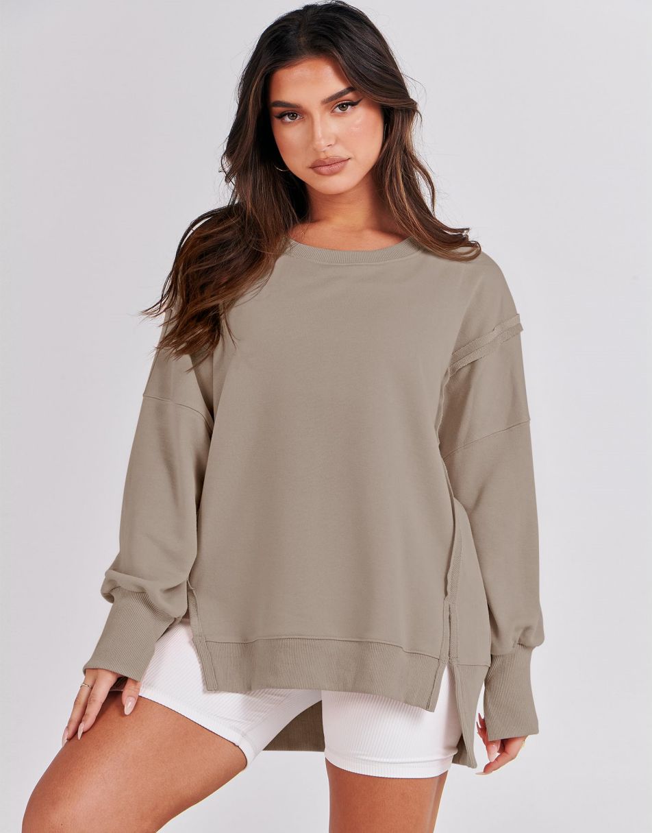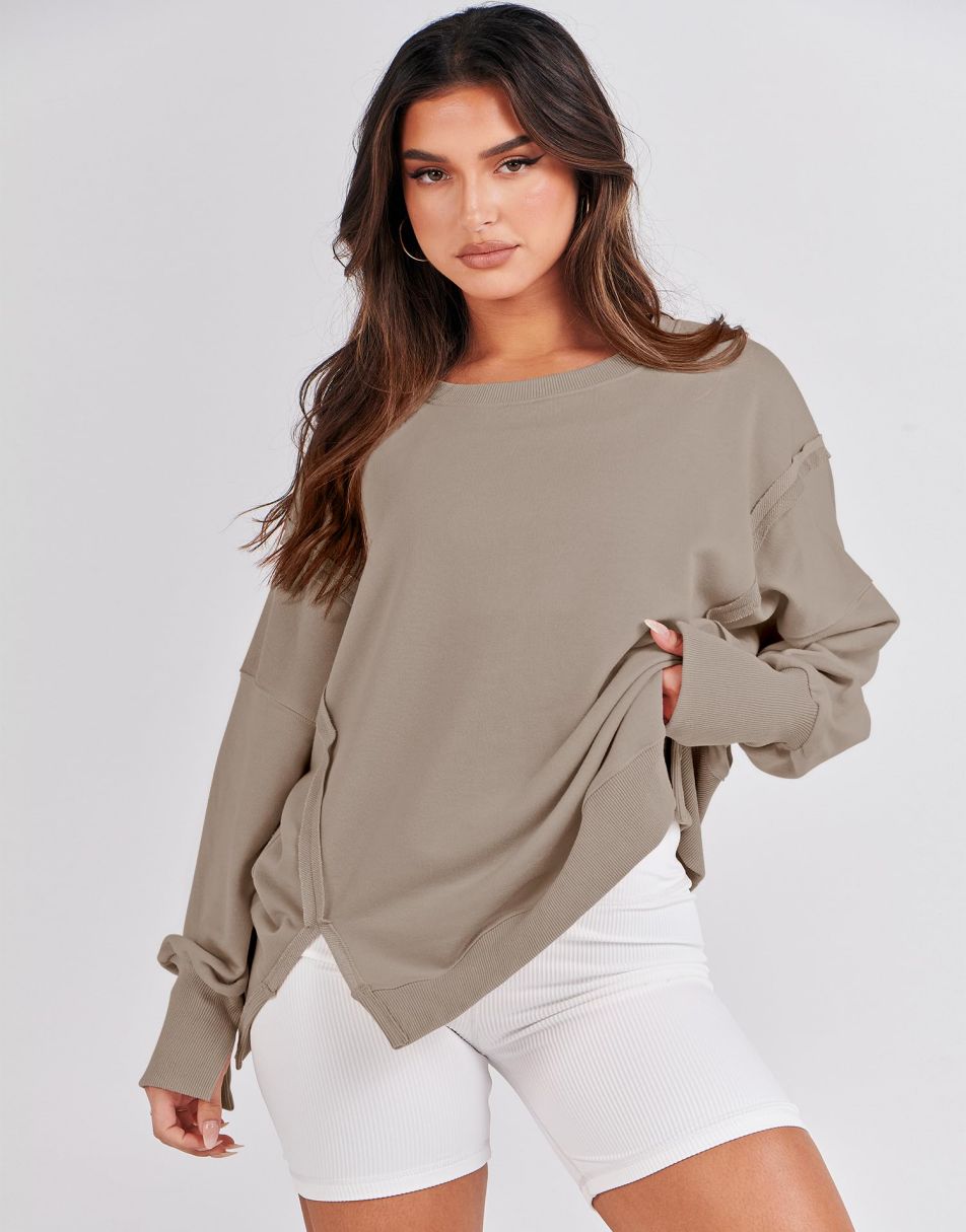 • ANRABESS Women's Oversized Sweatshirt Crew Neck Long Sleeve Casual Slit Sloucthy Pullover Top Fall Clothes
