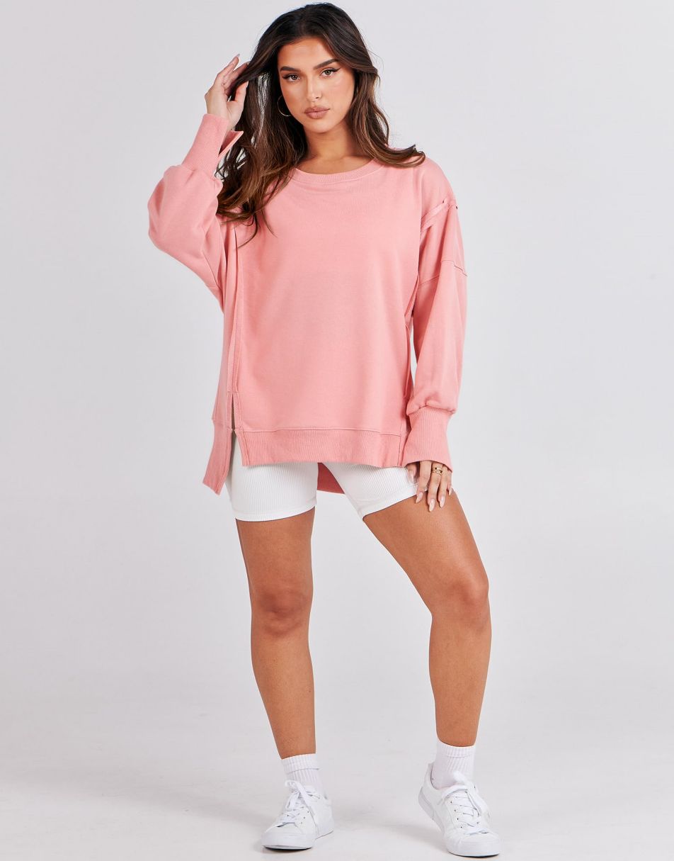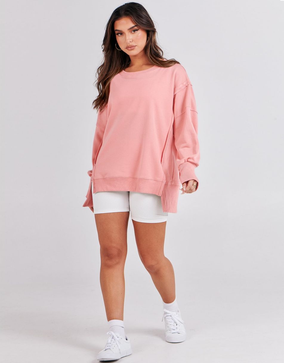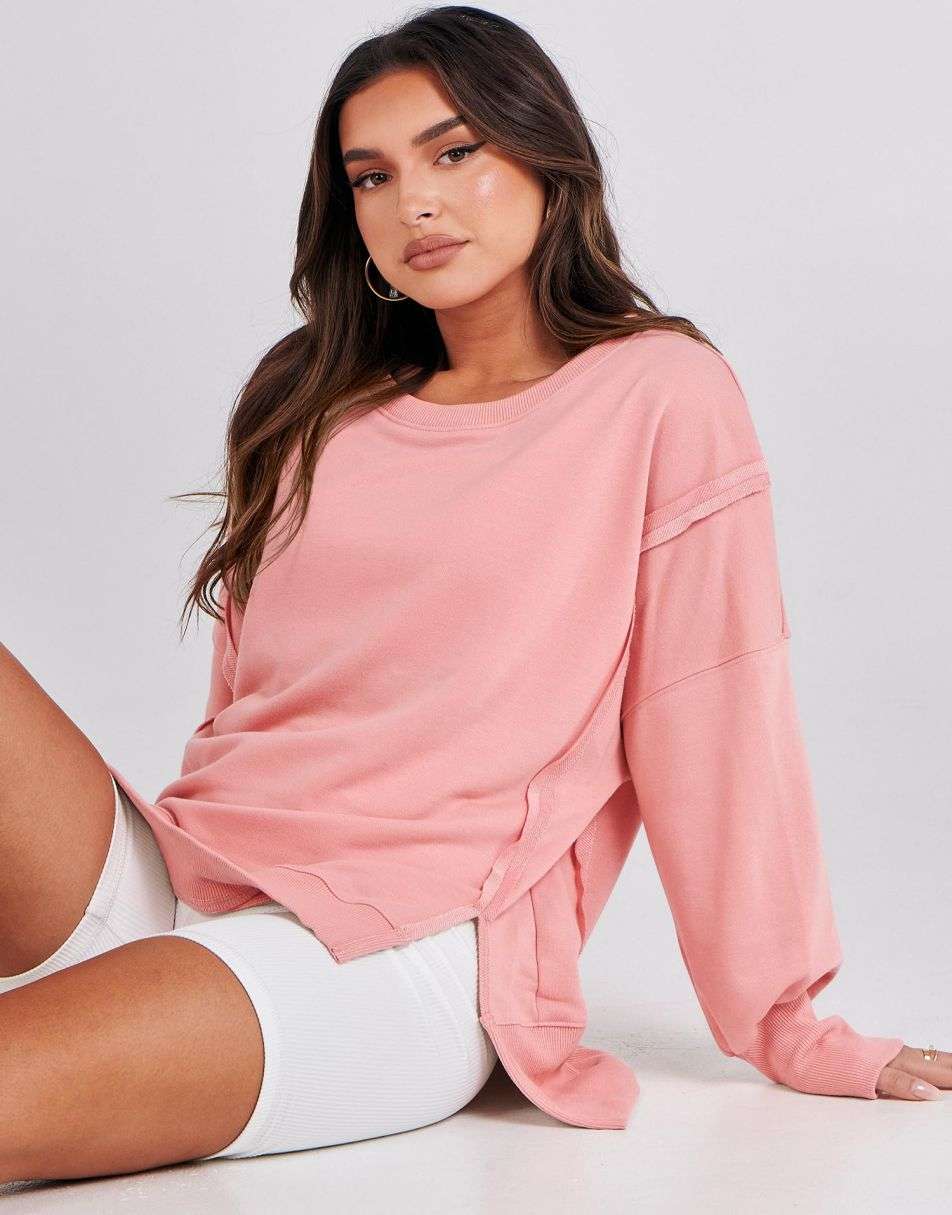 • Design - This pullover sweatshirt with a crew neckline and long sleeves, slightly lower back hemline and side slit detail, the relaxed fit comes together with drop shoulder long sleeves, a ribbed cuff and hemline, a cozy look that��s ready for cool fall vibes!