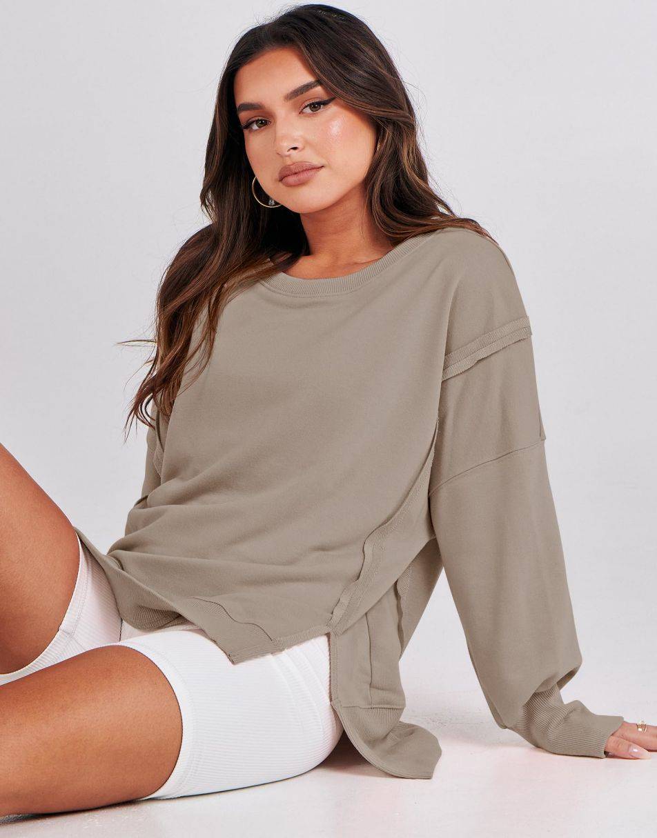 • Style - Simple but versatile solid color long sleeve shirts with raw exposed seaming throughout design, the perfect combination of classic and fashion, the special design pullover top definitely make you pop out, the basic solid color matches everything and never goes out of style