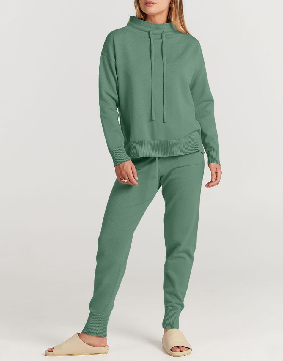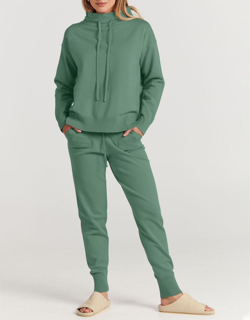 • ANRABESS Women's Two Piece Outfits Long Sleeve Turtleneck Pullover Top & Drawstring Pants Sweatsuit Lounge Set