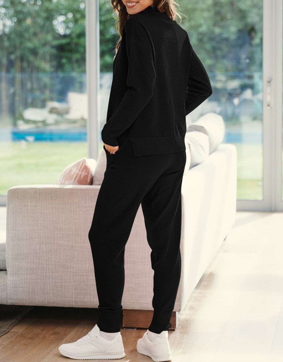 • Features - Such a cute basic 2 piece outfit锛�Features turtle drawstring neckline锛�long sleeve pullover top锛�jogger pants锛�pockets锛�ribbed hem锛�knit fabrication.