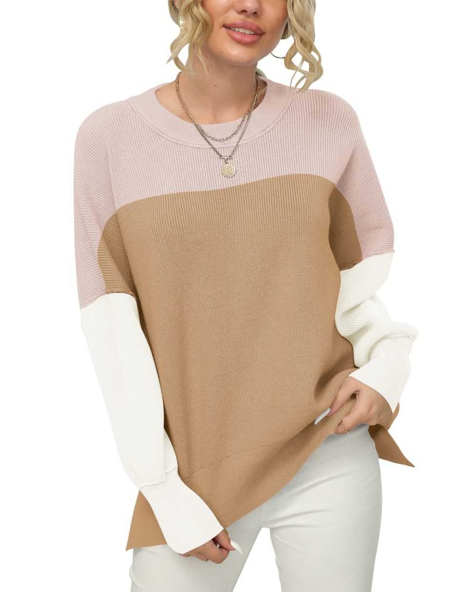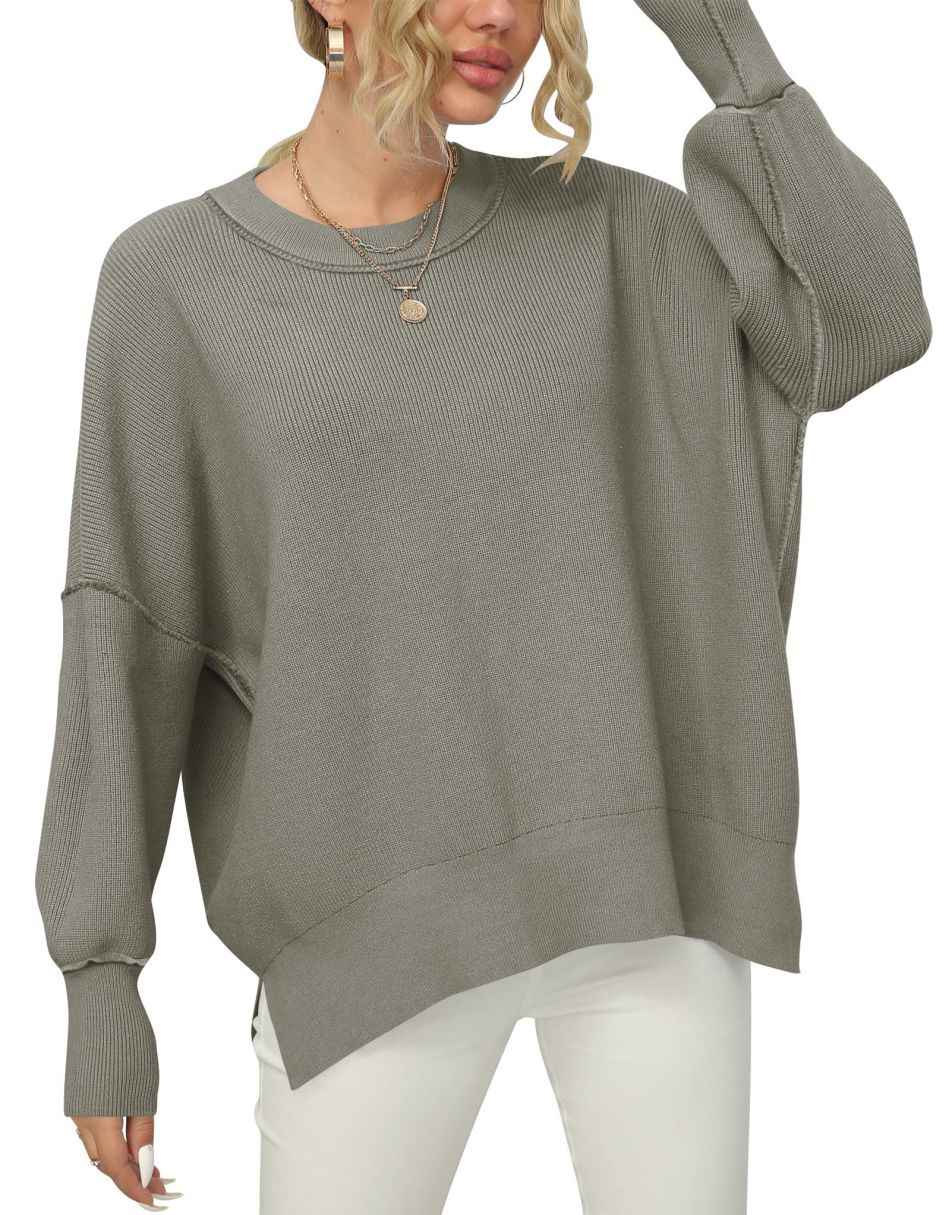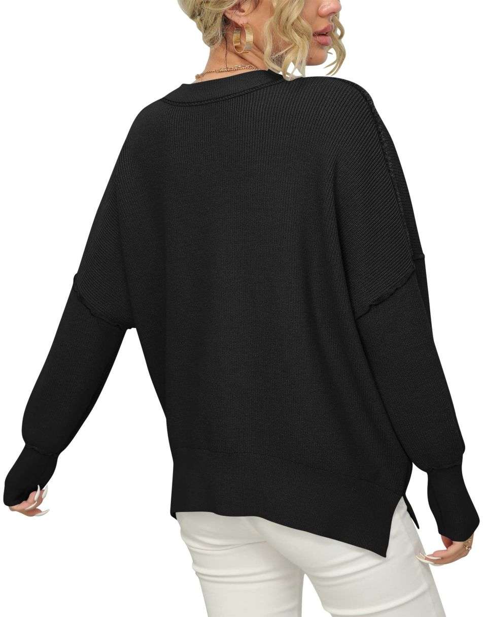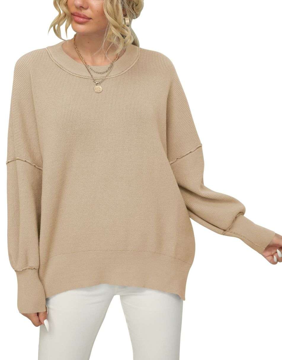 • ANRABESS Women Crewneck Batwing Sleeve 2023 Fall Oversized Side Slit Ribbed Knit Pullover Sweater Top