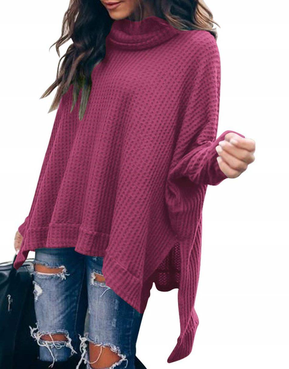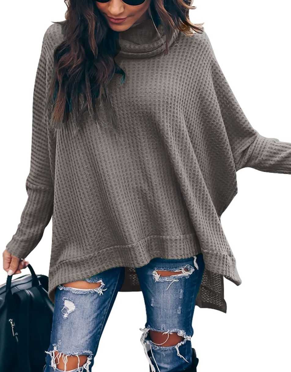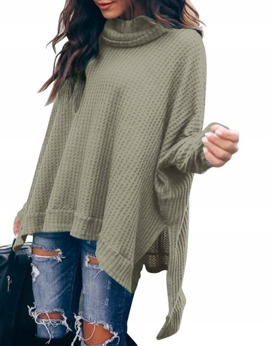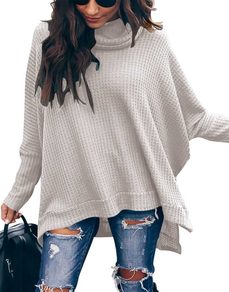 • Features - This casual oversized pullover sweaters designed turtle cowl neck,waffle knit fabri,batwing sleeve,high low hem,side slit,flattering tunic tops.