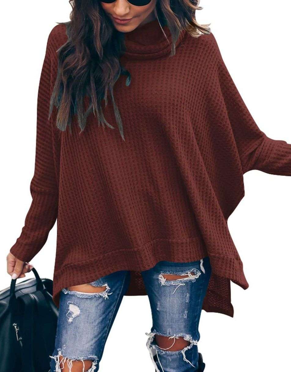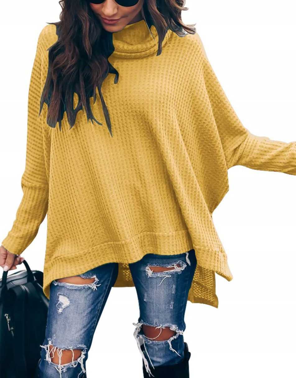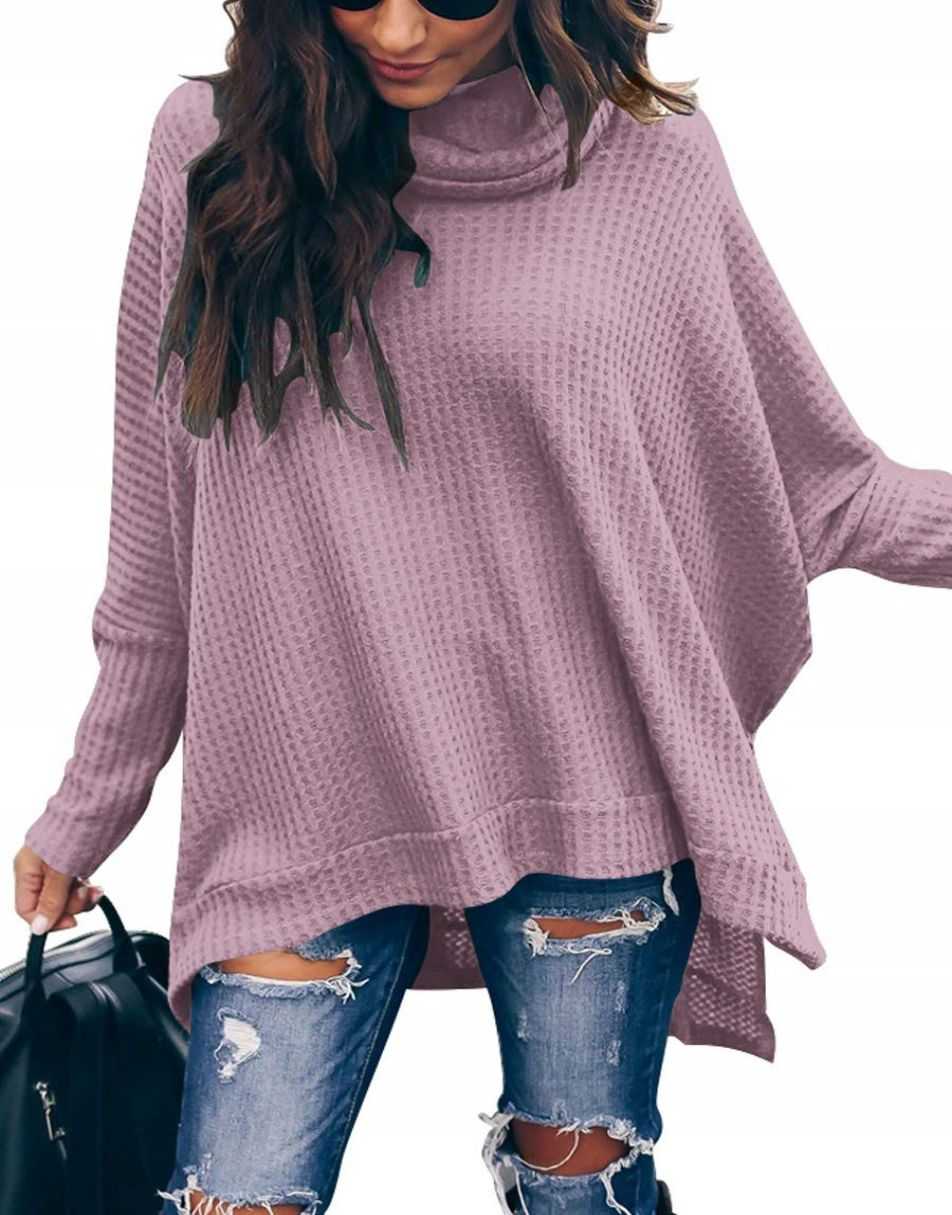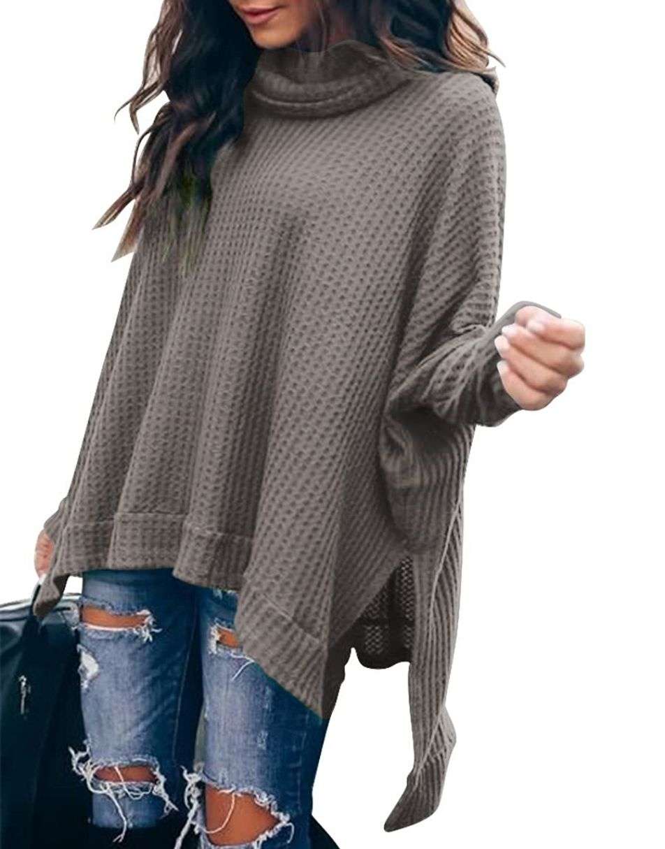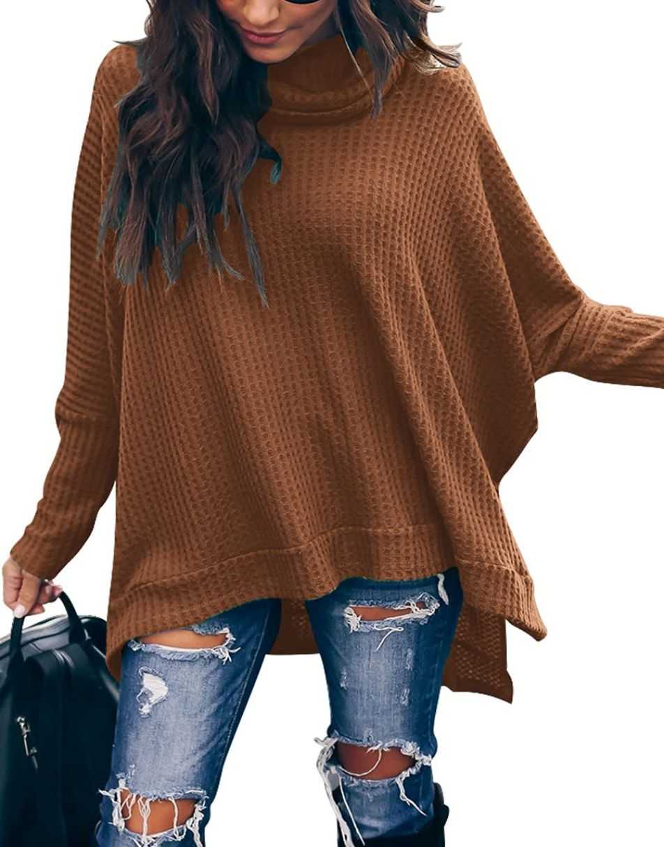• Features - This casual oversized pullover sweaters designed turtle cowl neck,waffle knit fabri,batwing sleeve,high low hem,side slit,flattering tunic tops.