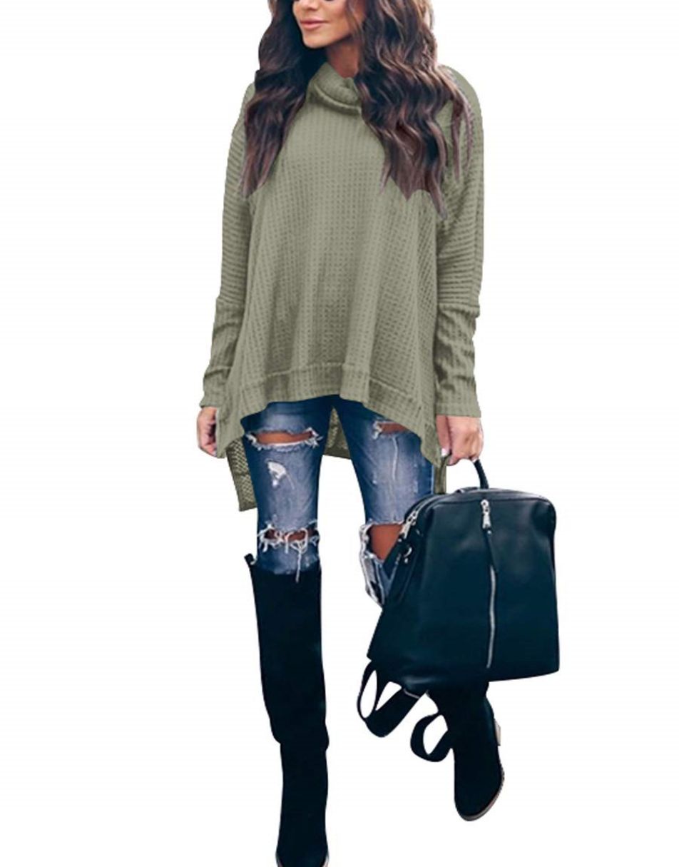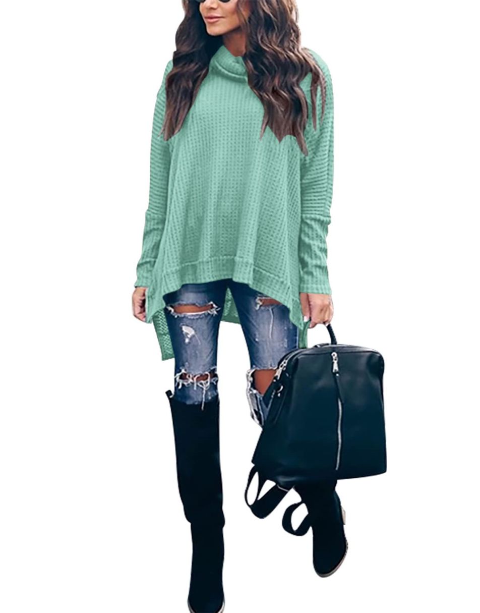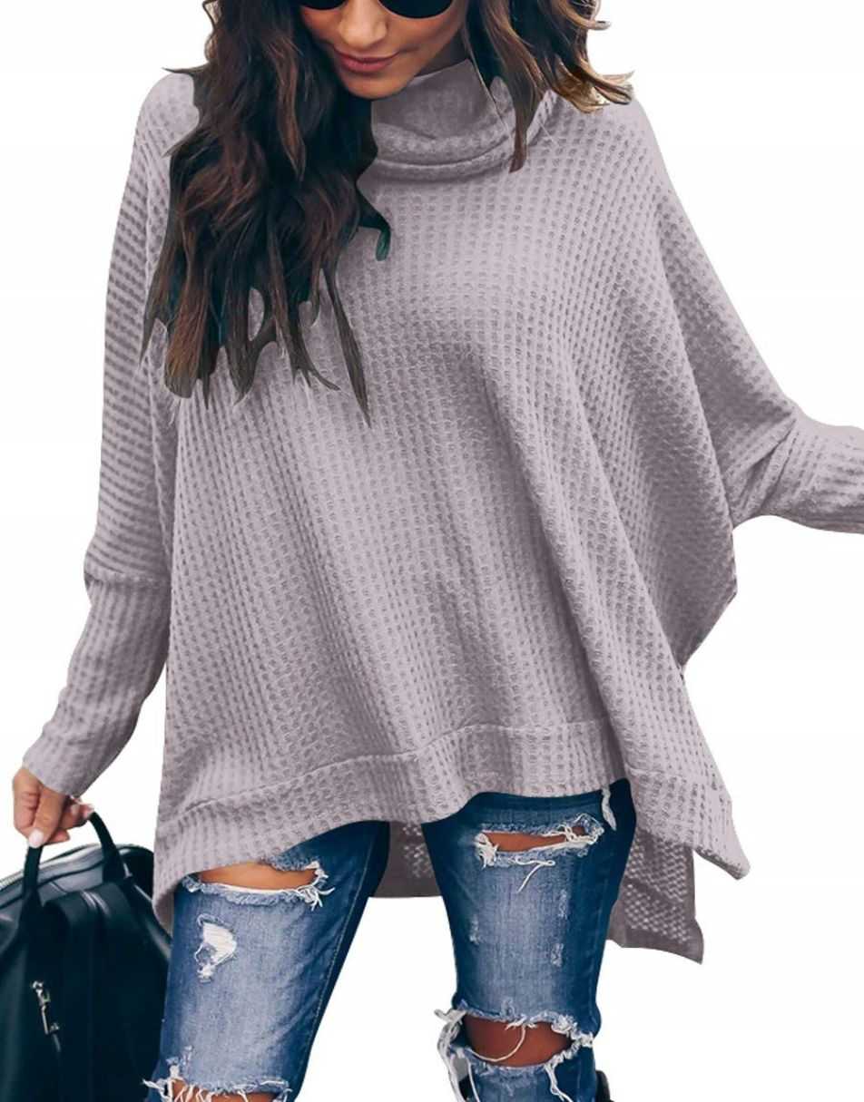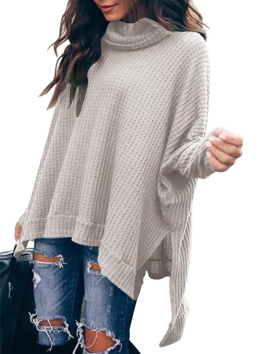 • Features - This casual oversized pullover sweaters designed turtle cowl neck,waffle knit fabri,batwing sleeve,high low hem,side slit,flattering tunic tops.