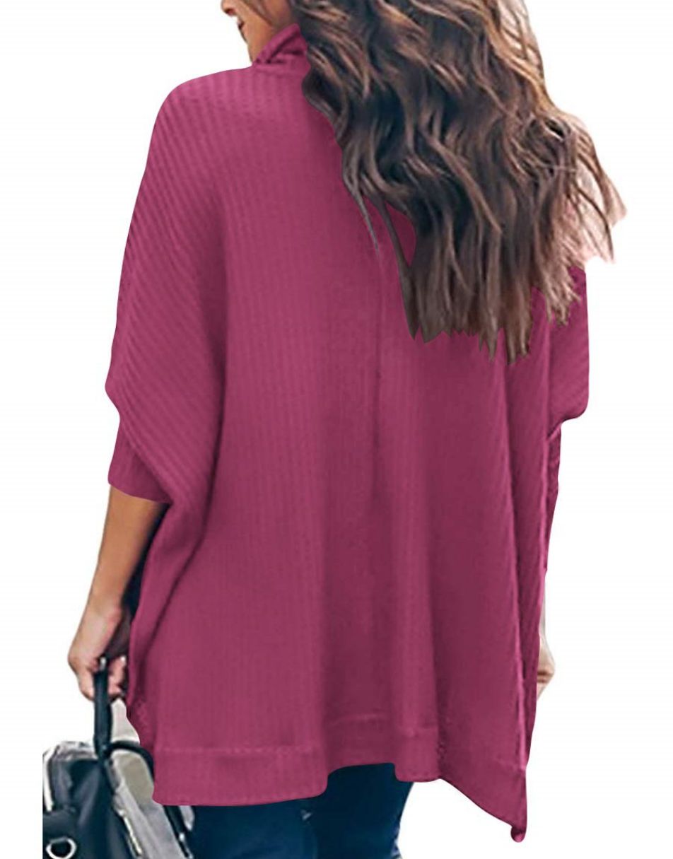 • Anrabess Turtleneck Hem Side Slit Waffle Knit Oversized Sweater
