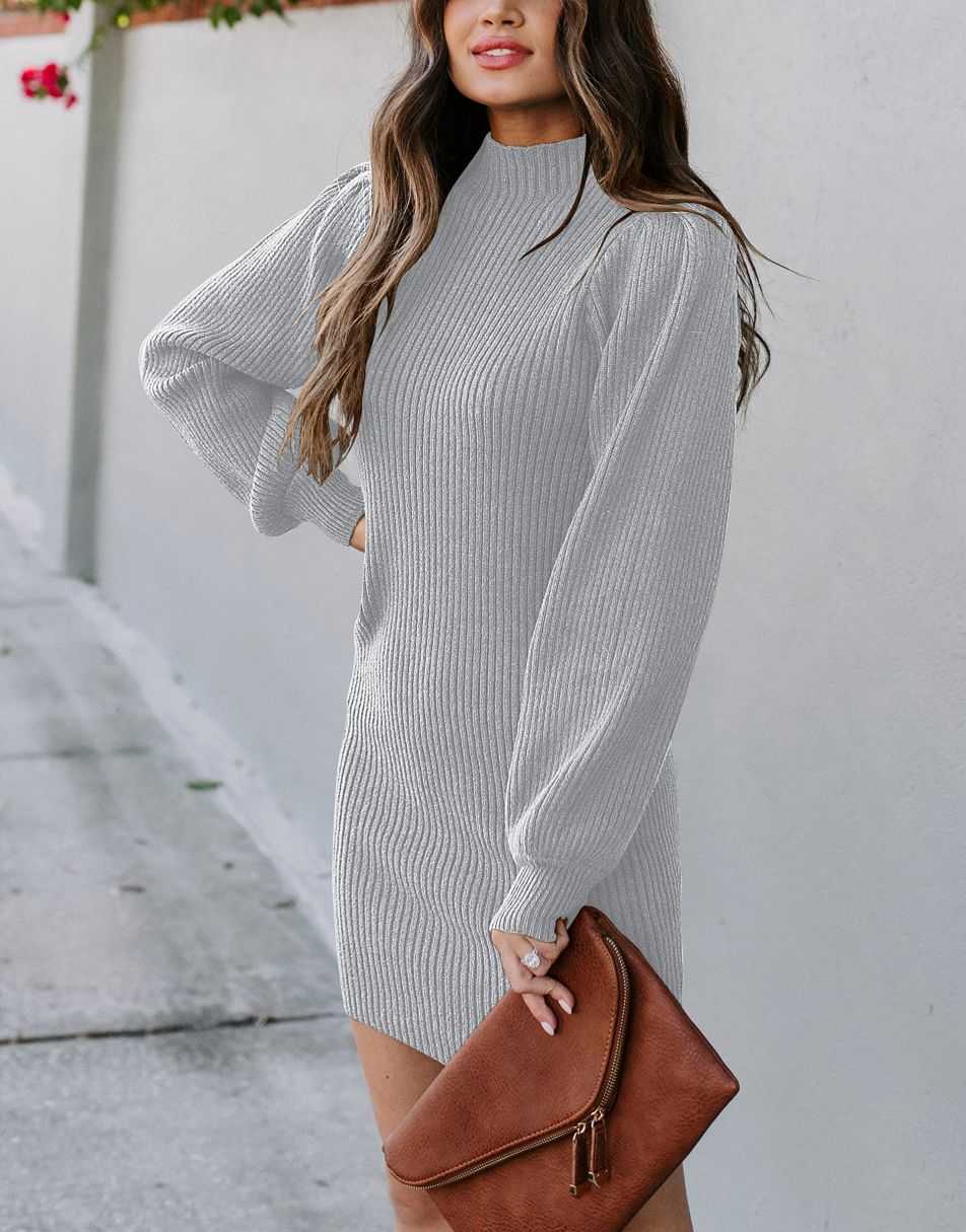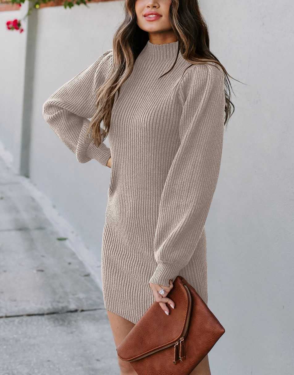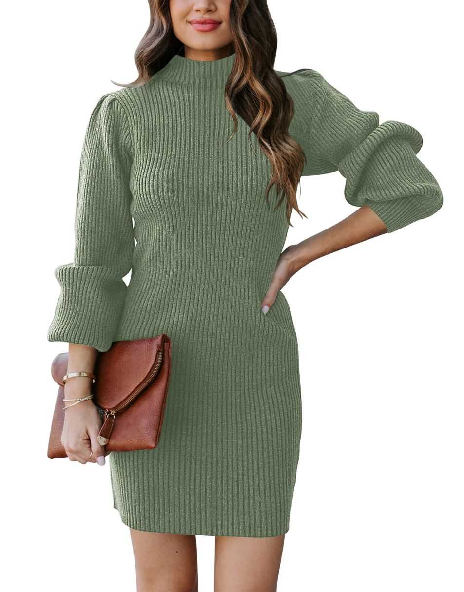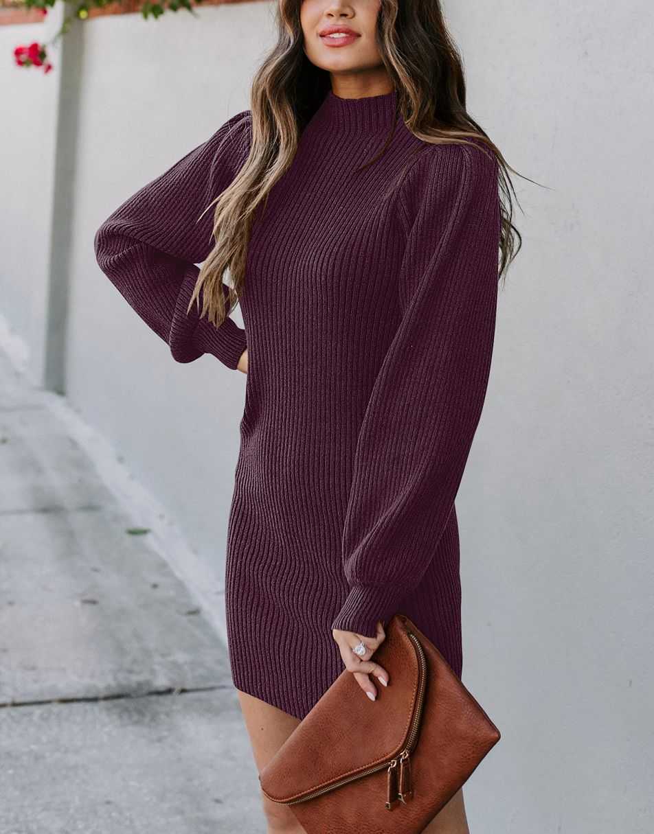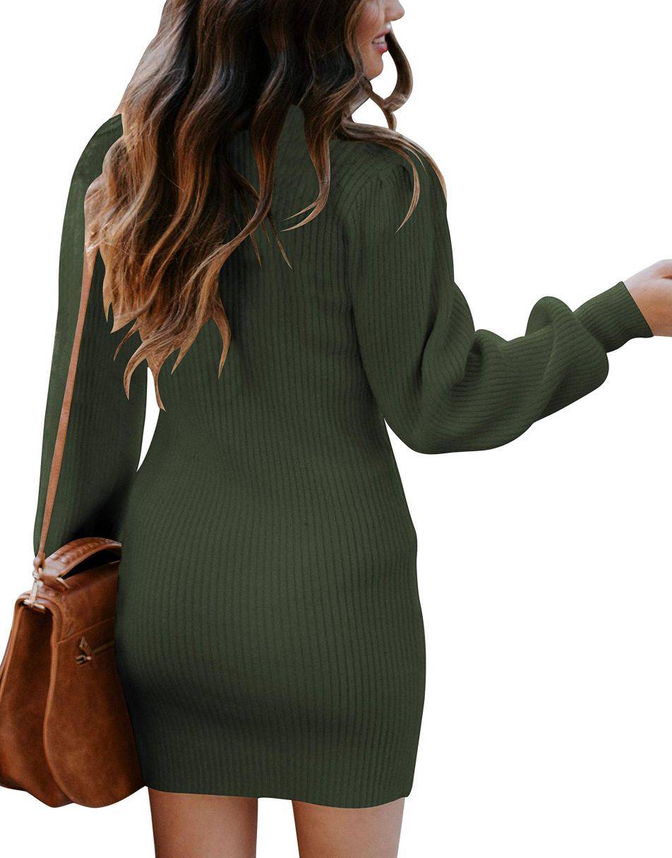 - Design - Women bodycon sweater dress,long sleeve,turtleneck sweaeter,stretchy sweater,slim fit sweater dress,mini dress,solid basic sweater dress.