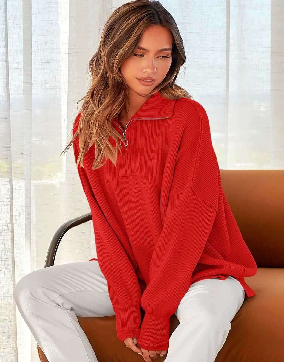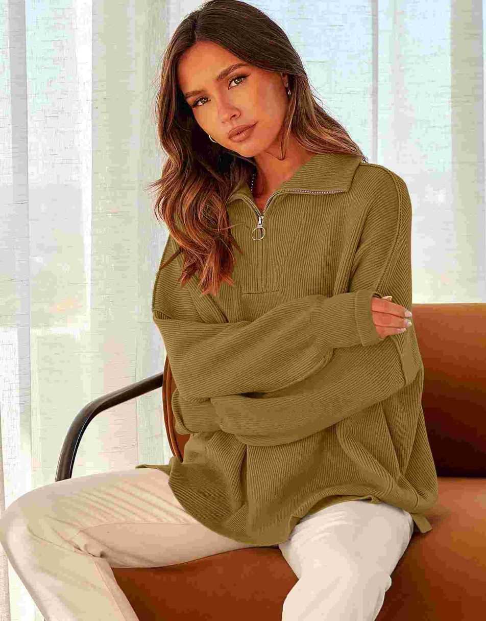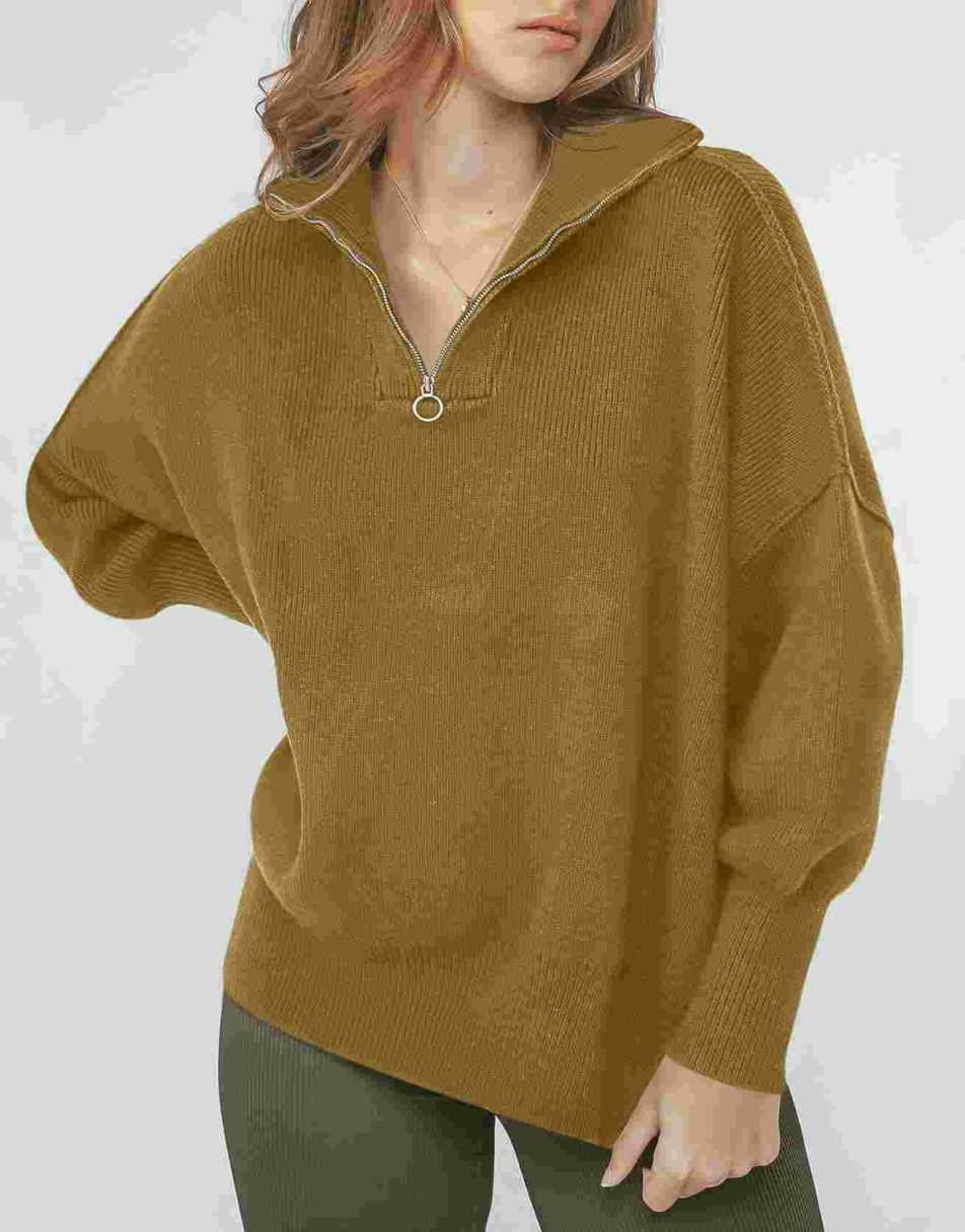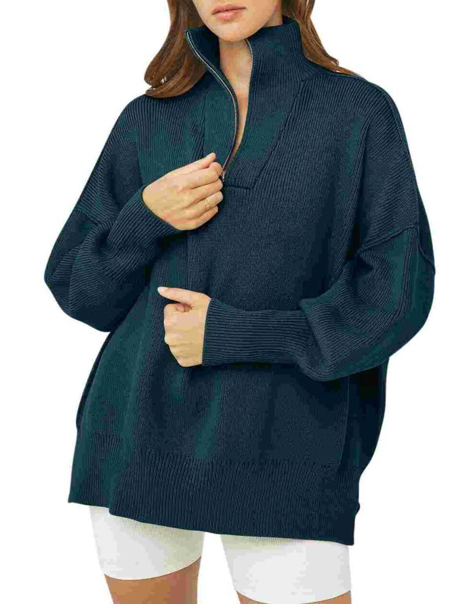 • ANRABESS Women's Oversized Sweater 2023 Fall Long Sleeve Quarter Zipper Collar Drop Shoulder Slouchy Pullover Tops