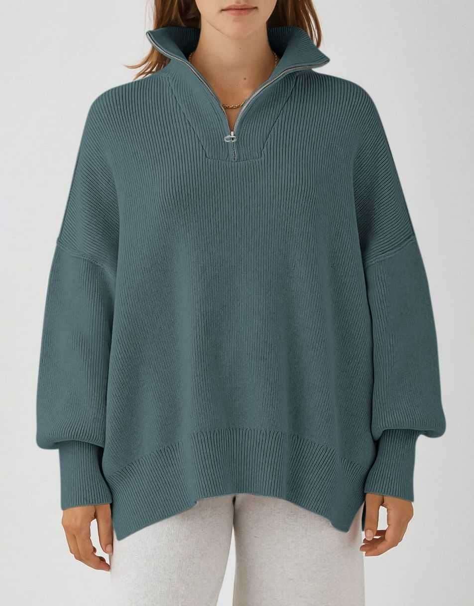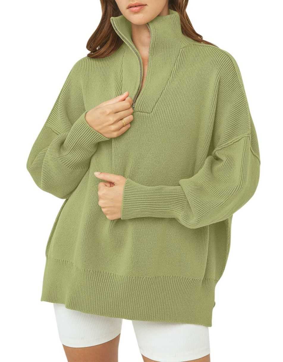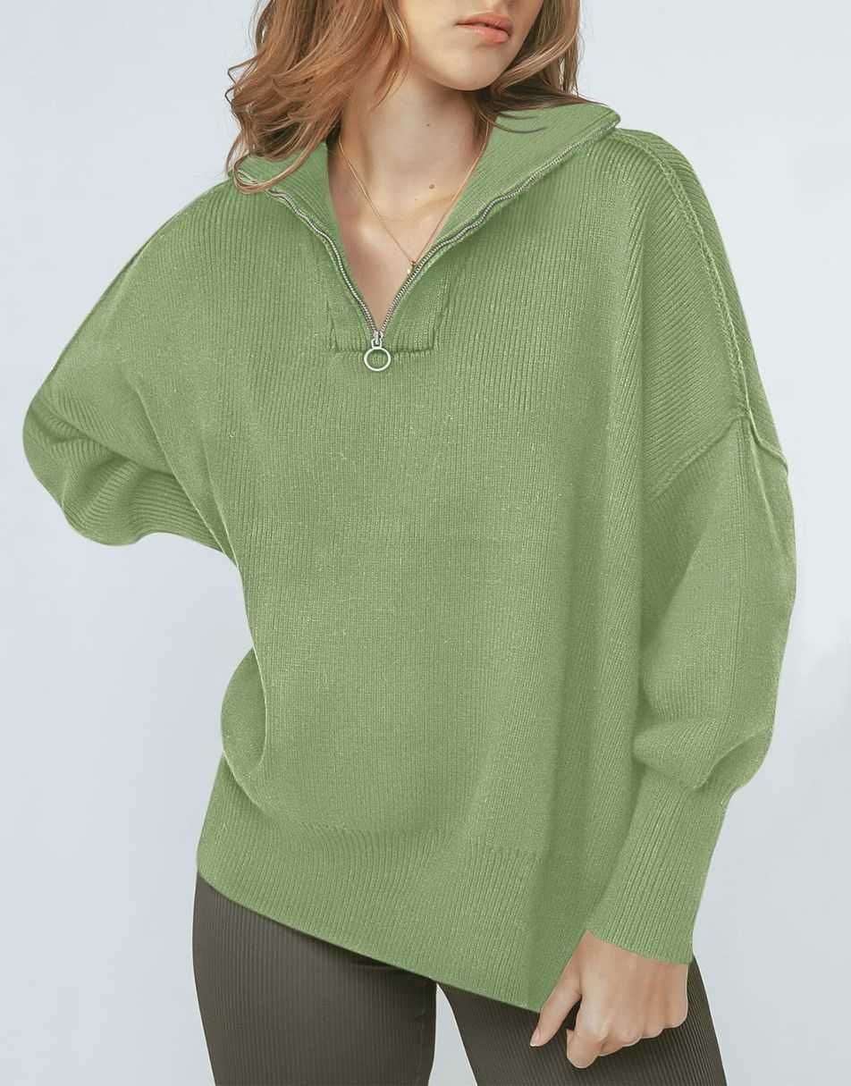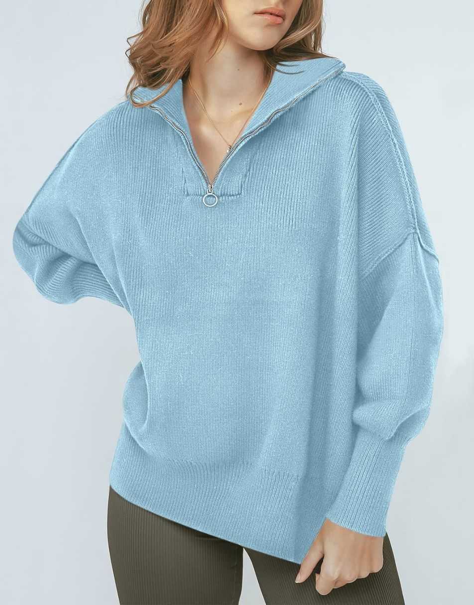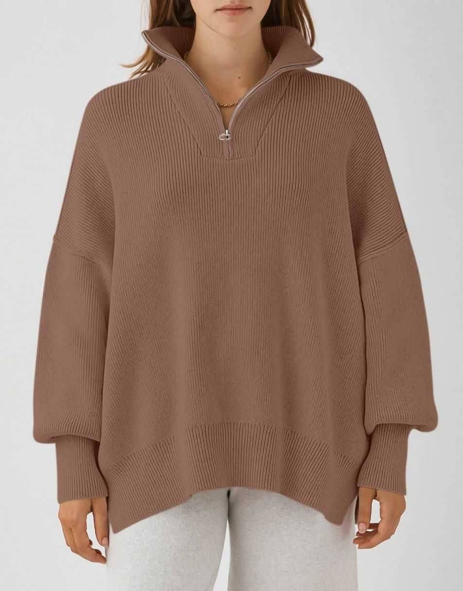 • ANRABESS Women's Oversized Sweater 2023 Fall Long Sleeve Quarter Zipper Collar Drop Shoulder Slouchy Pullover Tops