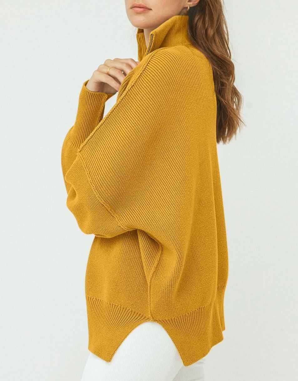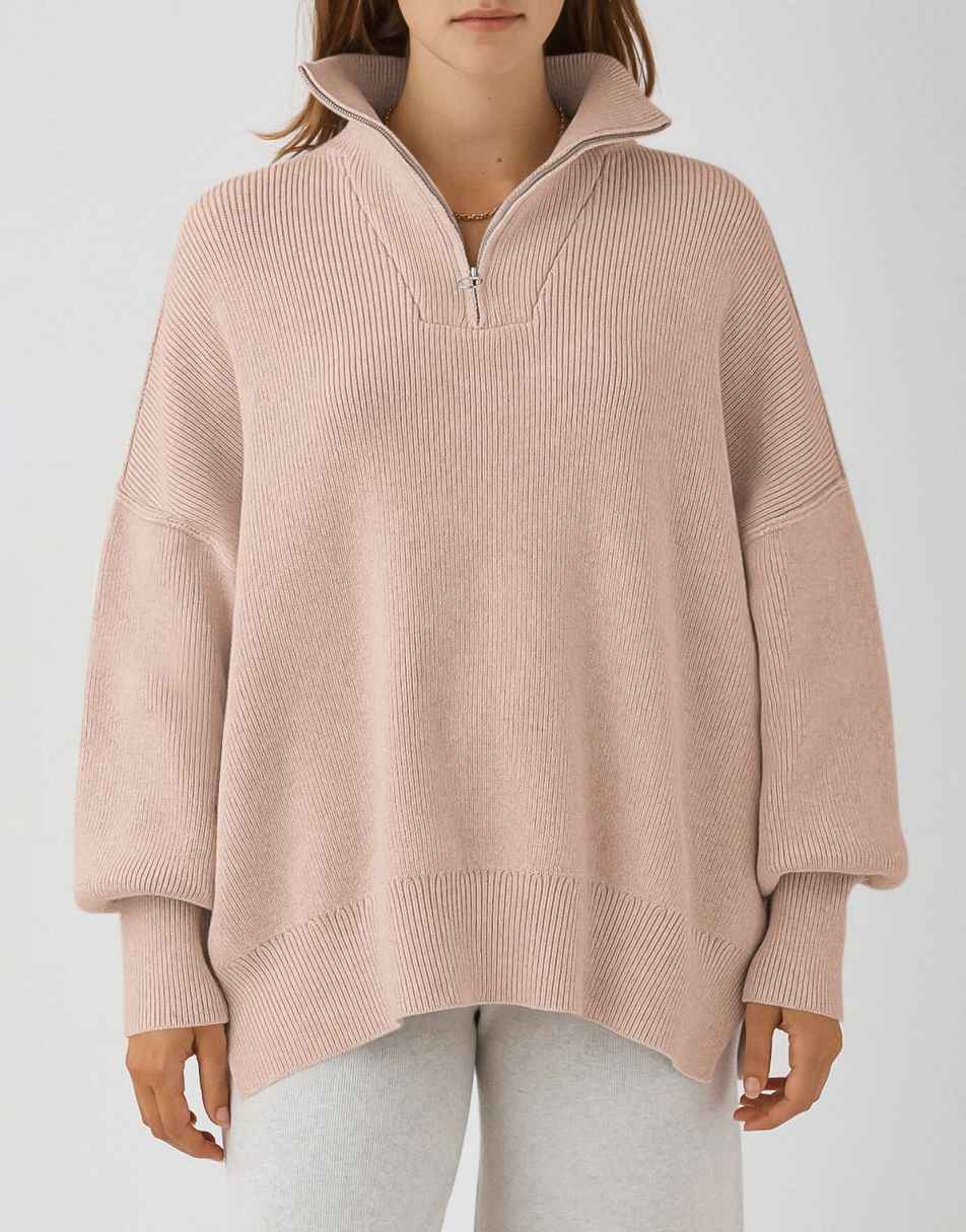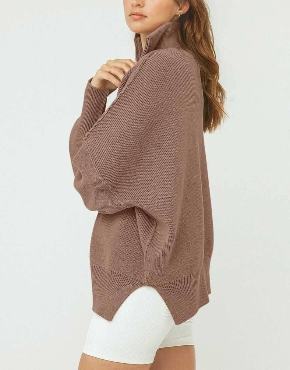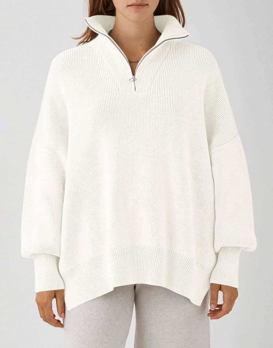 • ANRABESS Women's Oversized Sweater 2023 Fall Long Sleeve Quarter Zipper Collar Drop Shoulder Slouchy Pullover Tops