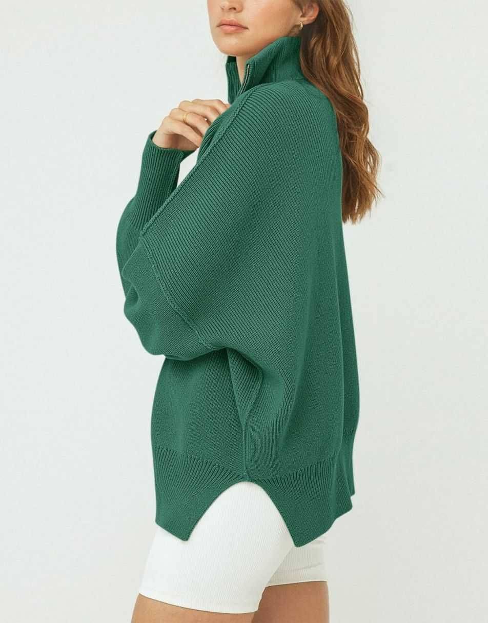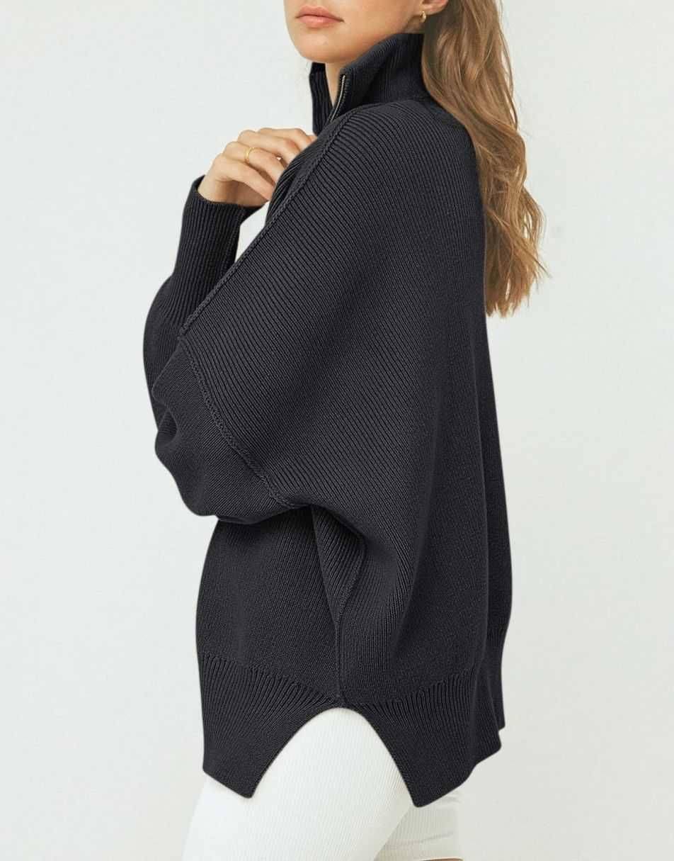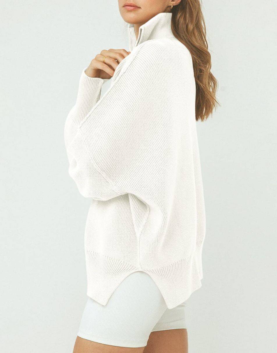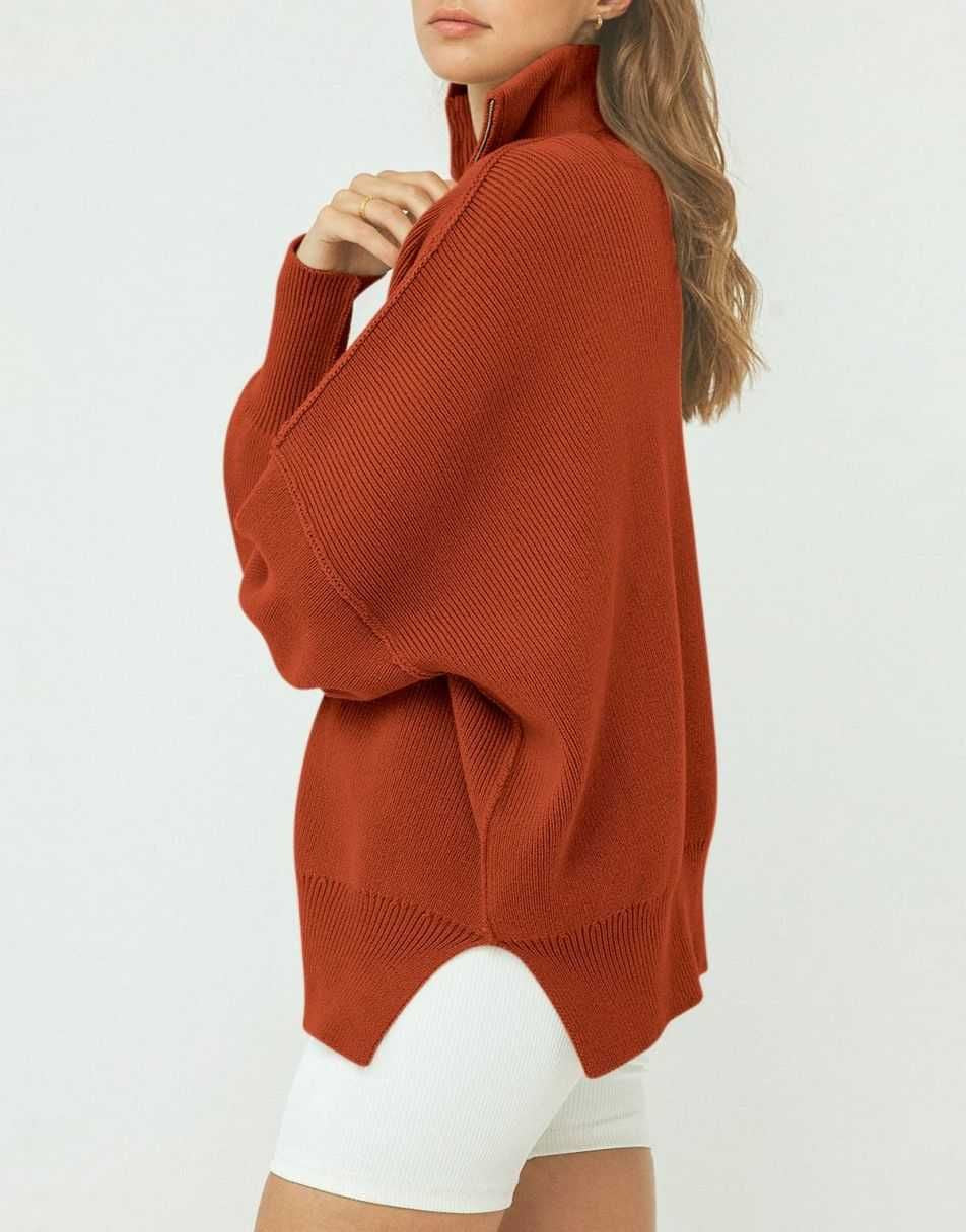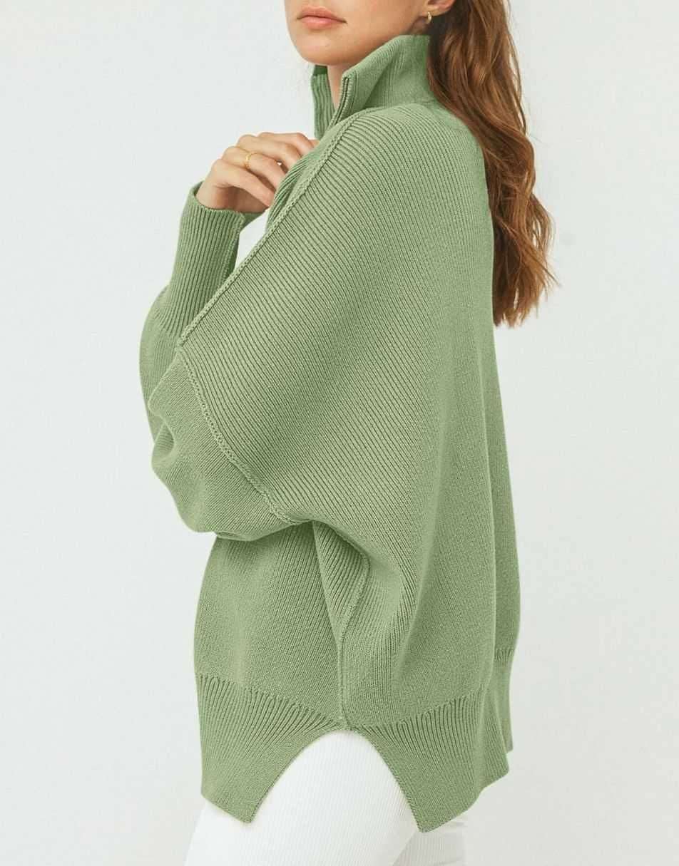 • ANRABESS Women's Oversized Sweater 2023 Fall Long Sleeve Quarter Zipper Collar Drop Shoulder Slouchy Pullover Tops