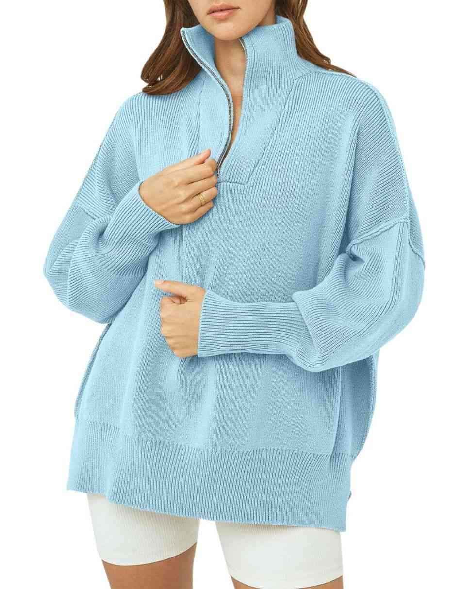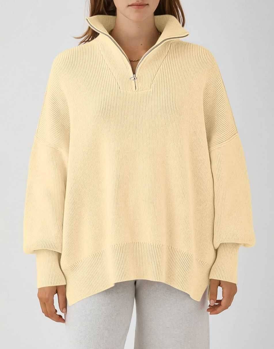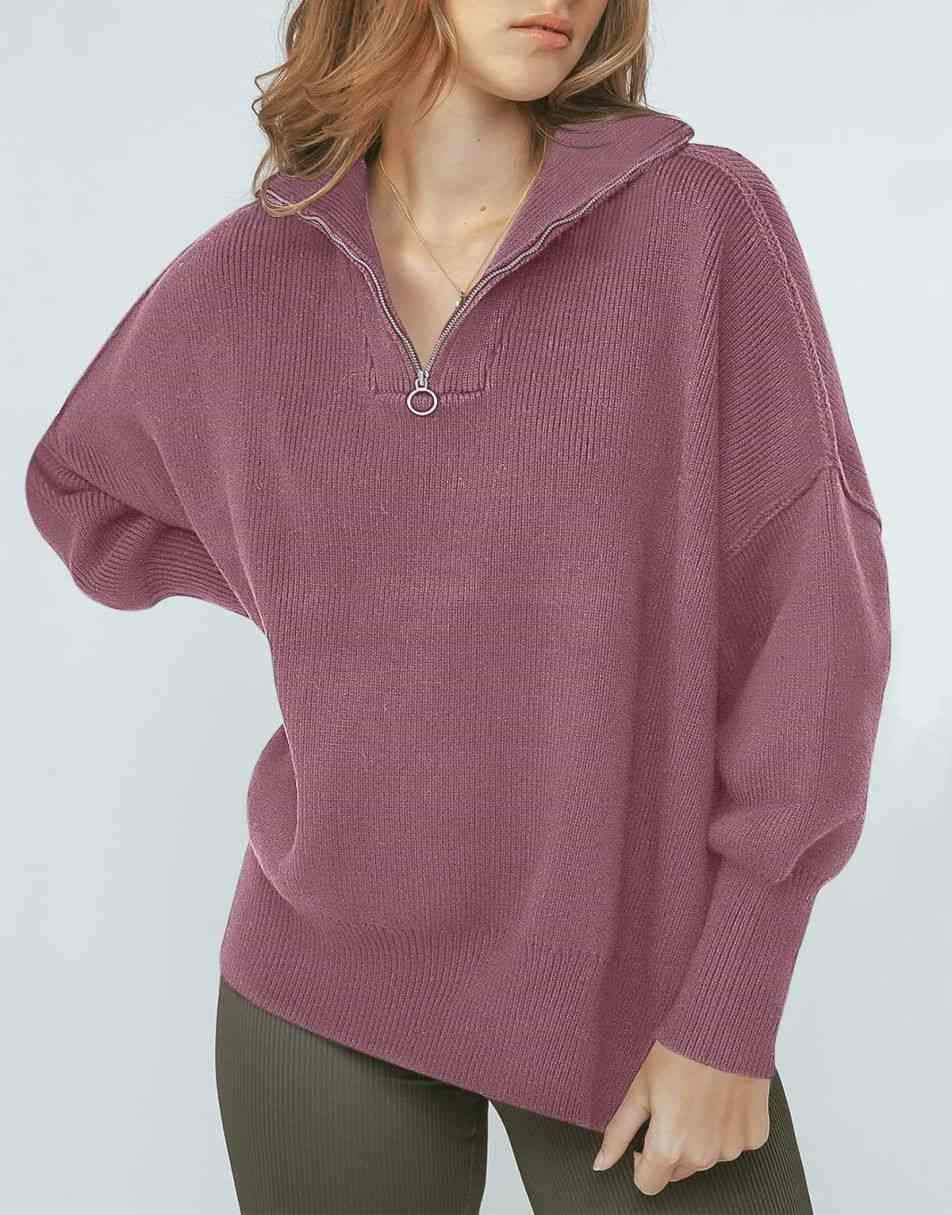 • Design - 1/4 zipper,collar,high neck,long sleeve,drop shoulder,ribbed knit cuff,oversized fit,sweatshirt sweater