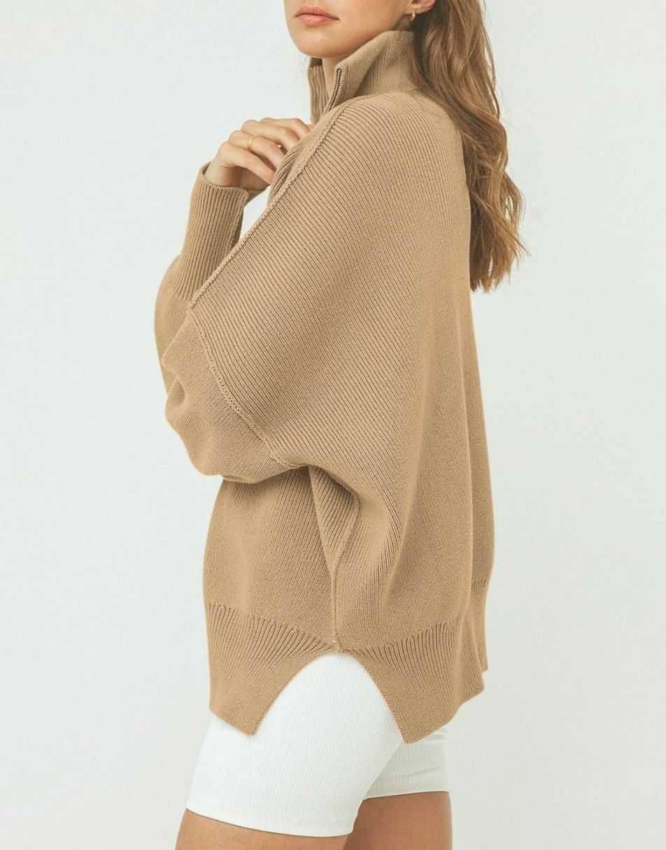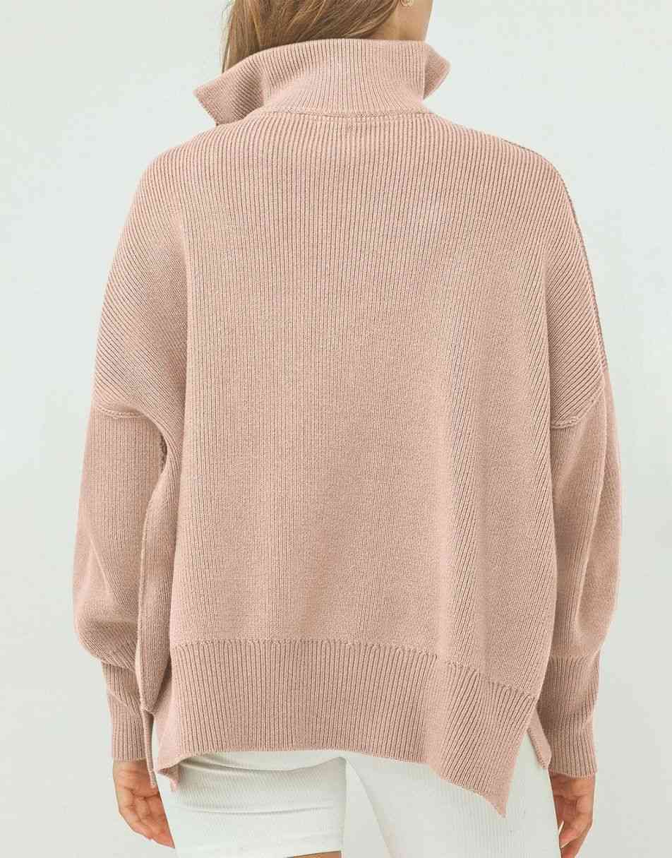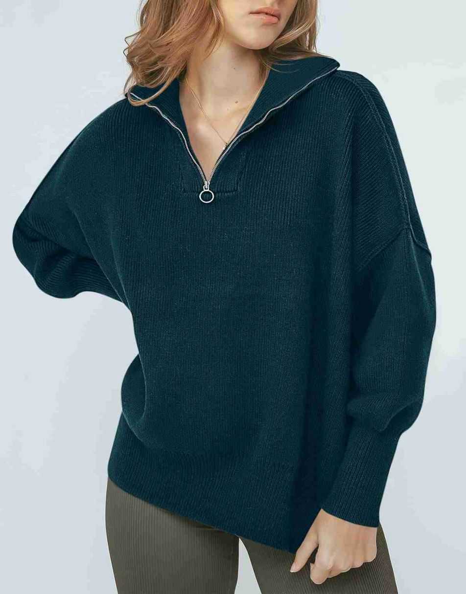 • Design - 1/4 zipper,collar,high neck,long sleeve,drop shoulder,ribbed knit cuff,oversized fit,sweatshirt sweater