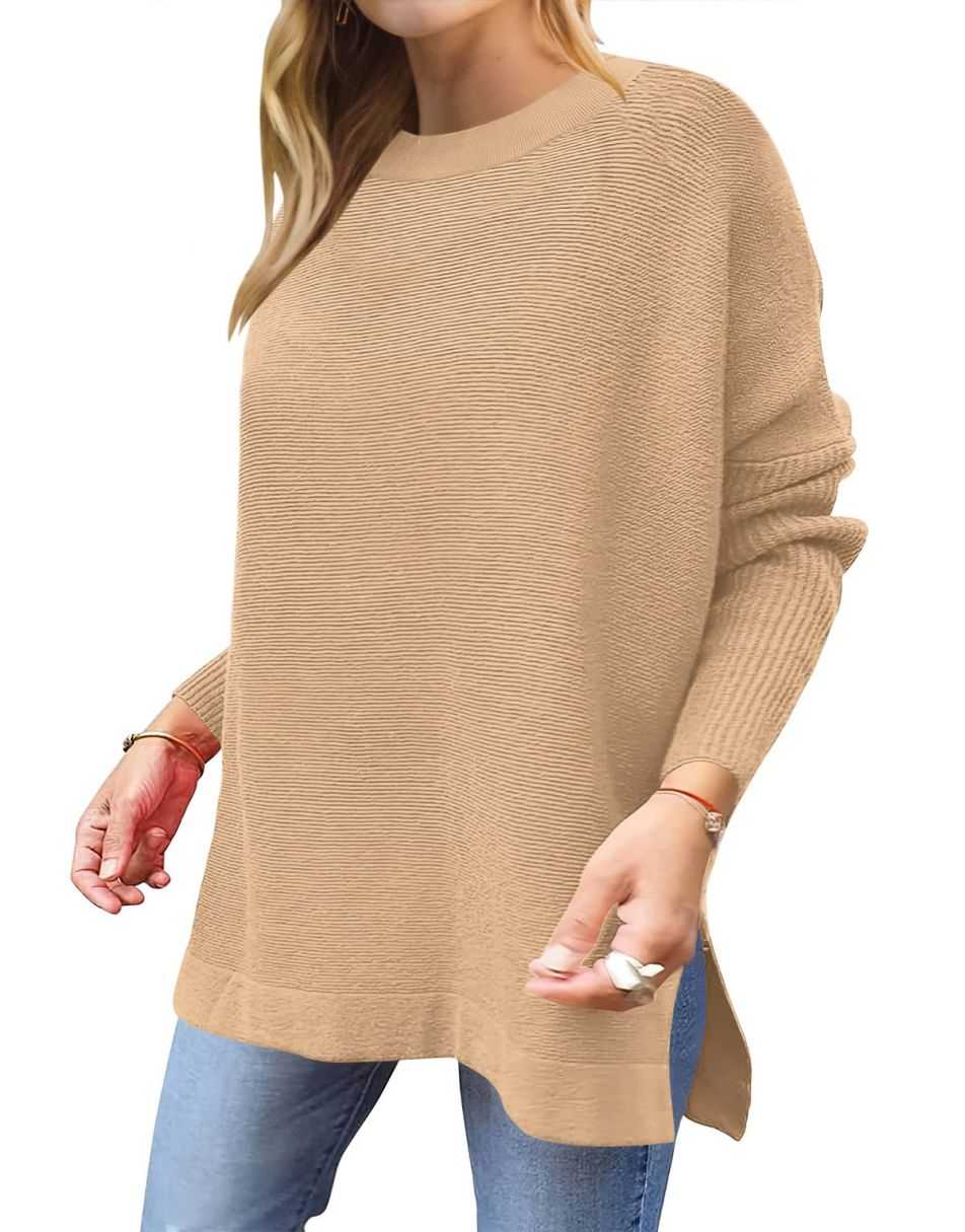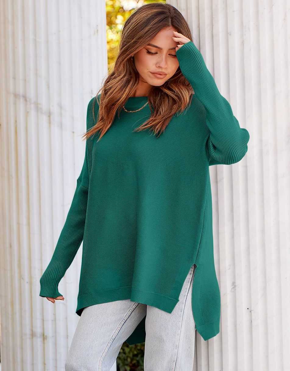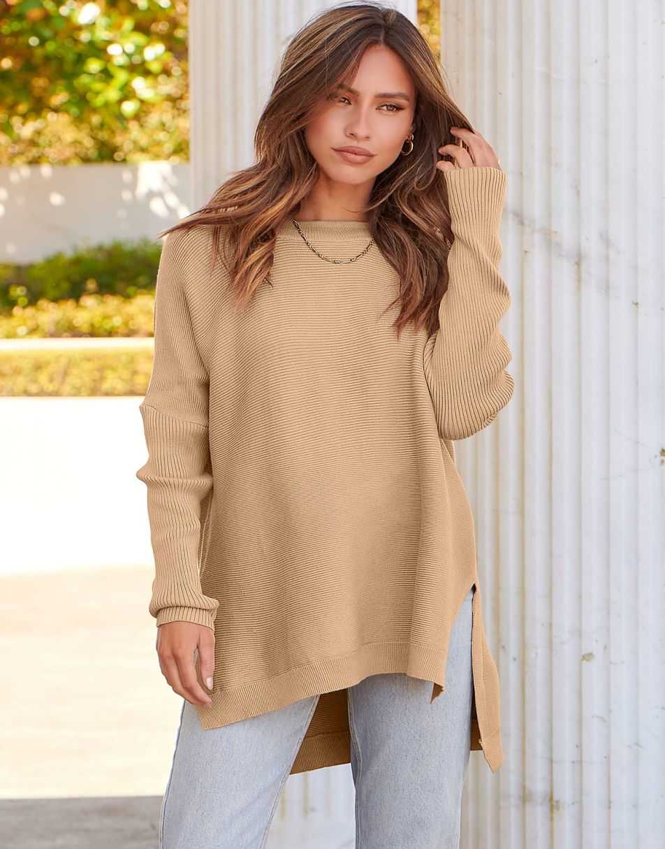 Material:The slit hem sweater made of 50% viscose 30% nylon and 20% PBT,soft comfy chunky sweater.