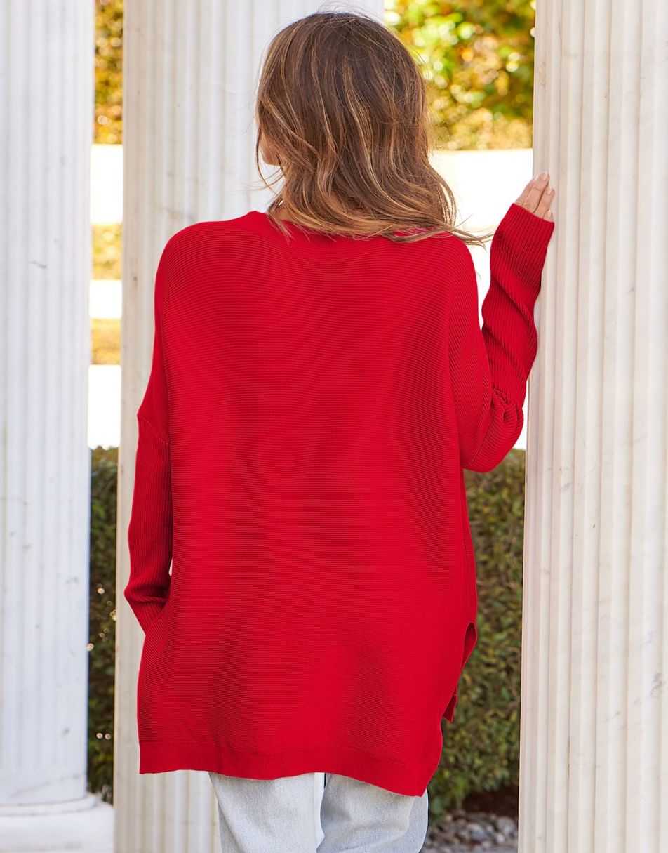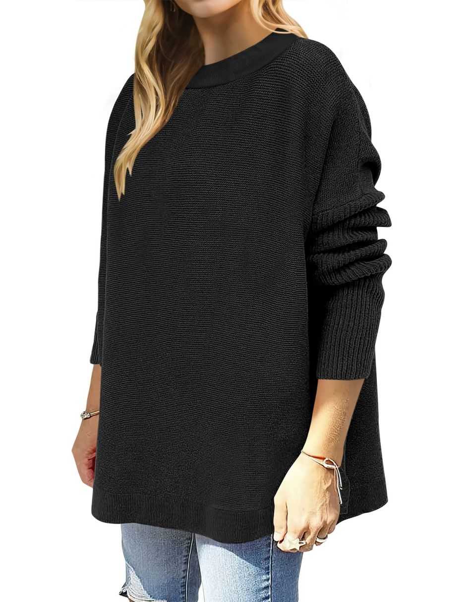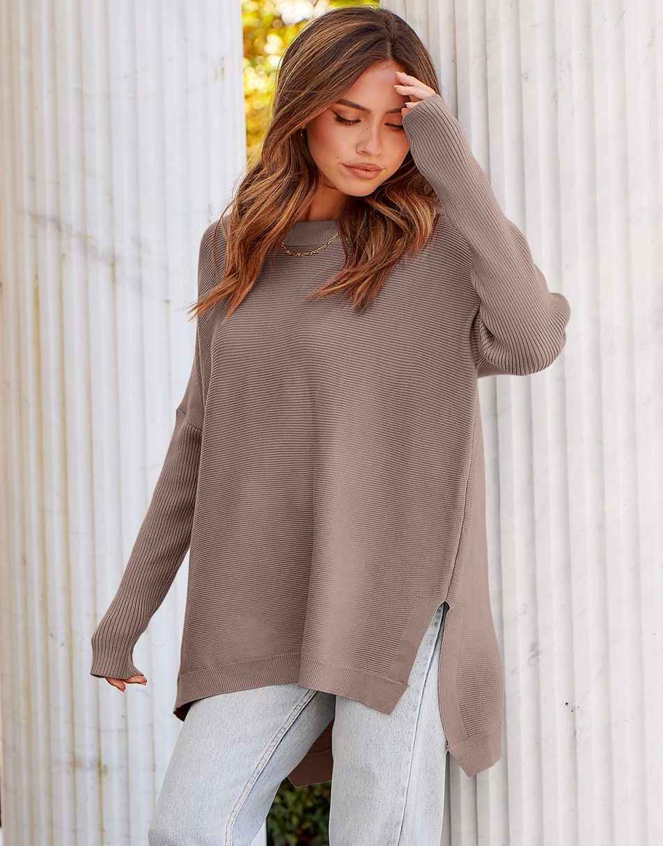 Material:The slit hem sweater made of 50% viscose 30% nylon and 20% PBT,soft comfy chunky sweater.