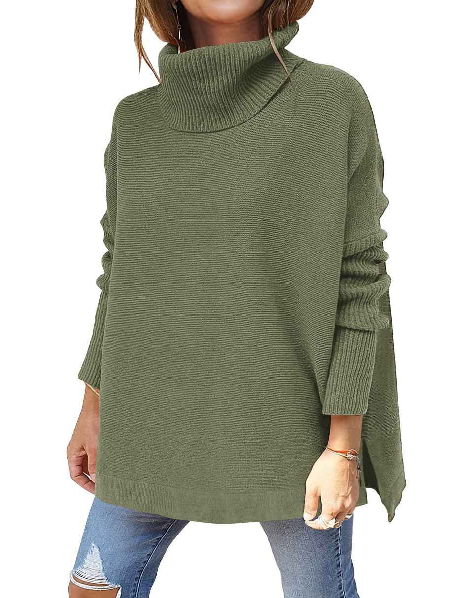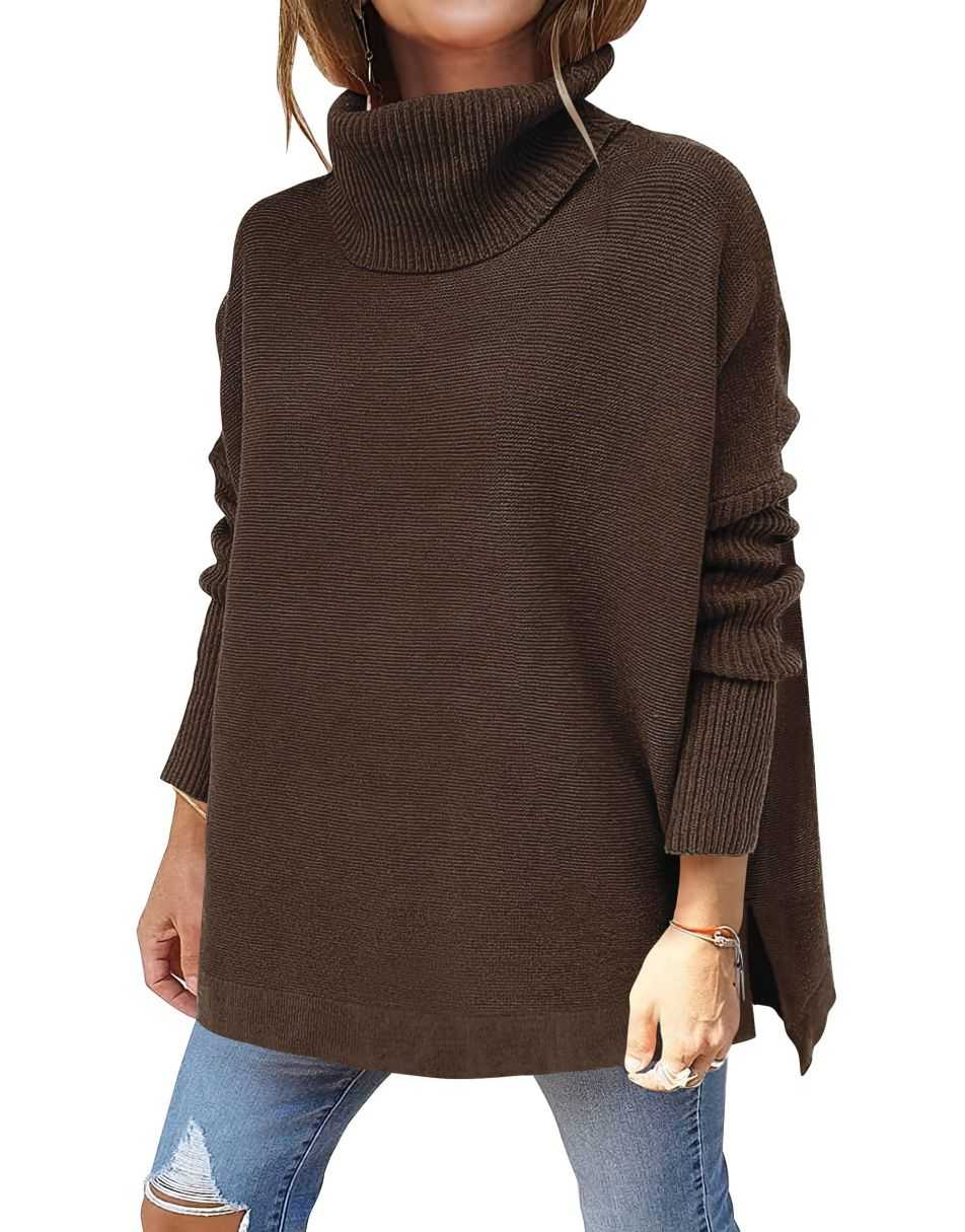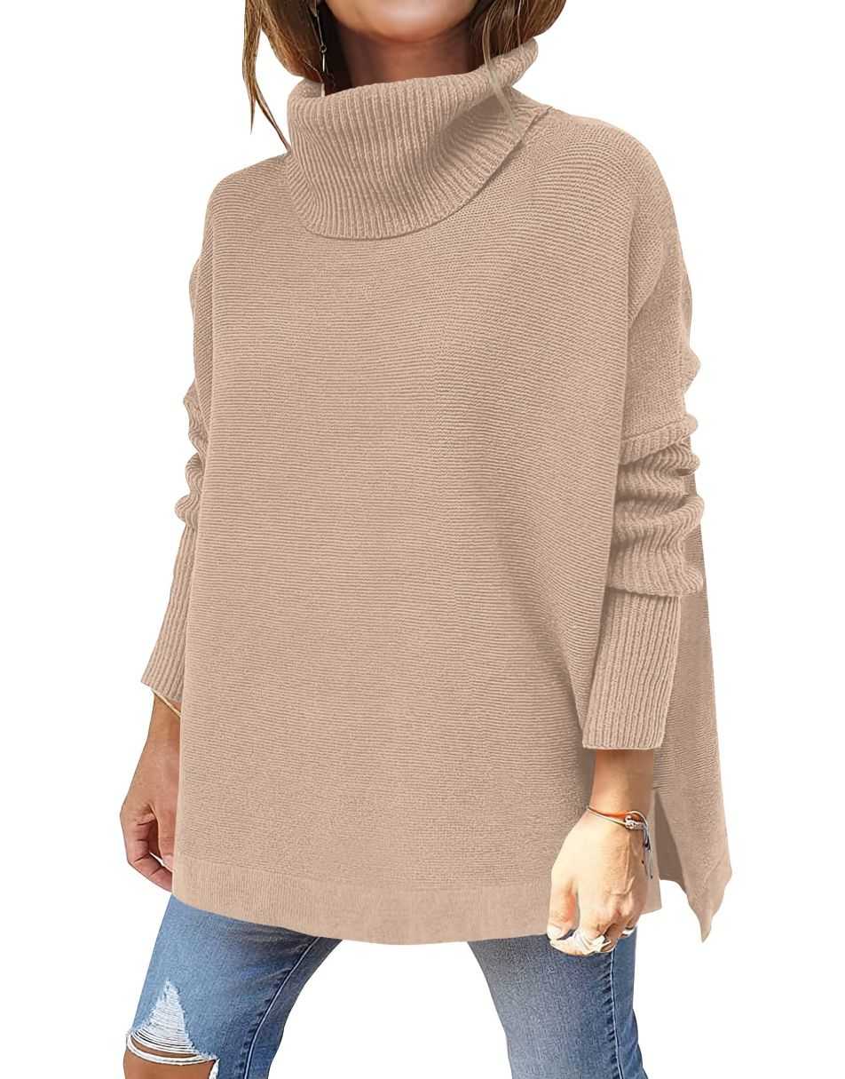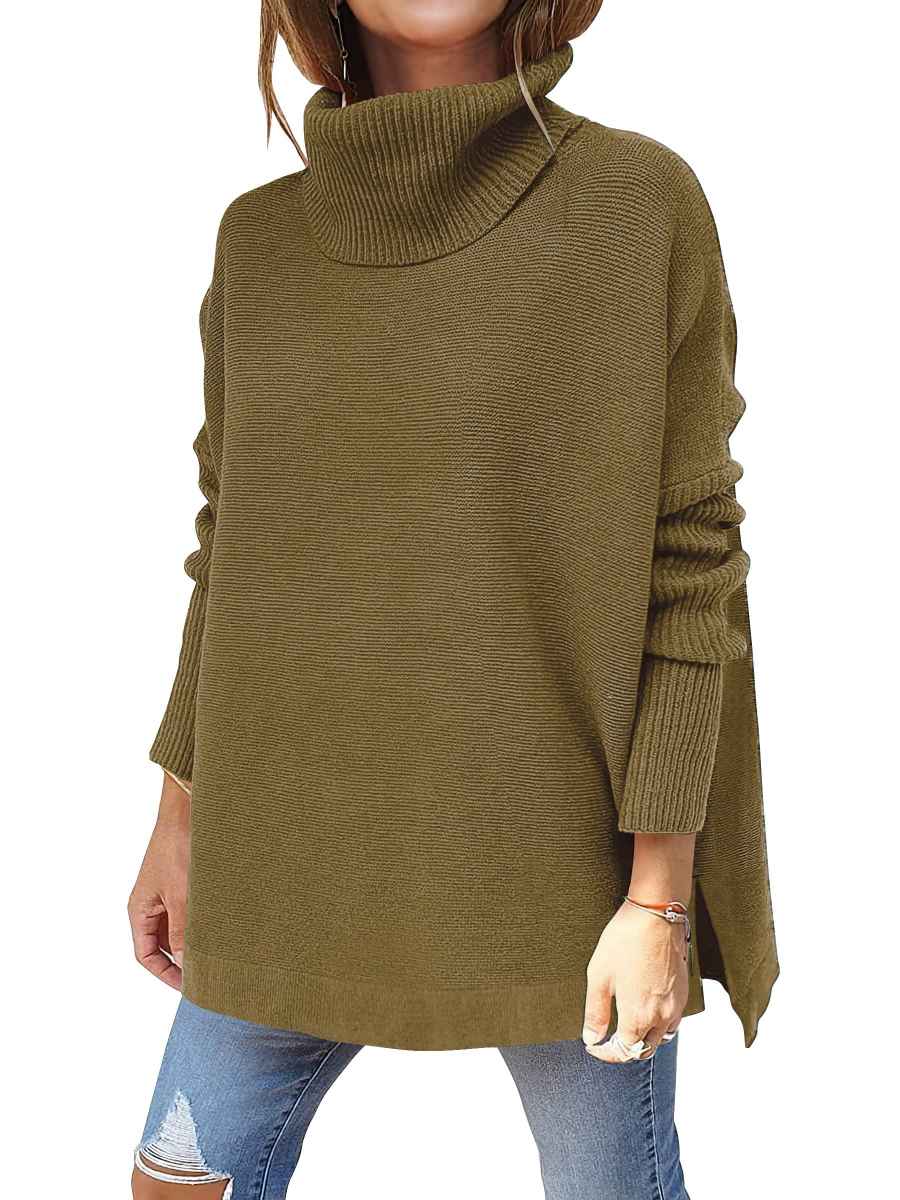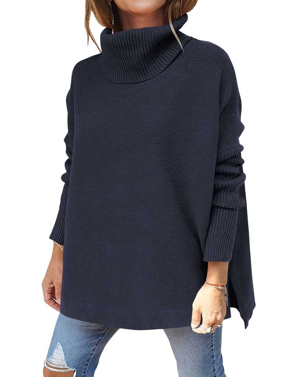 • ANRABESS Women's Turtleneck Oversized 2023 Long Batwing Sleeve Spilt Hem Knit Tunic Pullover Sweater Tops