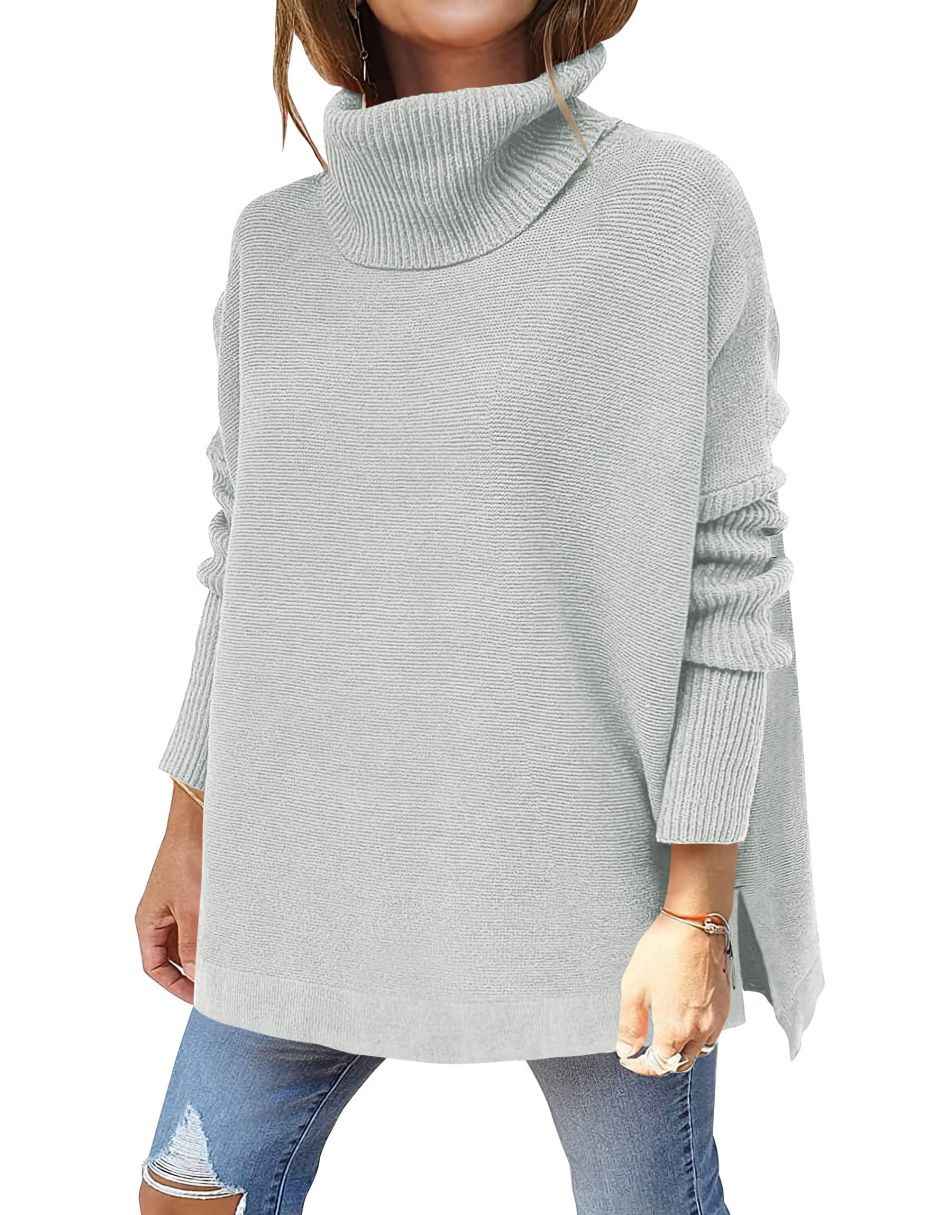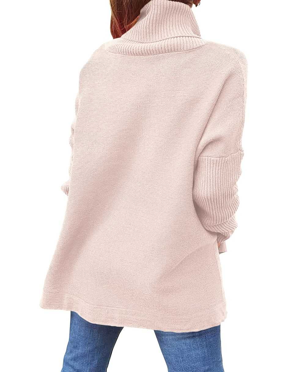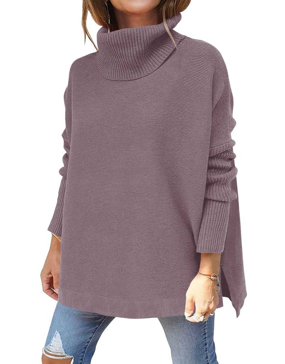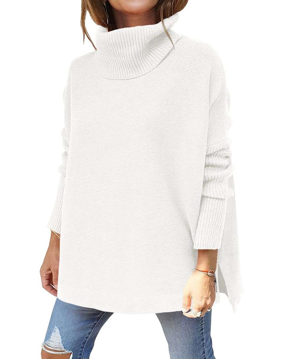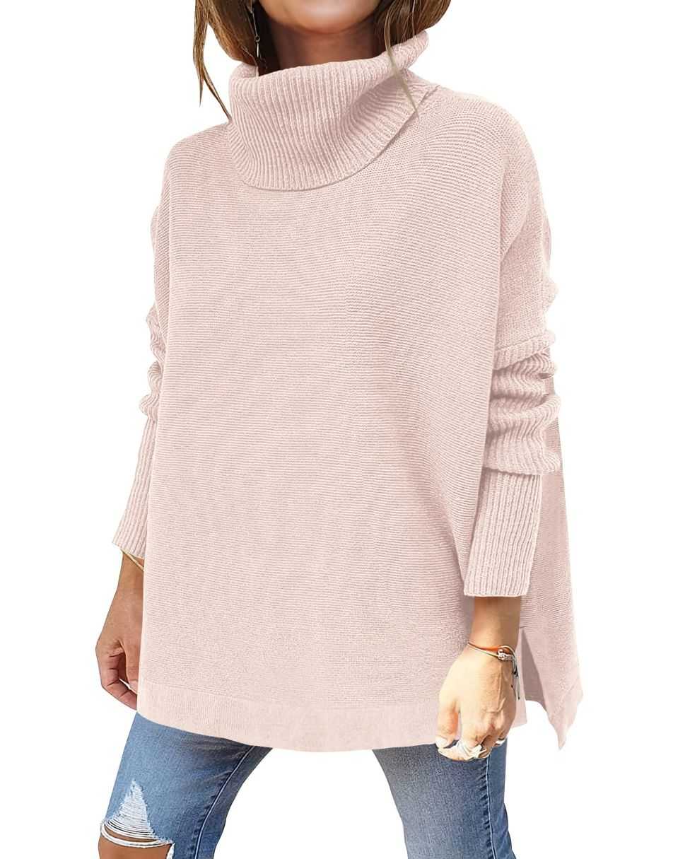 • ANRABESS Women's Turtleneck Oversized 2023 Long Batwing Sleeve Spilt Hem Knit Tunic Pullover Sweater Tops