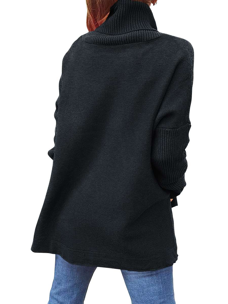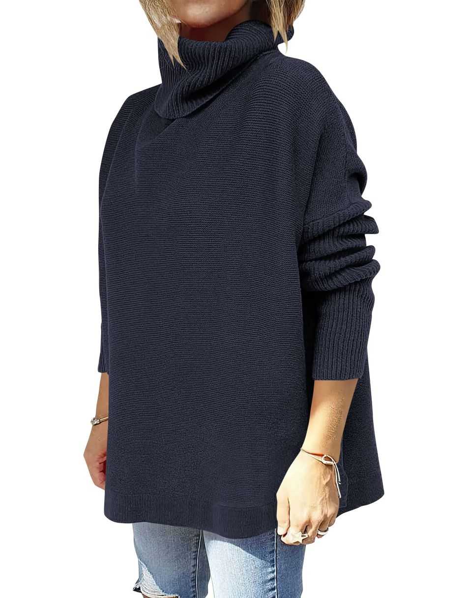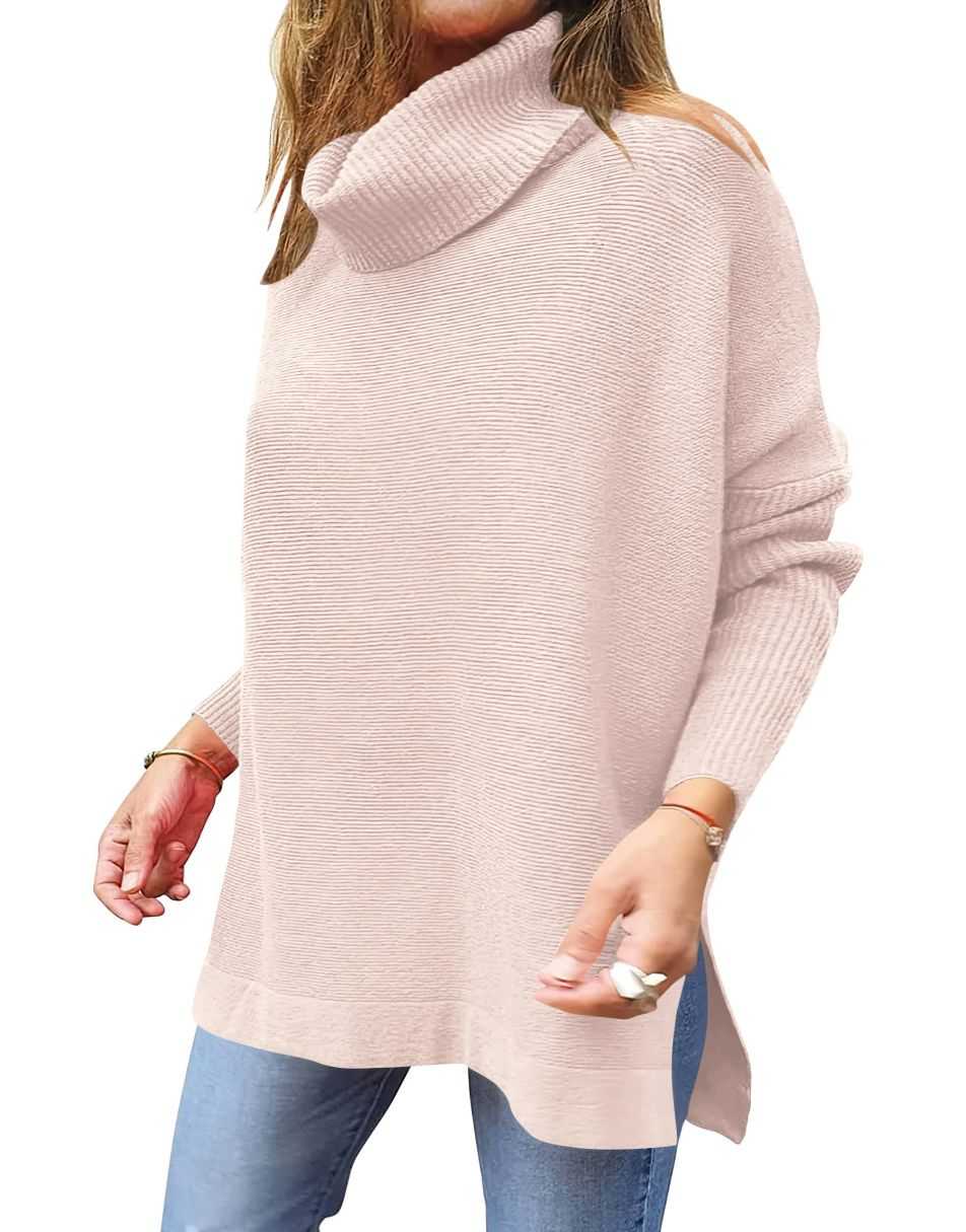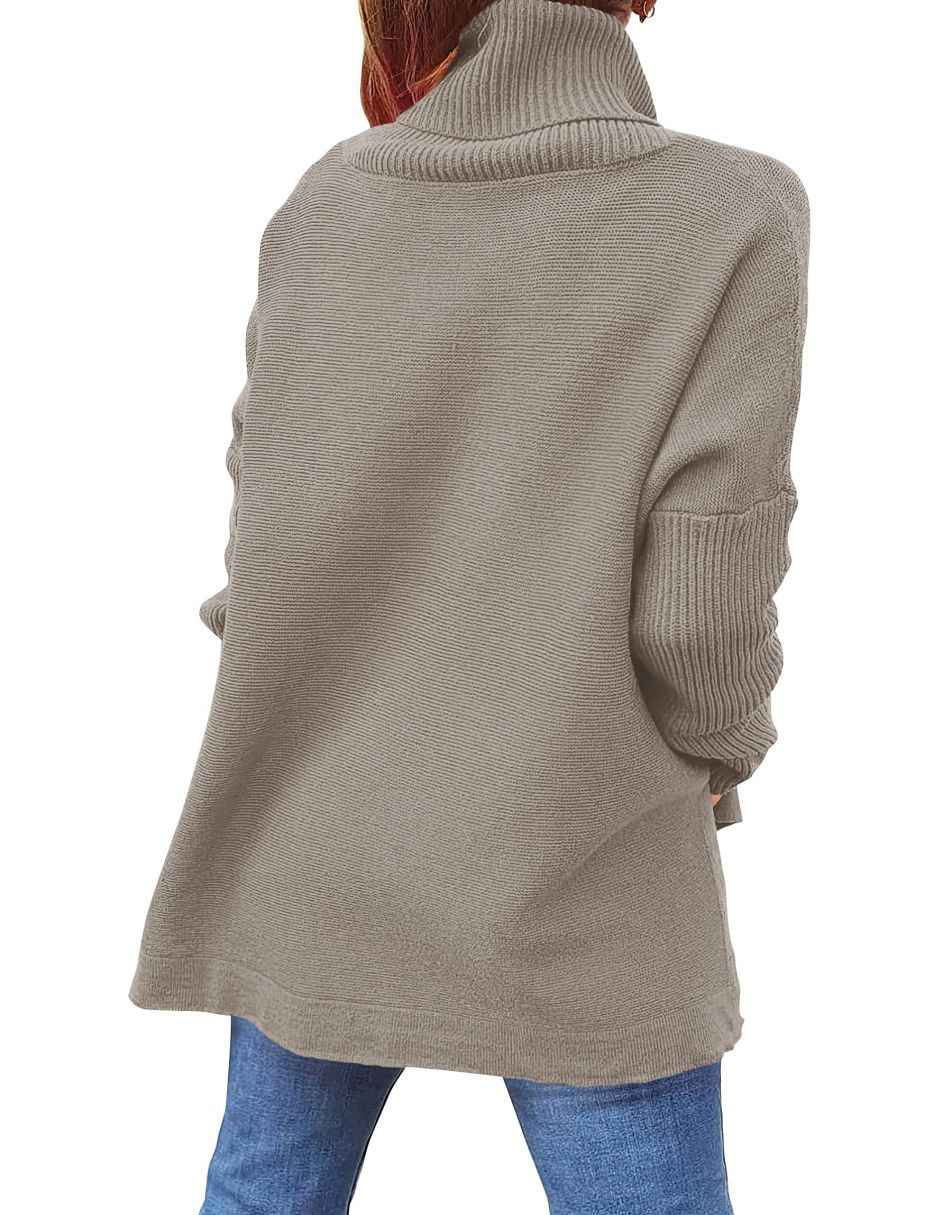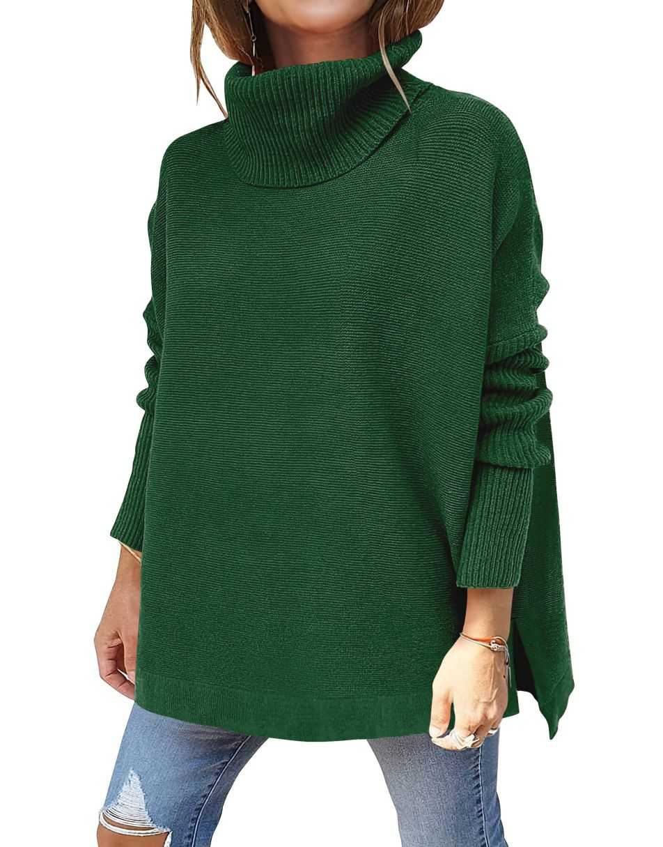 • ANRABESS Women's Turtleneck Oversized 2023 Long Batwing Sleeve Spilt Hem Knit Tunic Pullover Sweater Tops