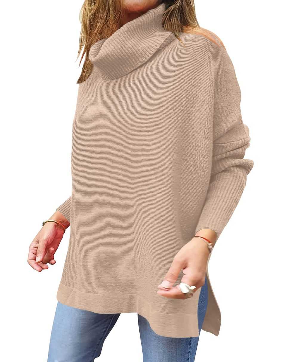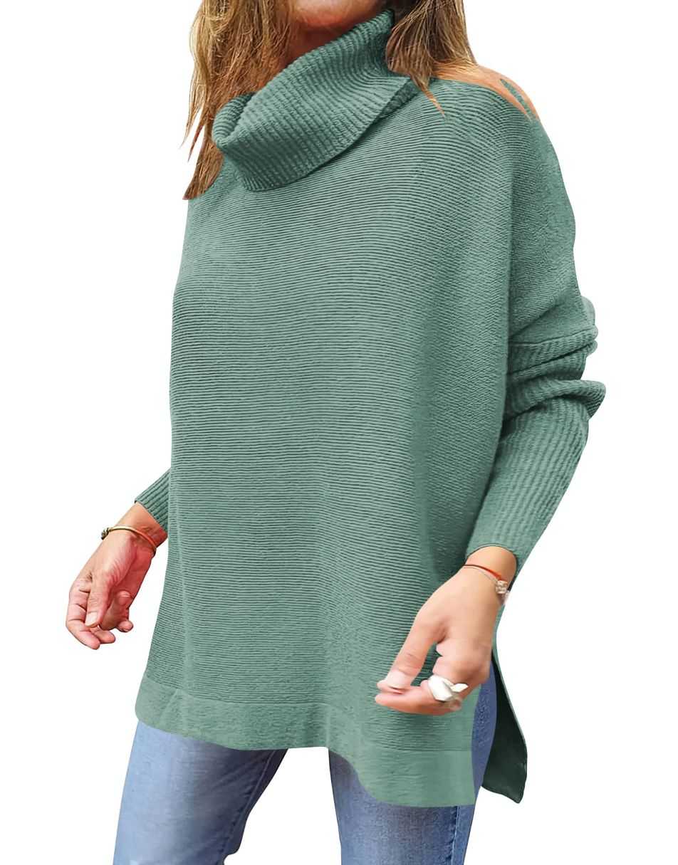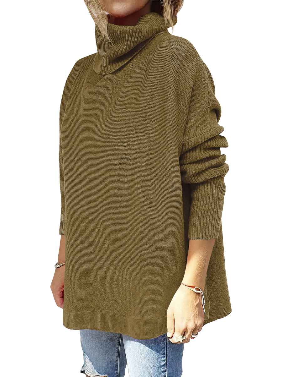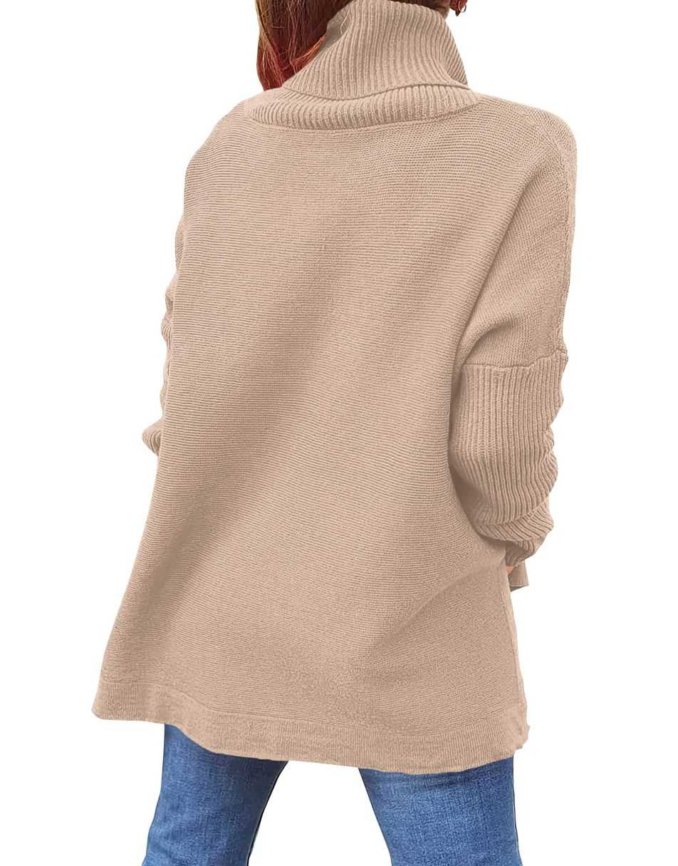 • ANRABESS Women's Turtleneck Oversized 2023 Long Batwing Sleeve Spilt Hem Knit Tunic Pullover Sweater Tops