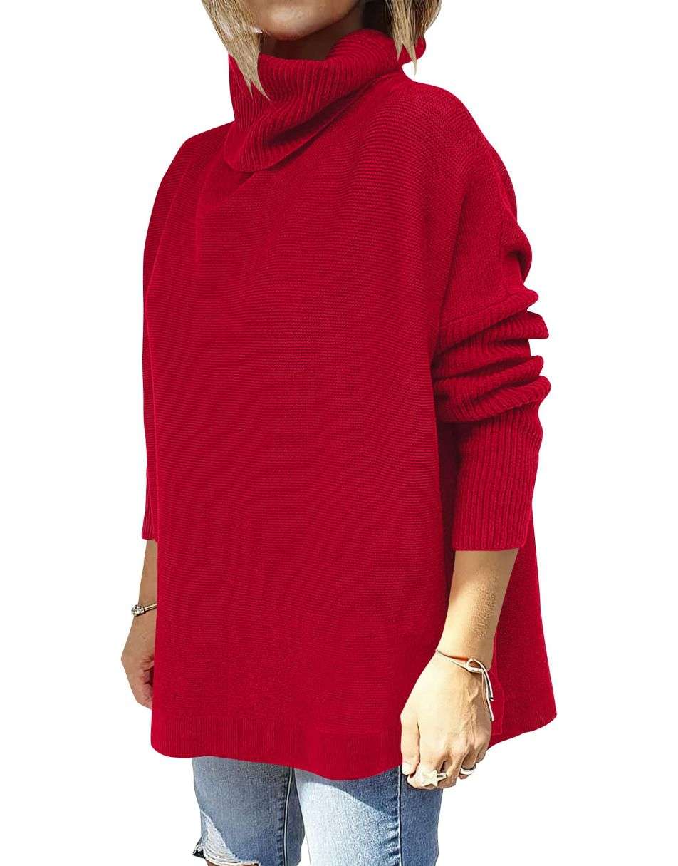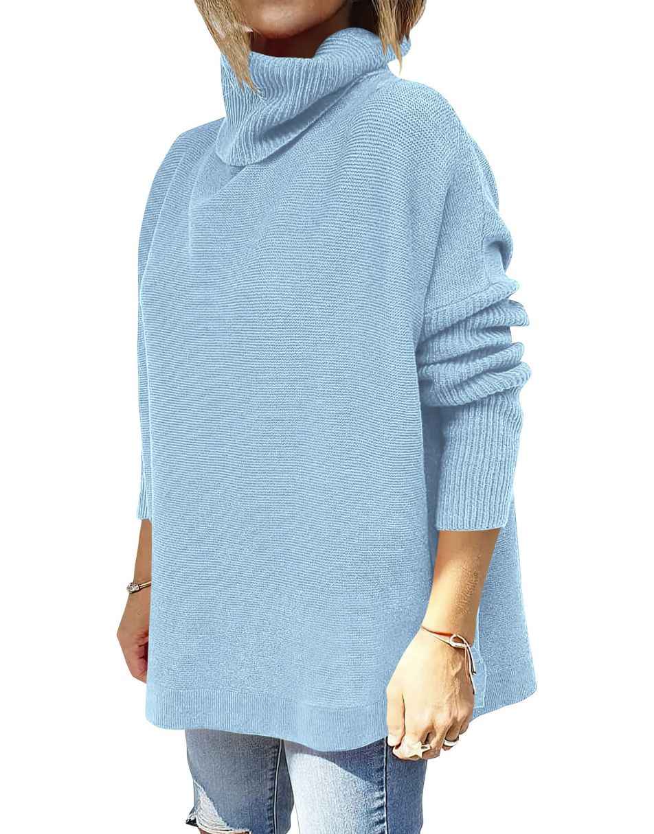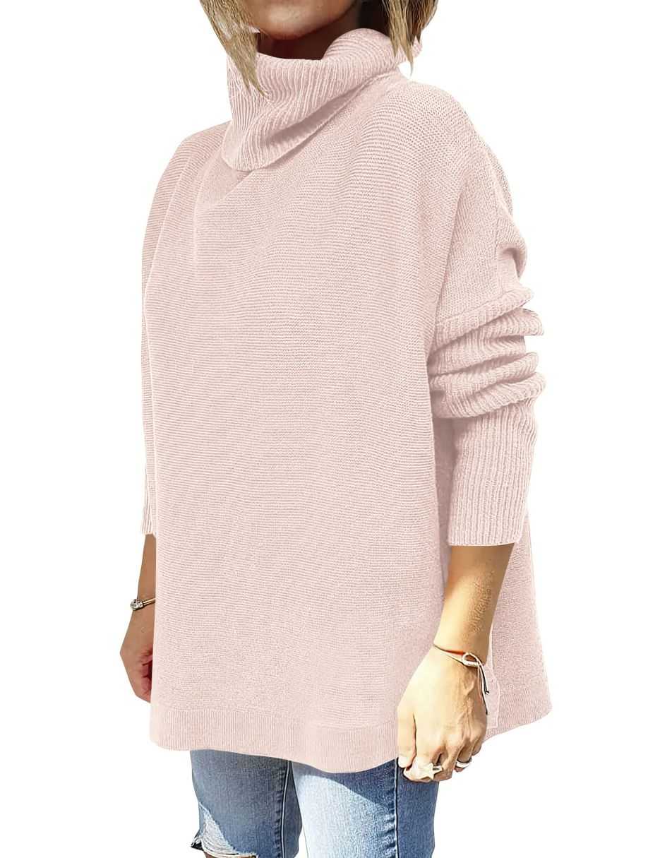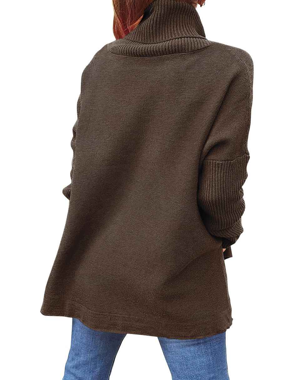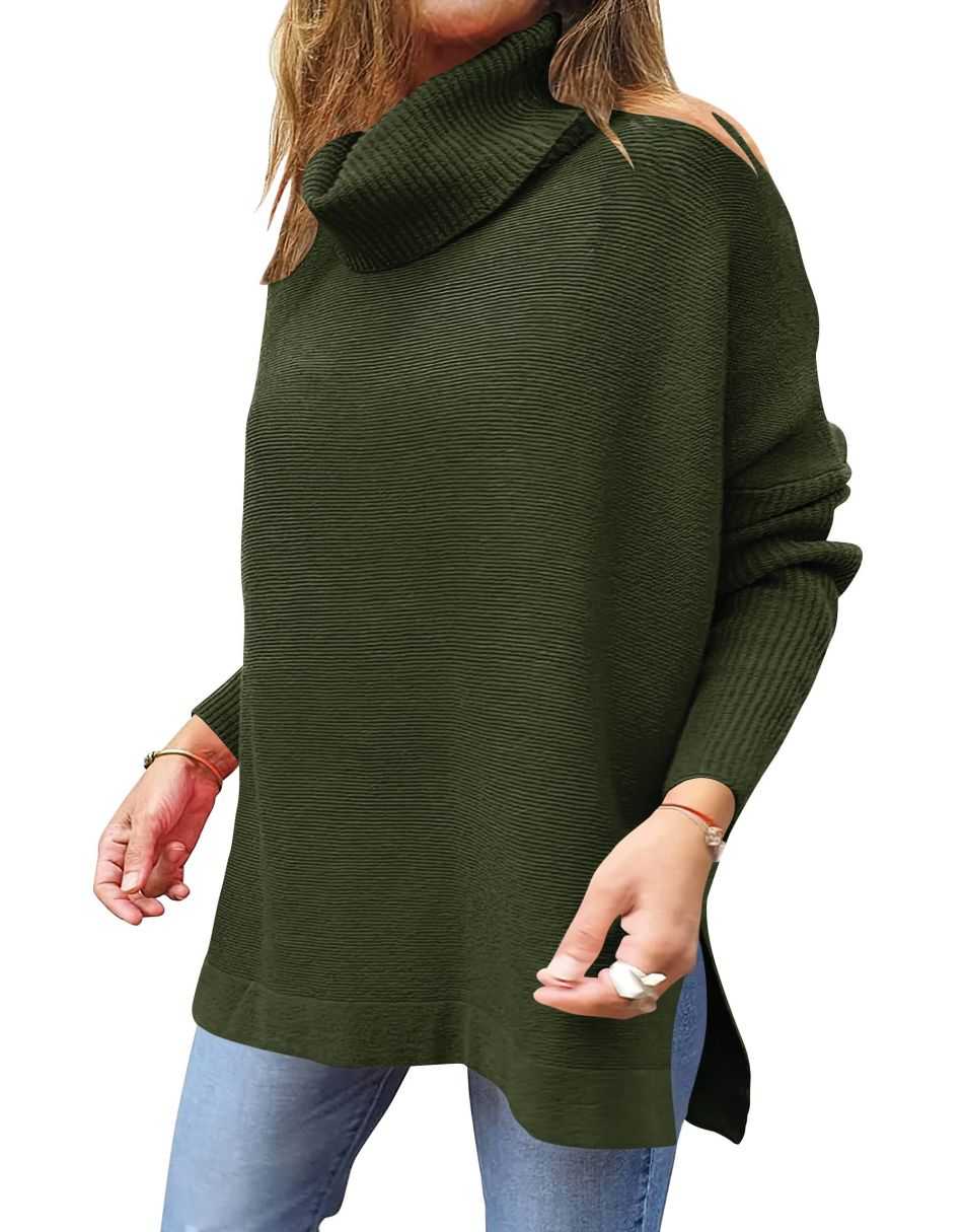 • ANRABESS Women's Turtleneck Oversized 2023 Long Batwing Sleeve Spilt Hem Knit Tunic Pullover Sweater Tops