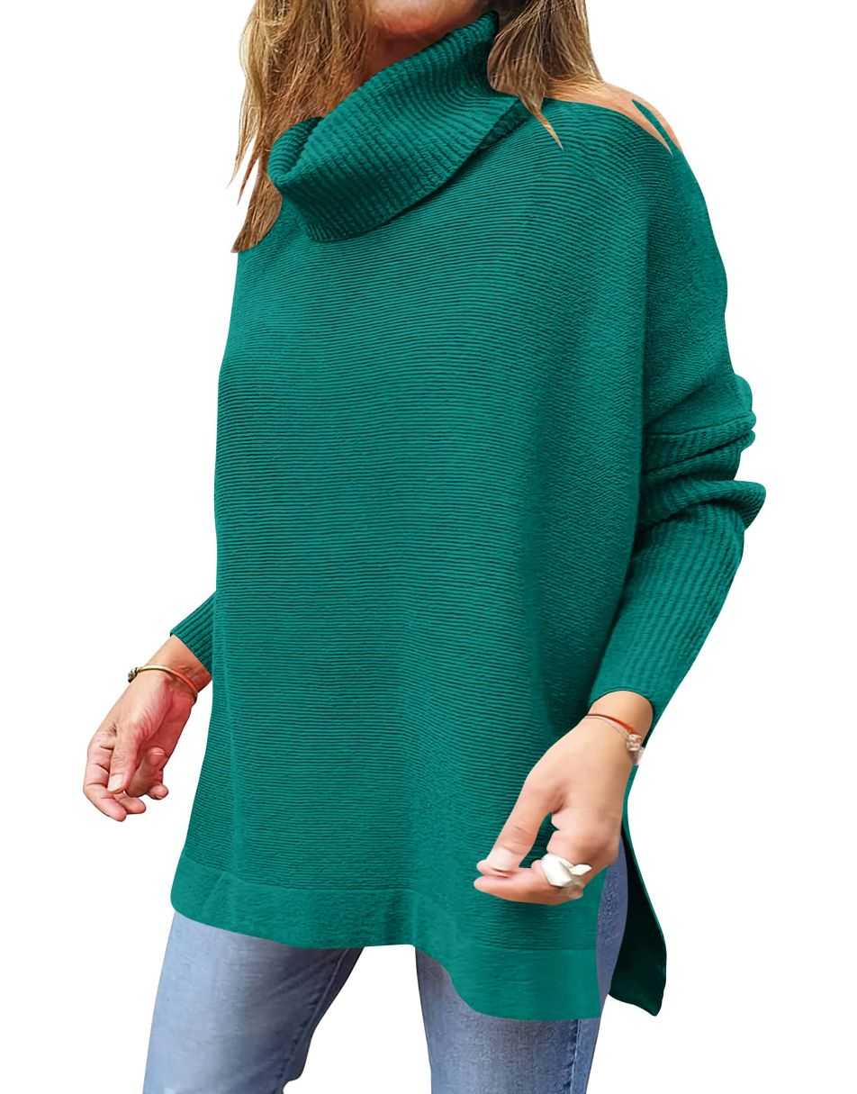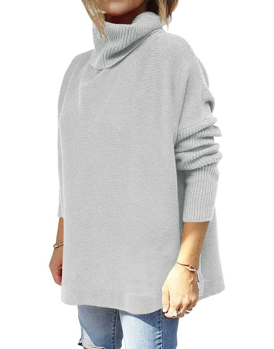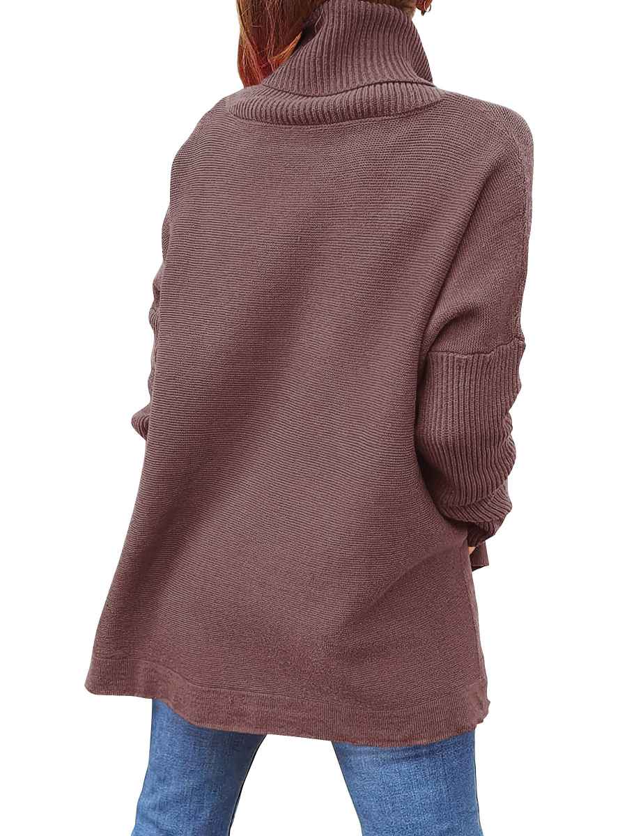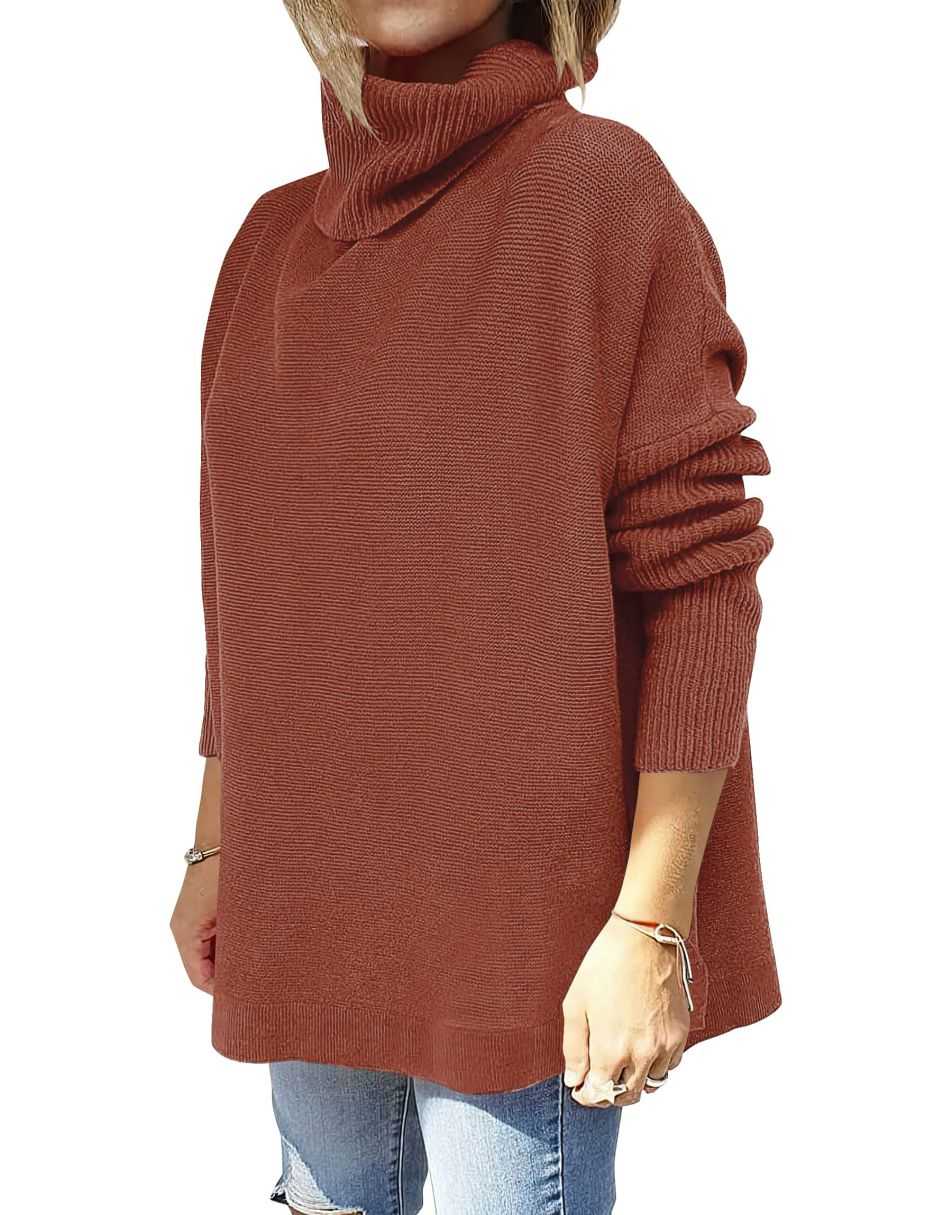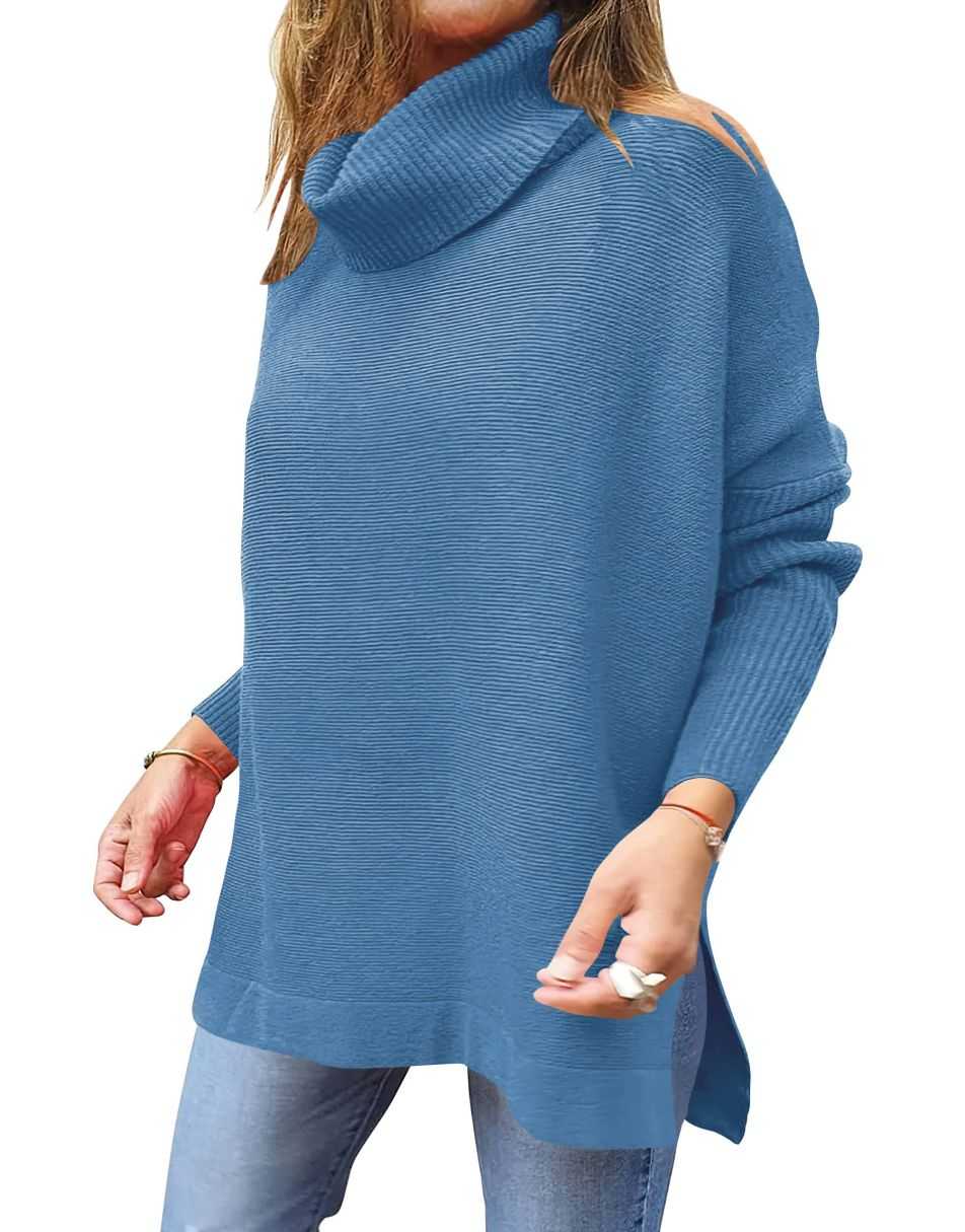• ANRABESS Women's Turtleneck Oversized 2023 Long Batwing Sleeve Spilt Hem Knit Tunic Pullover Sweater Tops