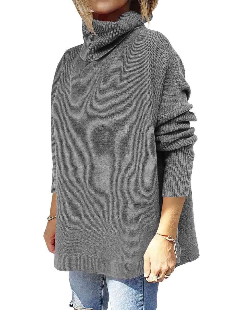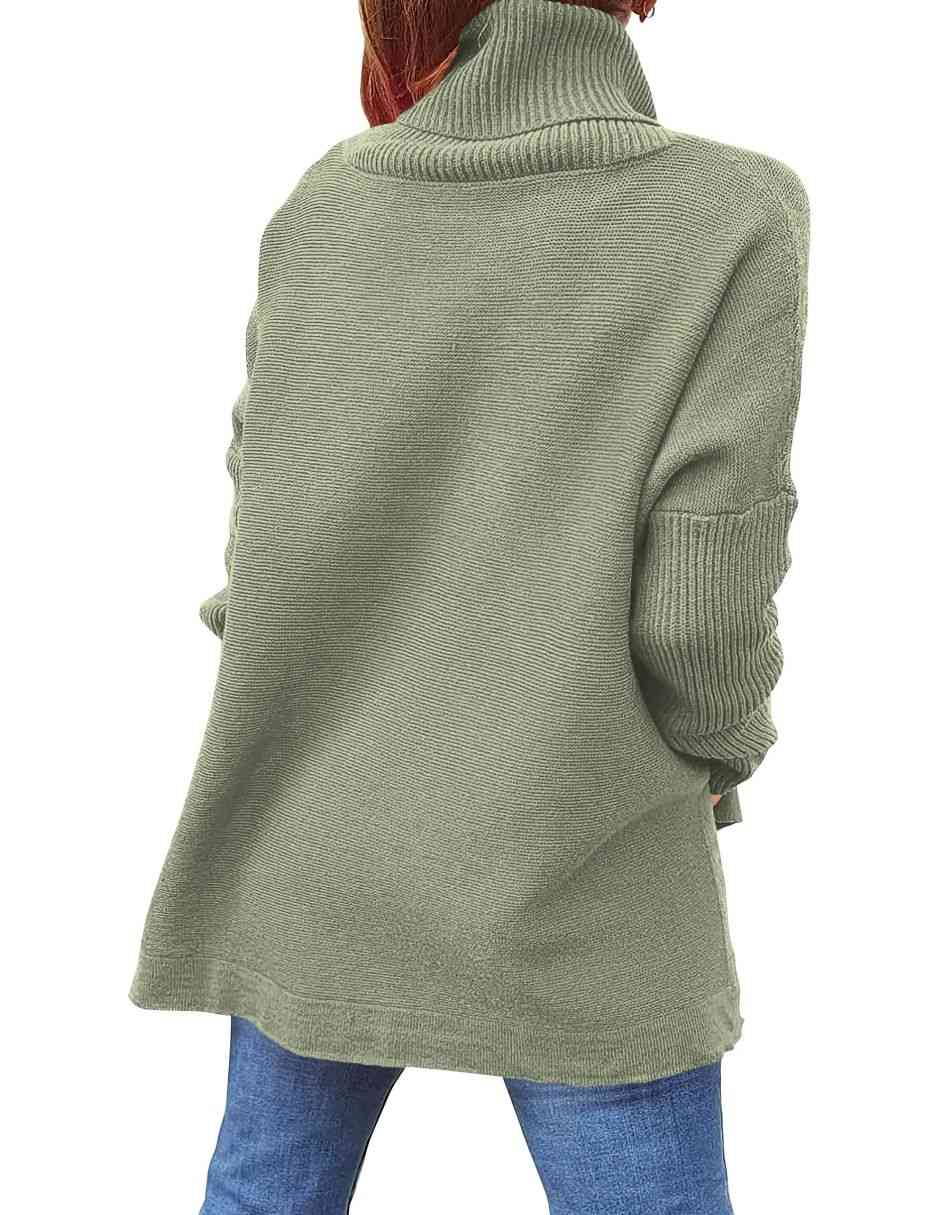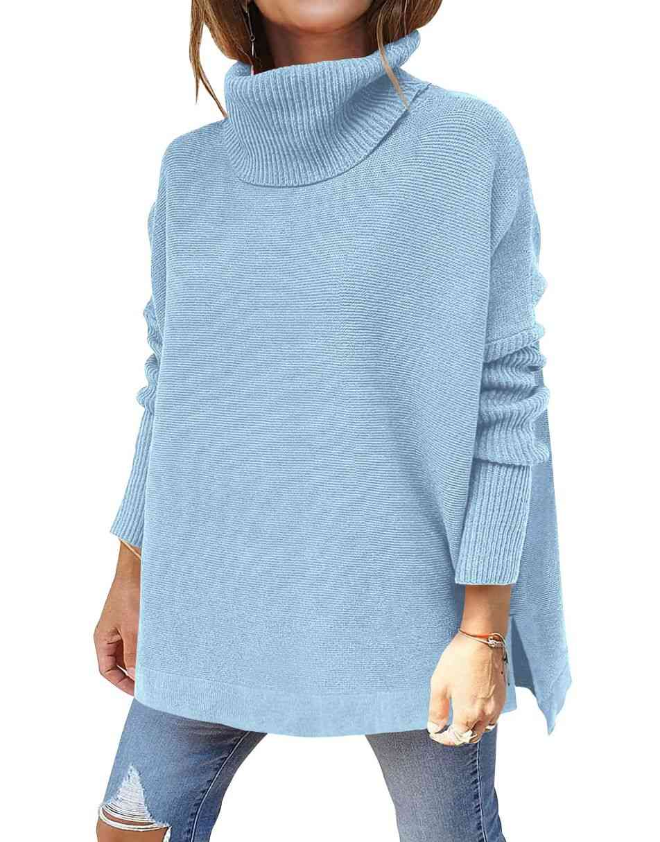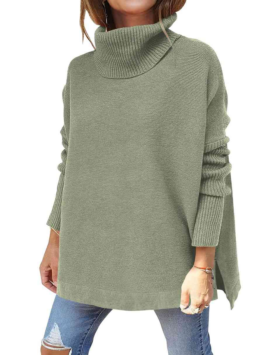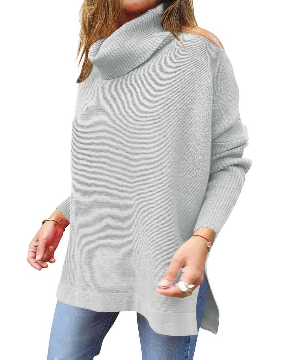 • ANRABESS Women's Turtleneck Oversized 2023 Long Batwing Sleeve Spilt Hem Knit Tunic Pullover Sweater Tops