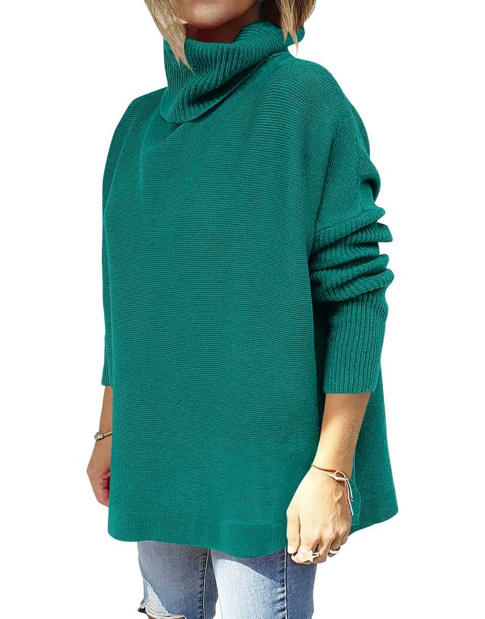 • Design锛�Turtle cowl neck锛�long batwing sleeve锛�high low asymmetric hem锛�solid color锛�tunic top sweater锛�knitwear casual style锛�oversized sweater.