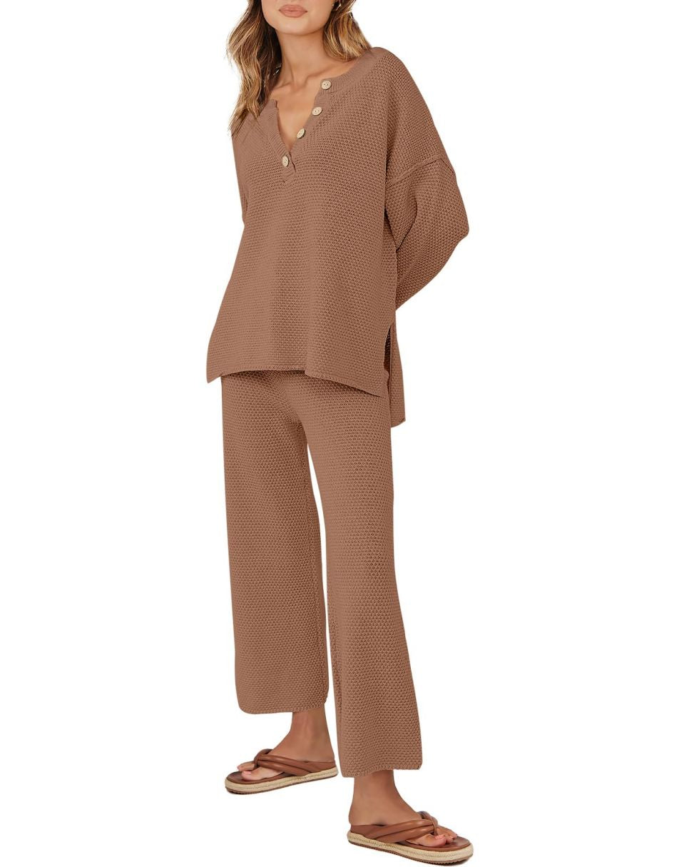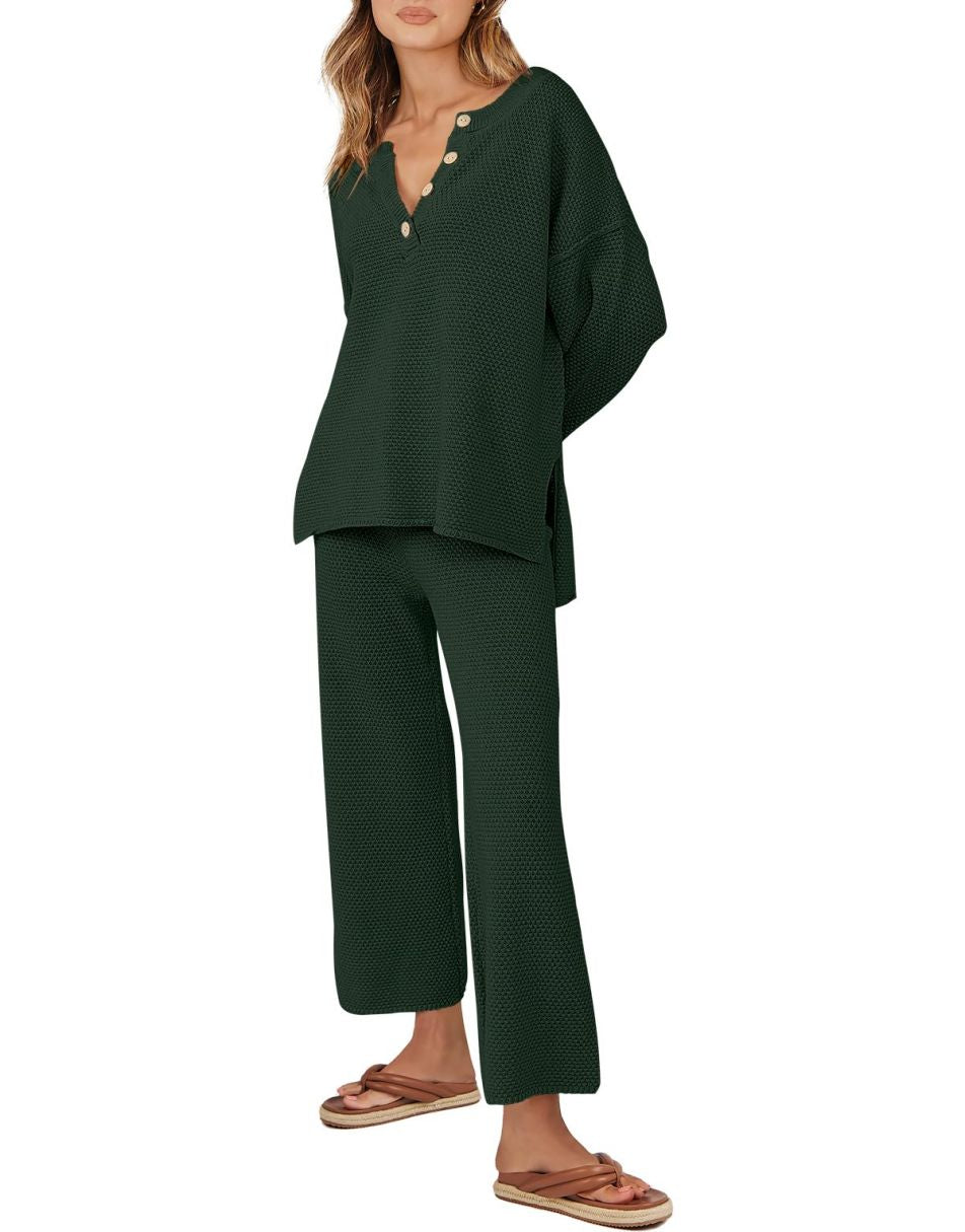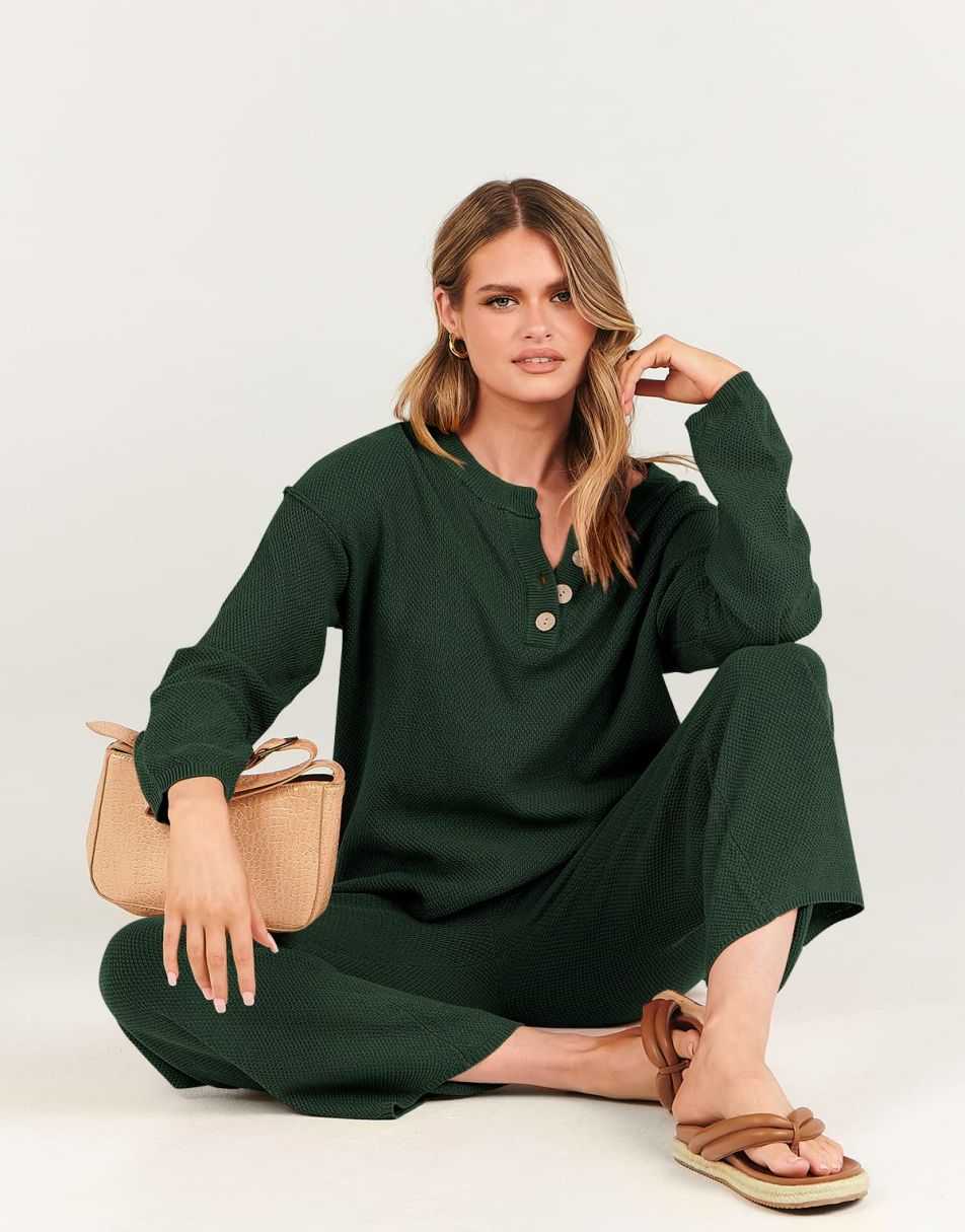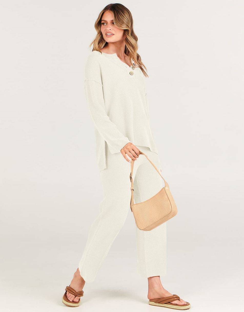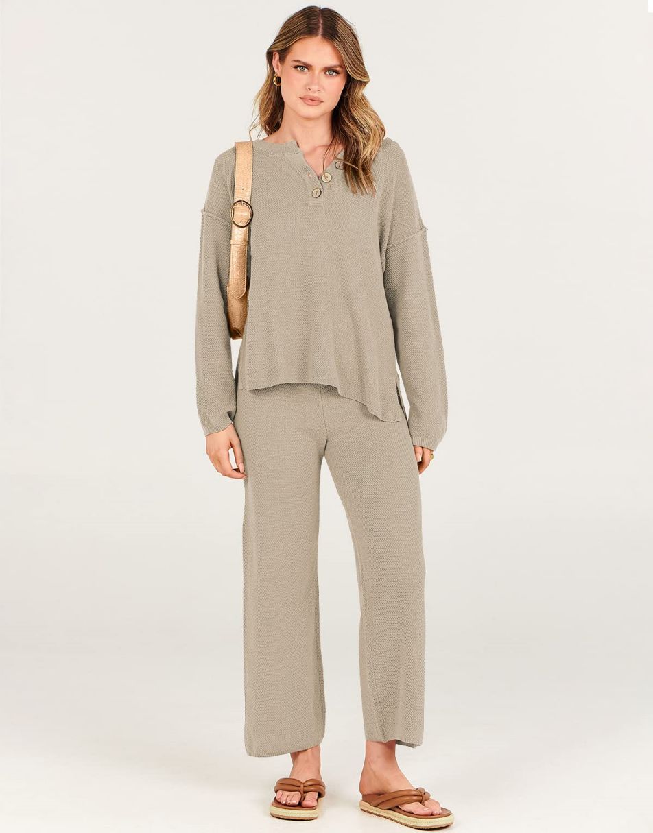 • Design -Top: crew neck, button design, oversized loose, side slit, dropped raglan sleeves; Pants: Elastic waistband, high-rise design, pull-on style. Worn as a set or separately to run errands or wear boots and wear it to dinner, it is so versatile you can wear it anyway you want.