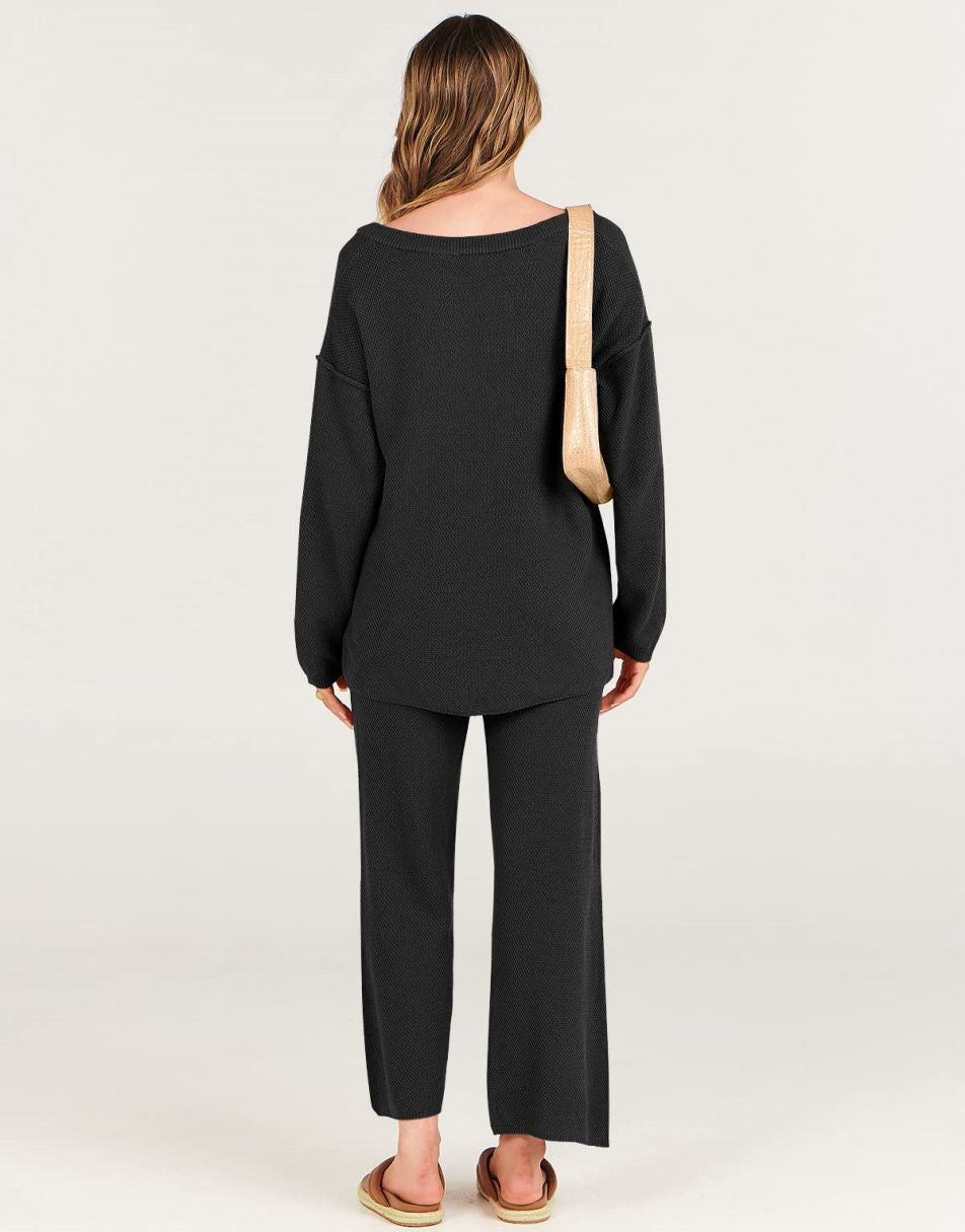 • ANRABESS Women 2 Piece Outfits Oversized Knit Loungewear Loose Slouchy Sweater Set 2023 Fall Trendy Matching Lounge Sets