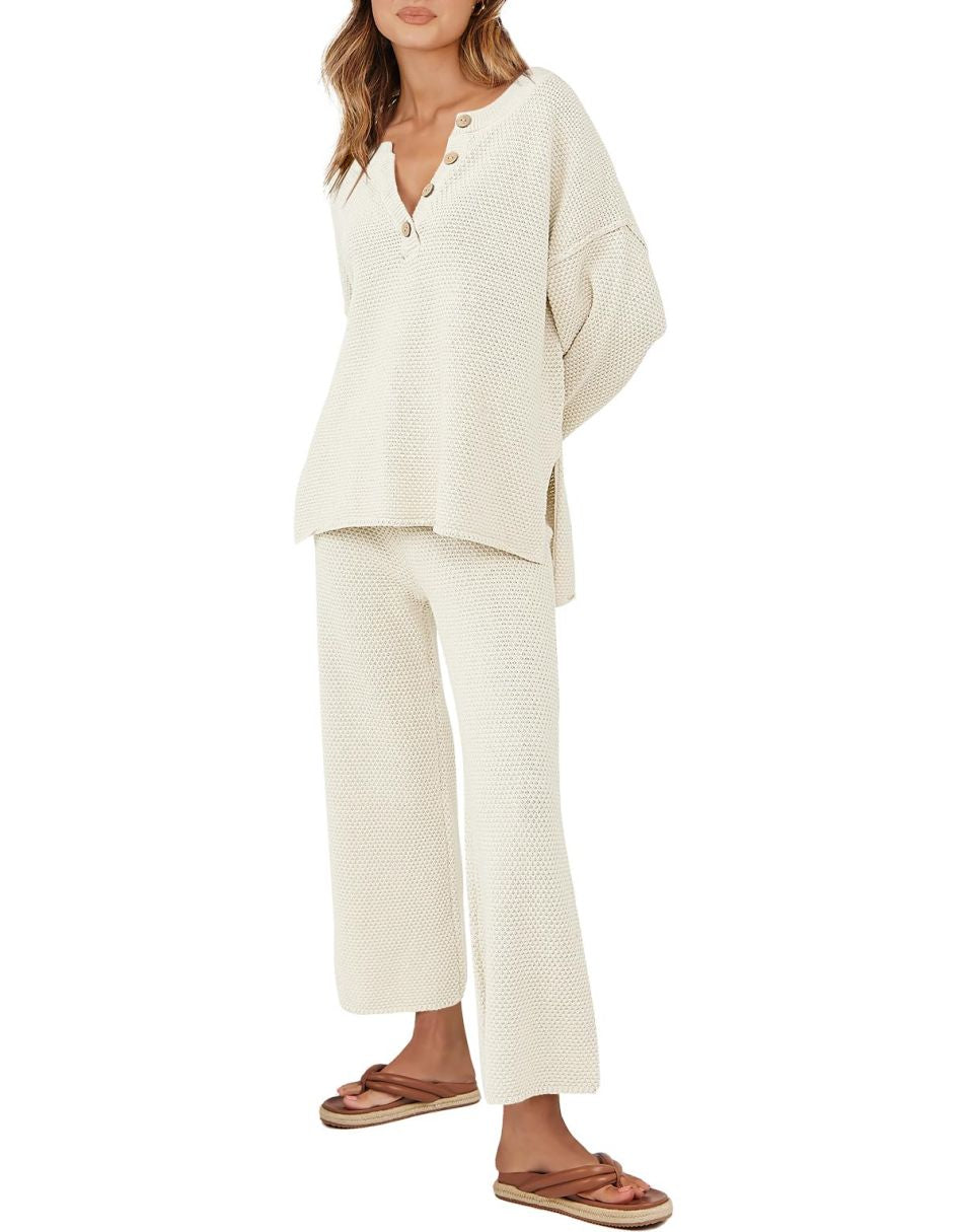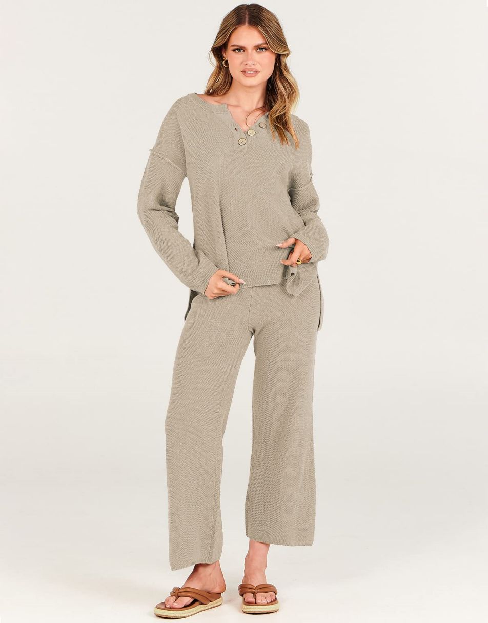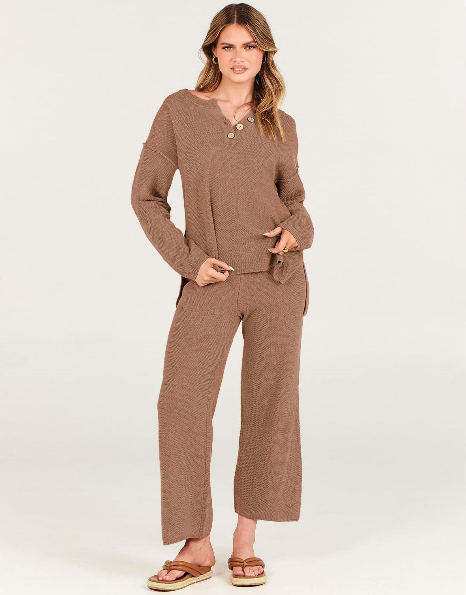 • Design -Top: crew neck, button design, oversized loose, side slit, dropped raglan sleeves; Pants: Elastic waistband, high-rise design, pull-on style. Worn as a set or separately to run errands or wear boots and wear it to dinner, it is so versatile you can wear it anyway you want.