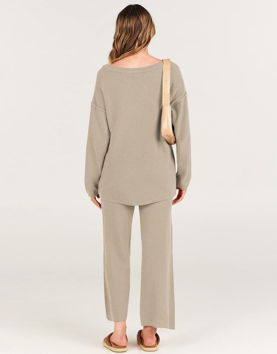 • Match - Perfect in a so soft knit fabrication, this two piece matching sets is a cozy instant outfit.Slouchy, relaxed fit with wide-leg pants.