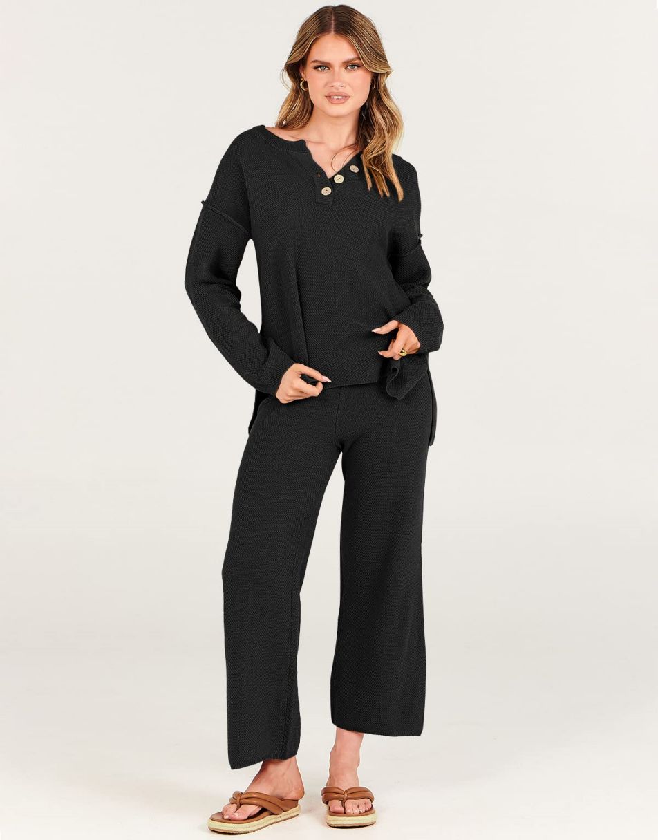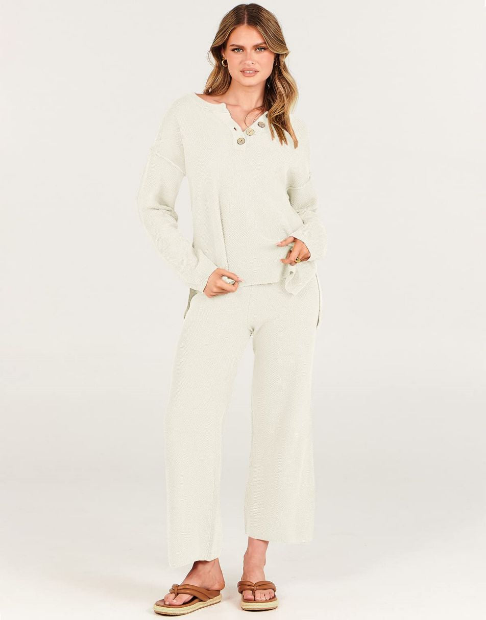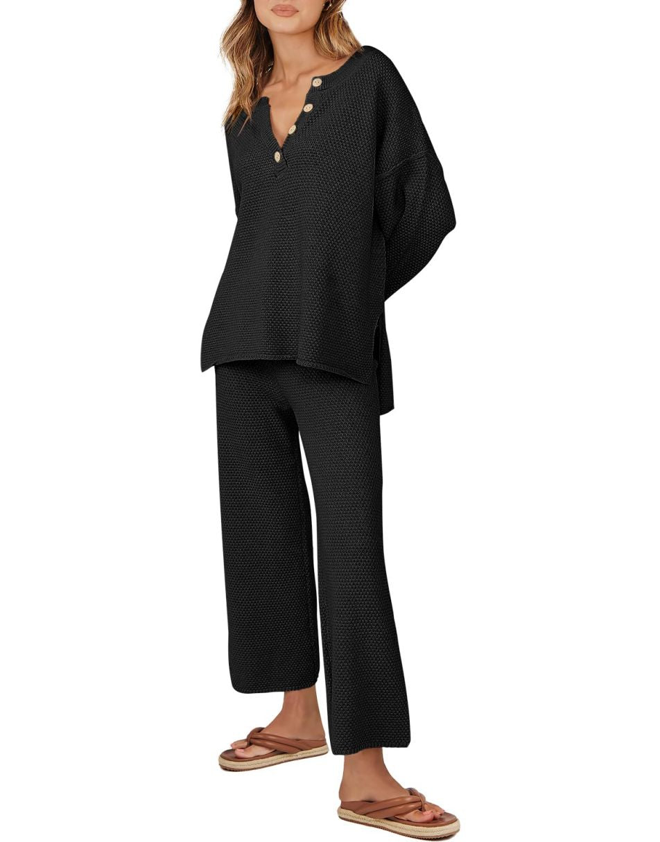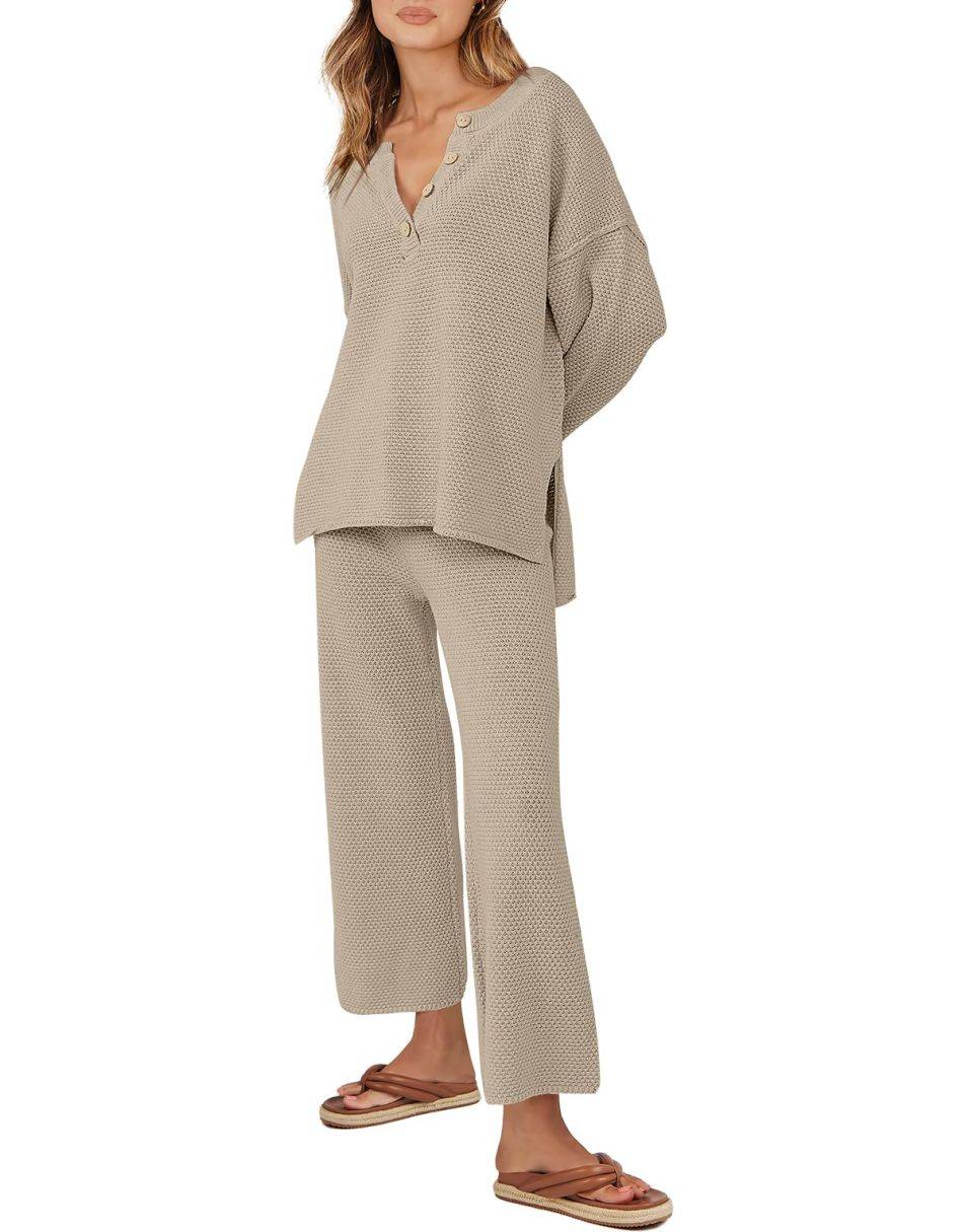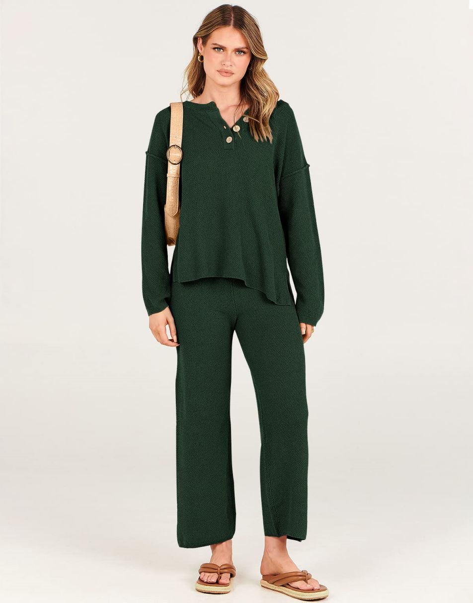 • Design -Top: crew neck, button design, oversized loose, side slit, dropped raglan sleeves; Pants: Elastic waistband, high-rise design, pull-on style. Worn as a set or separately to run errands or wear boots and wear it to dinner, it is so versatile you can wear it anyway you want.