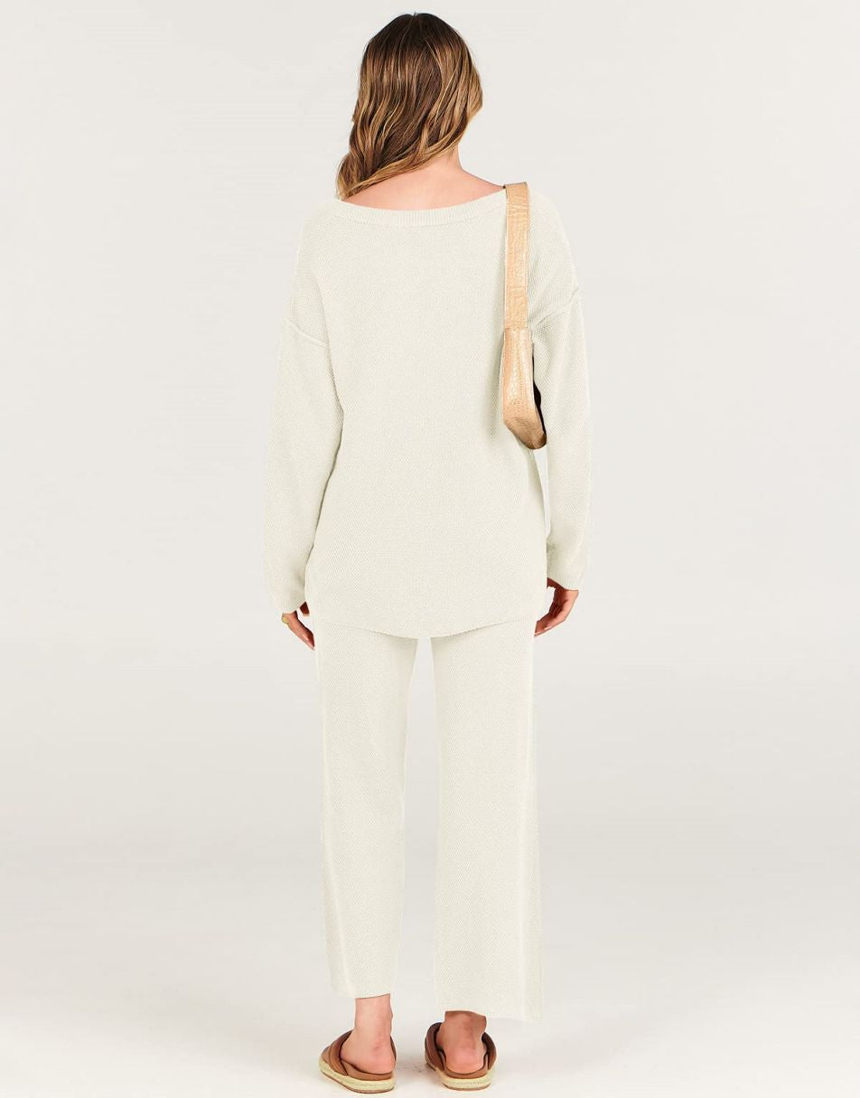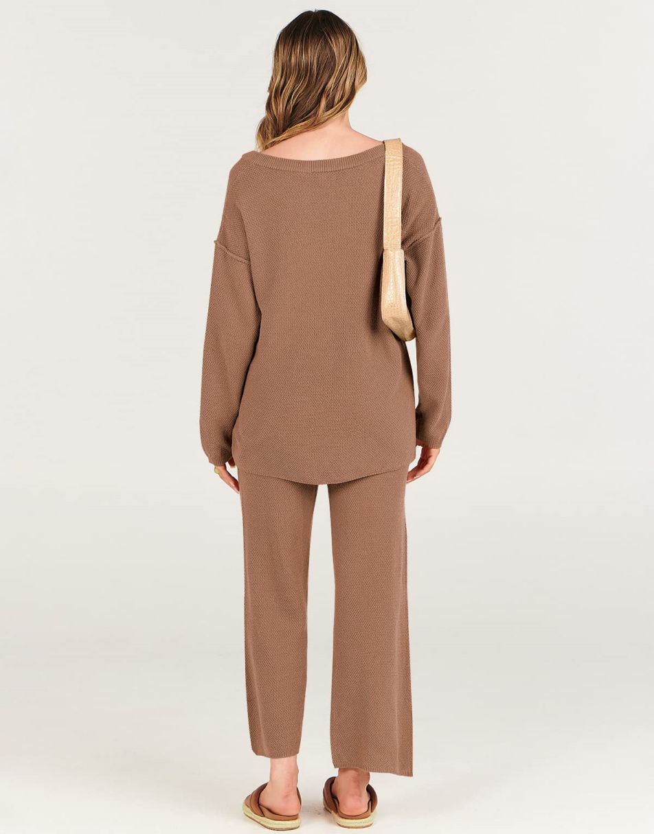 • Match - Perfect in a so soft knit fabrication, this two piece matching sets is a cozy instant outfit.Slouchy, relaxed fit with wide-leg pants.