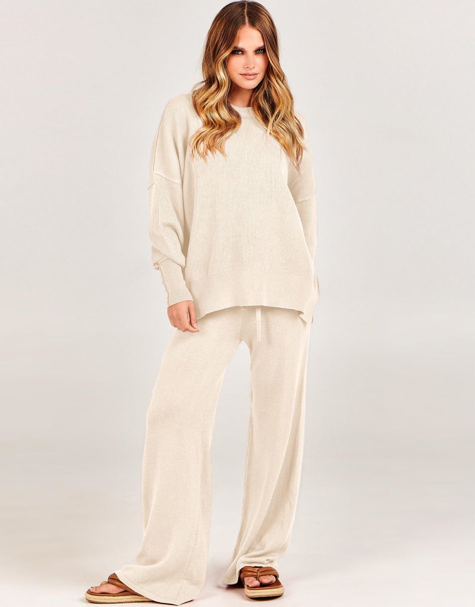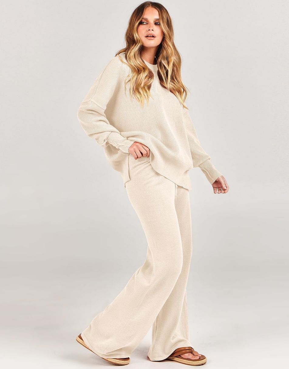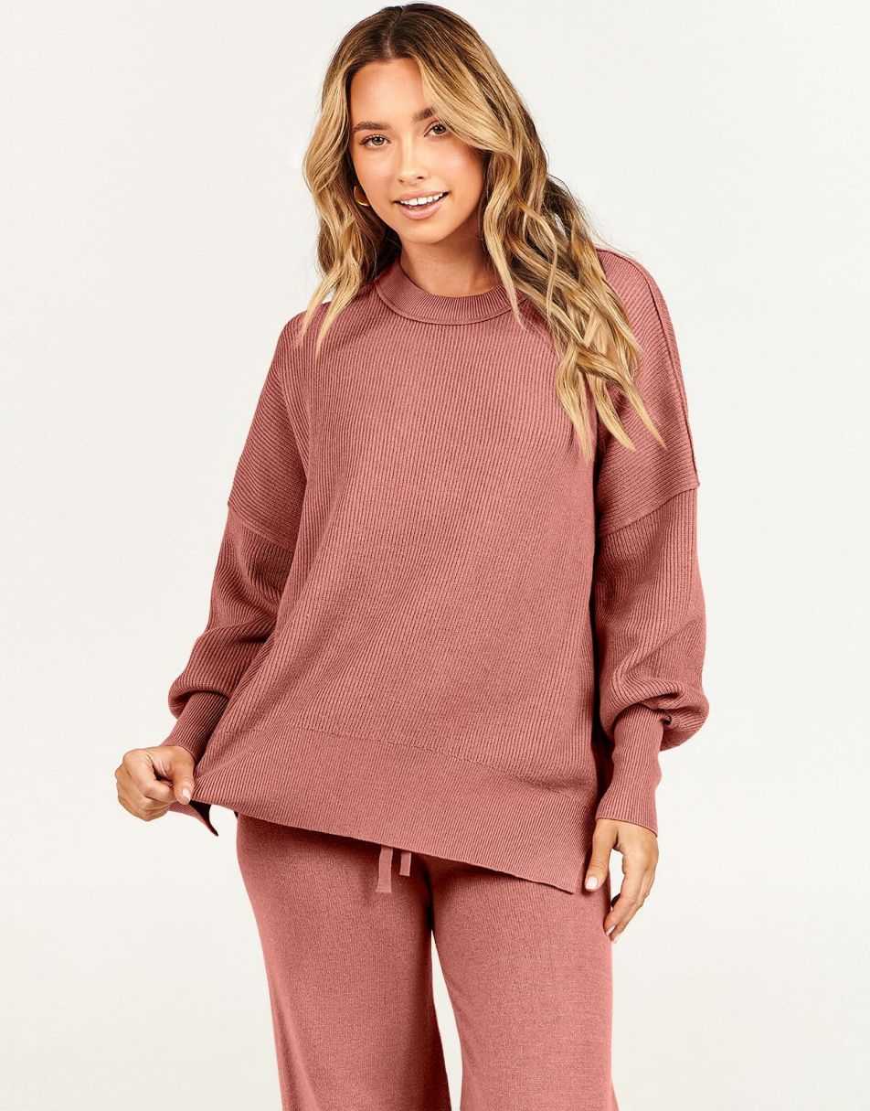 • Style - You can wear this sweater set separately. The top is our classic oversized ribbed knit sweater 锛�the pants is a soft lounge wear pajamas pants.