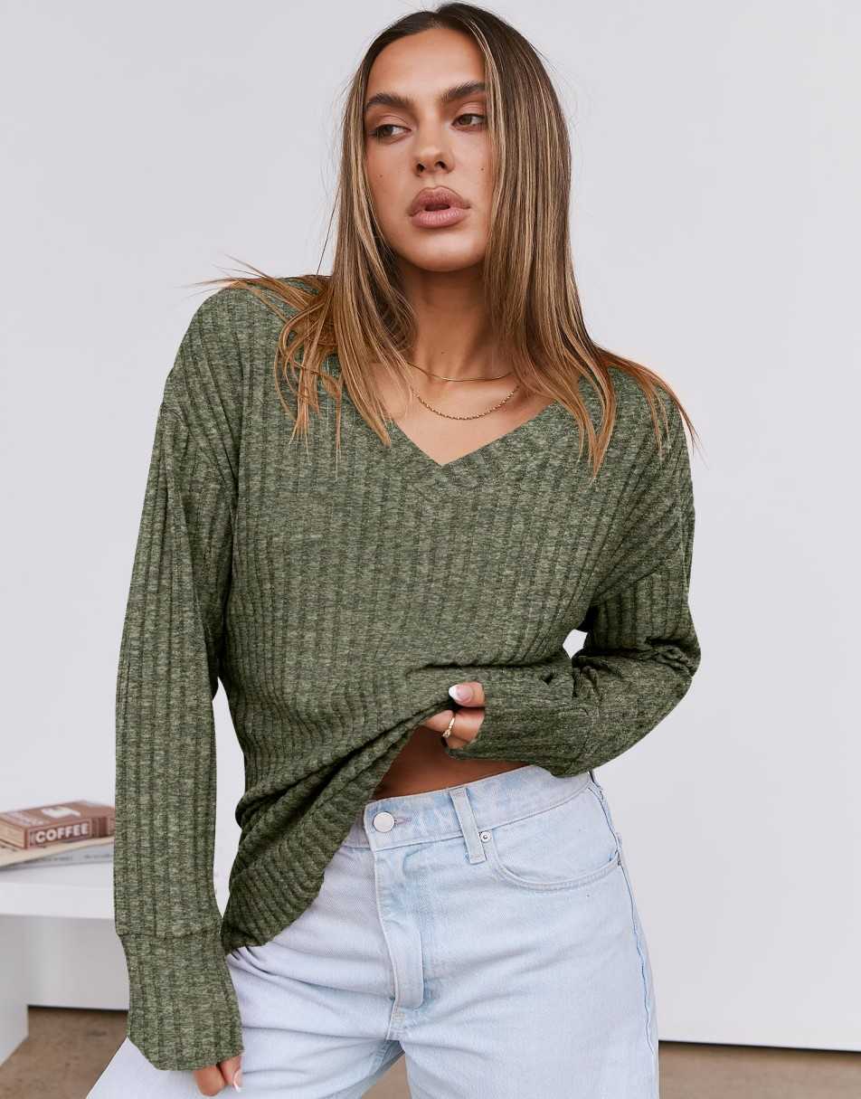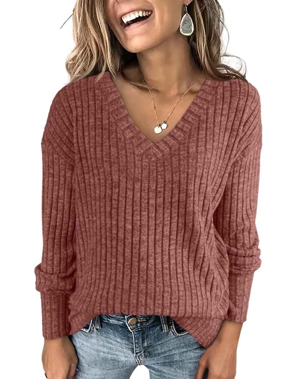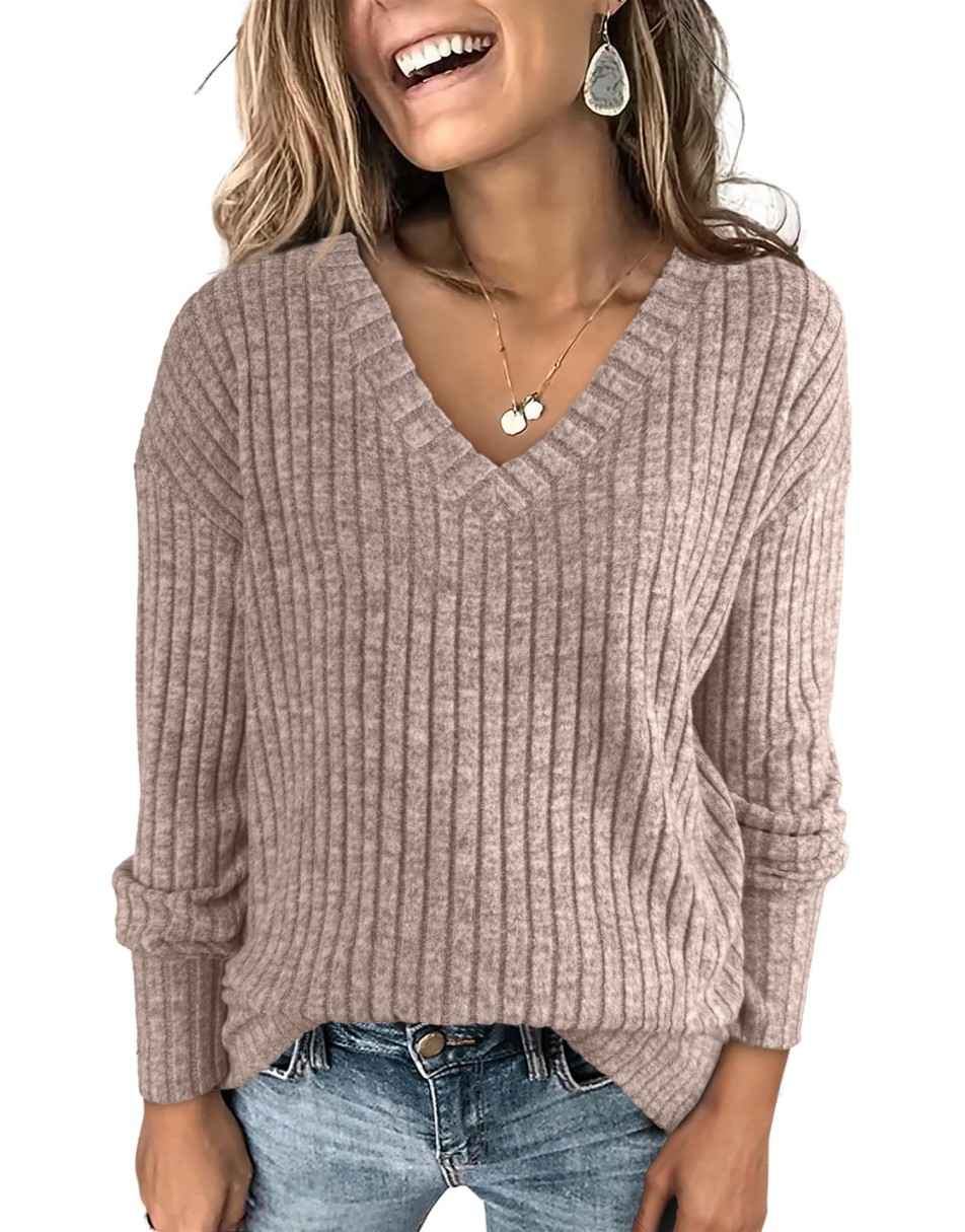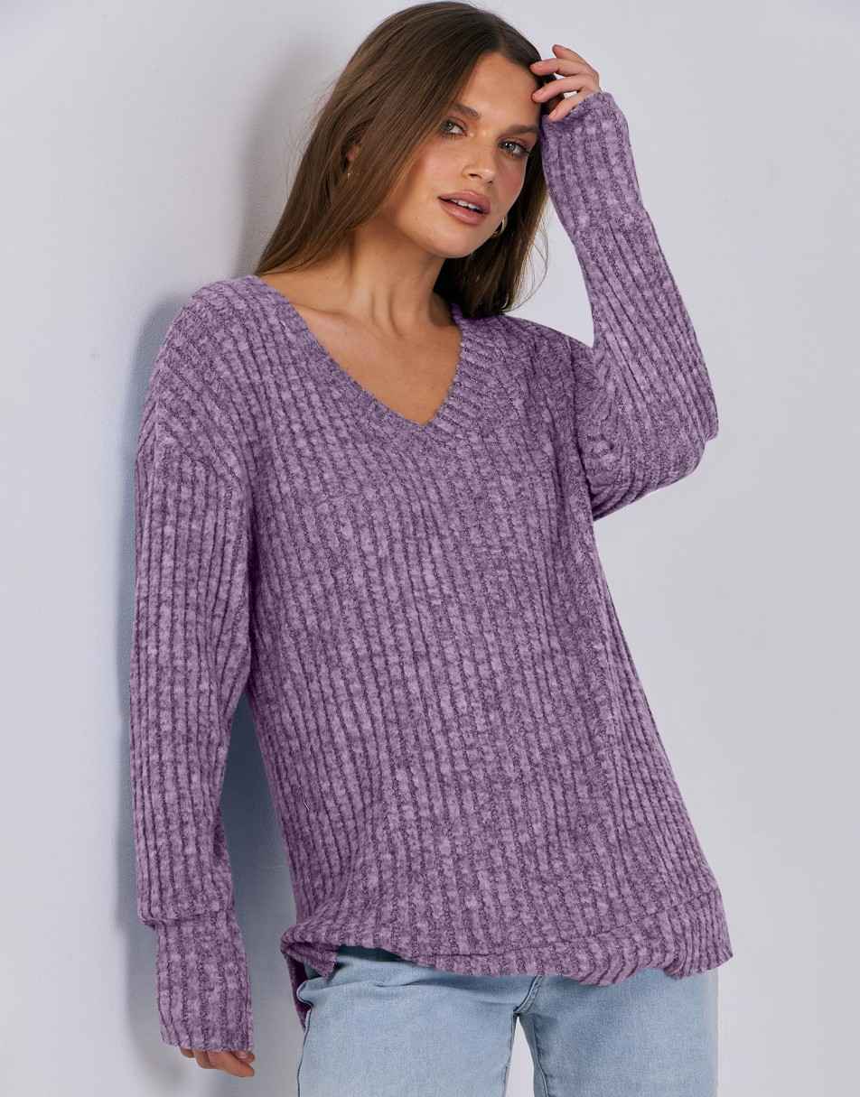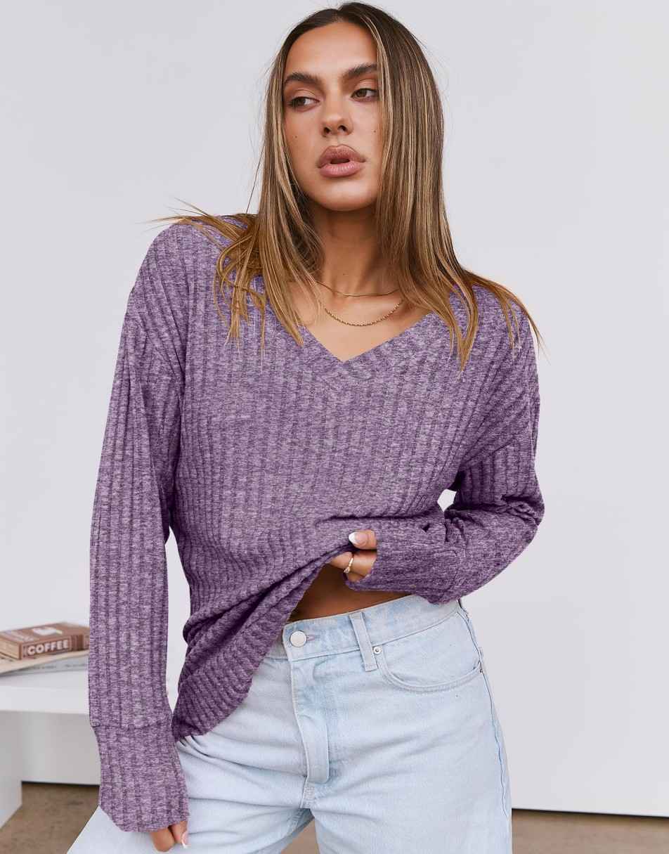 Features - Women's Casual lightweight sweater, v neck, drop shoulder, long sleeve shirts,fuzzy fabric sweater, side split. The women tops great for casual daily wear, school, office, work,shopping,vacation, travel,going out.The lightweight sweater goes well with jeans, shorts, leggings, or skirts.
