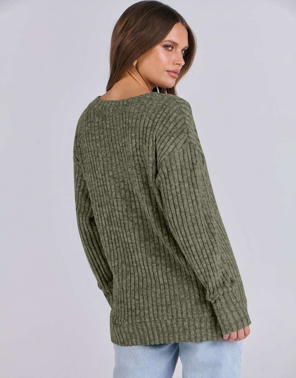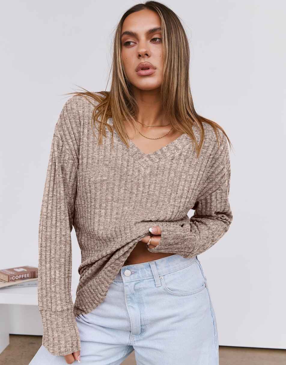 • ANRABESS Long Sleeve Shirts for Women V Neck Casual Fall Tops Loose Fit Lightweight Sweaters Tunic Fashion 2024 Clothes