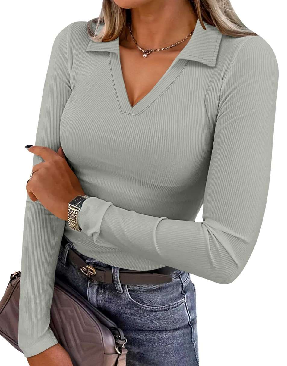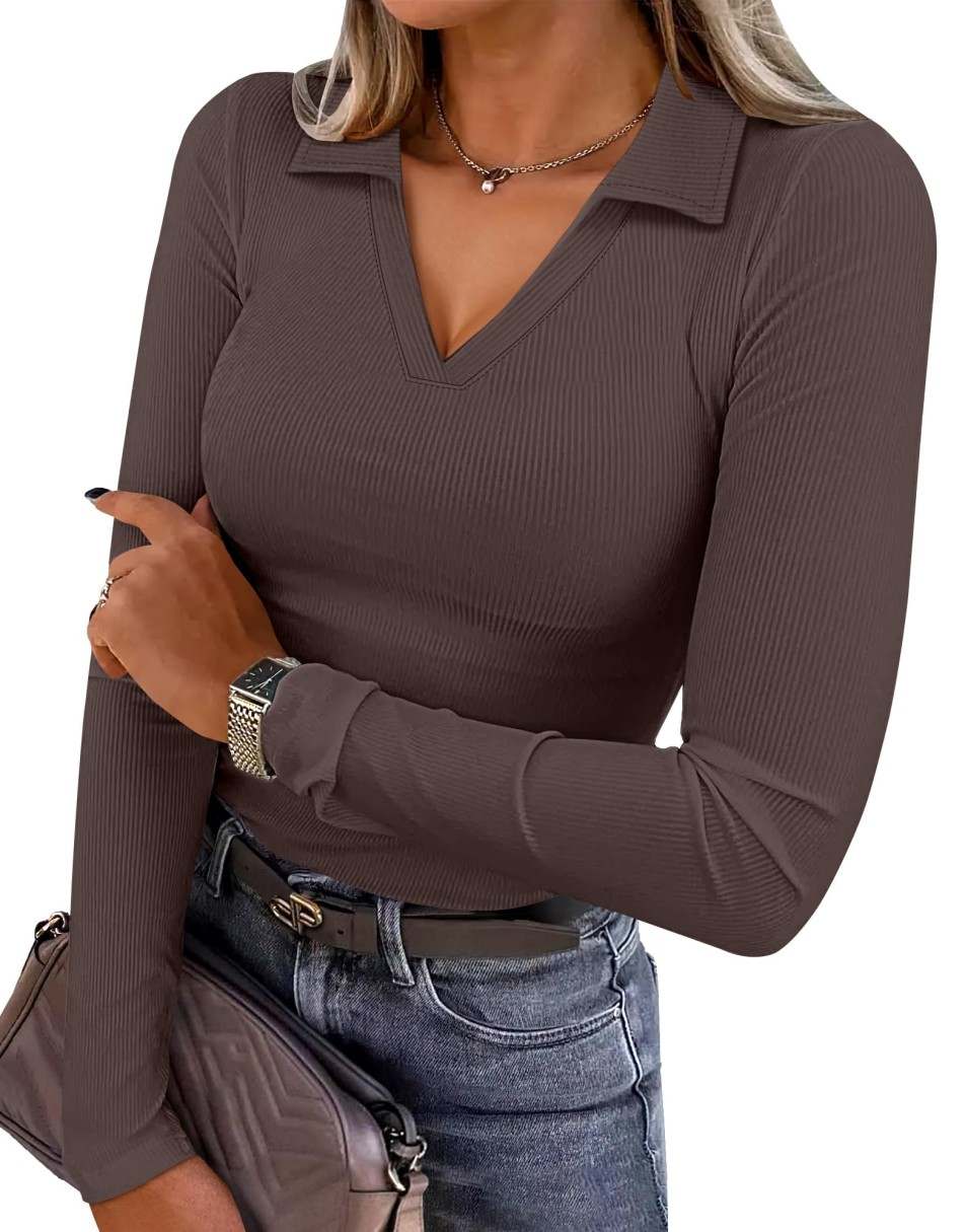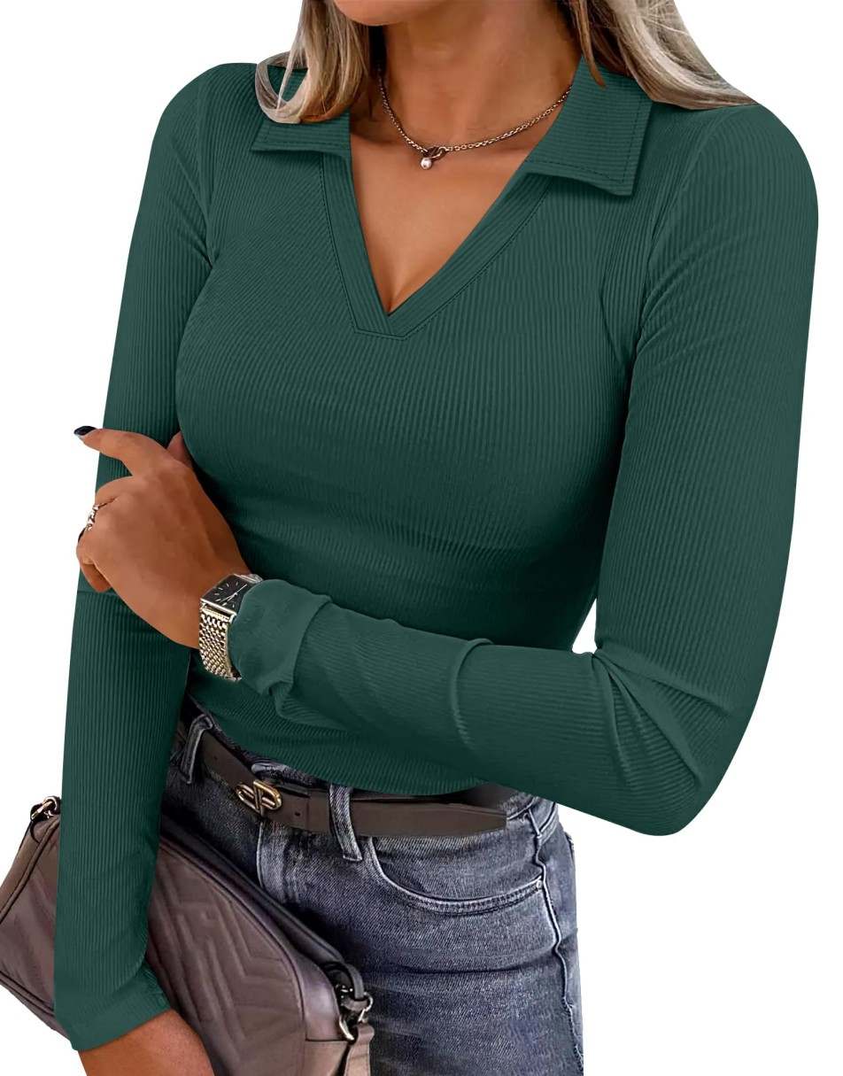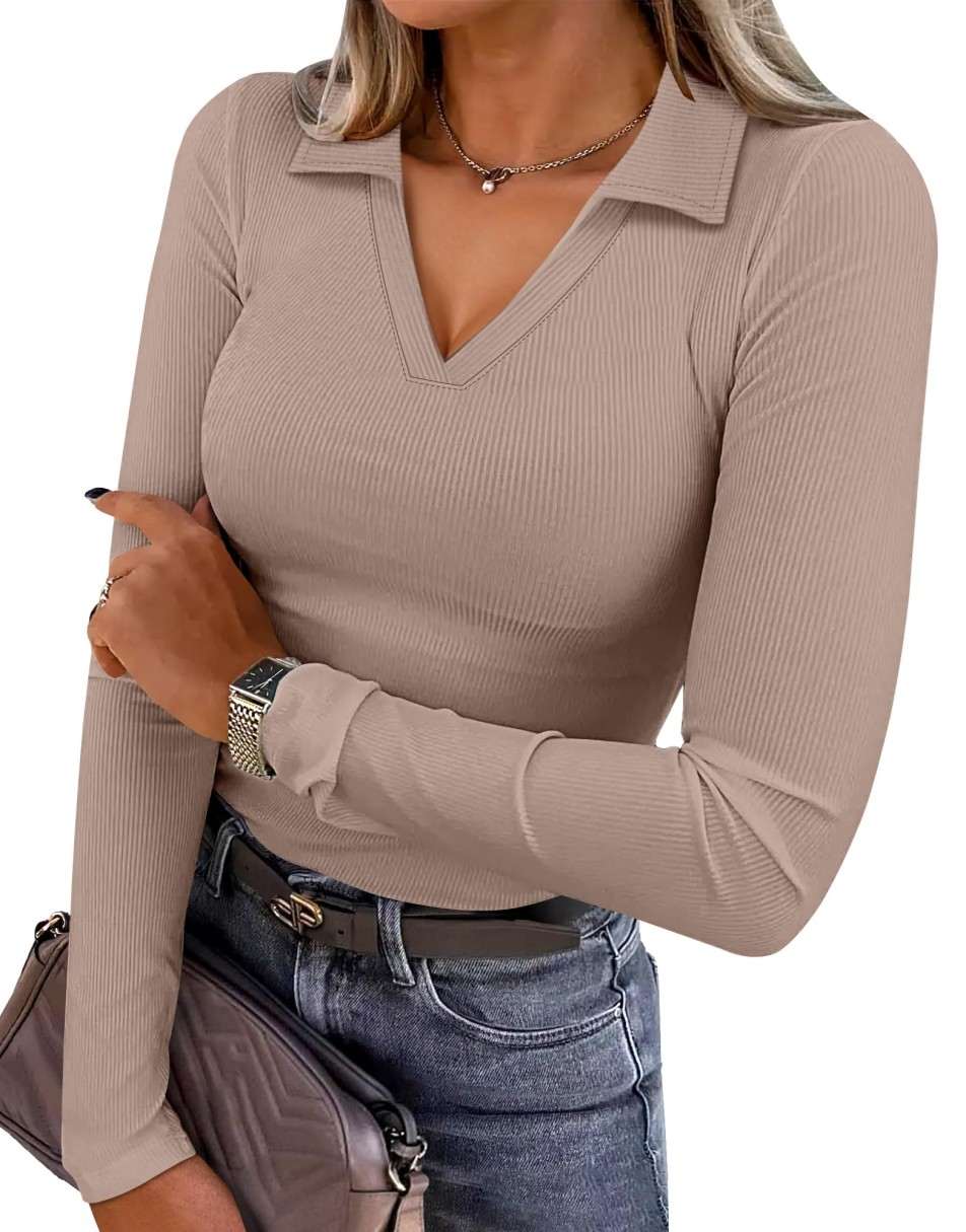 - Features - Our long sleeve V neck design is versatile and suitable for many occasions - wear it to office, the street, the cafe or just for everyday casual wear. The slim fit highlights your perfect figure, making you look confident and stylish wherever you go. Our tops are slim, comfortable, lightweight and very flattering, making them a must-have in your wardrobe.