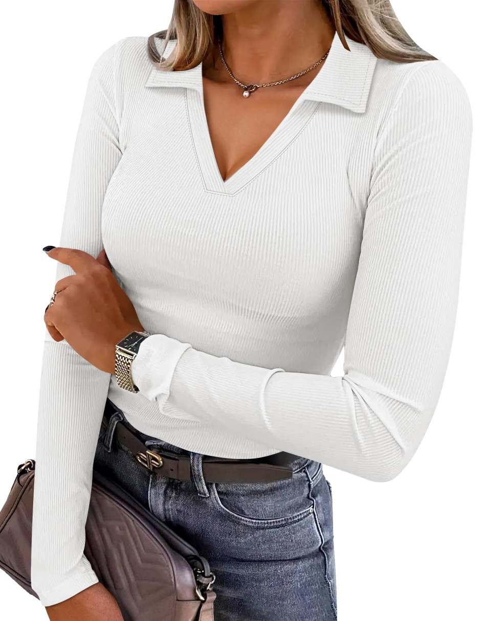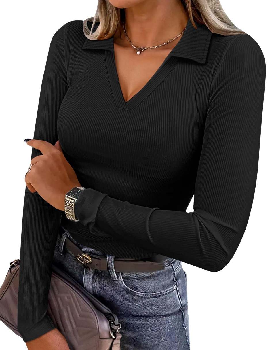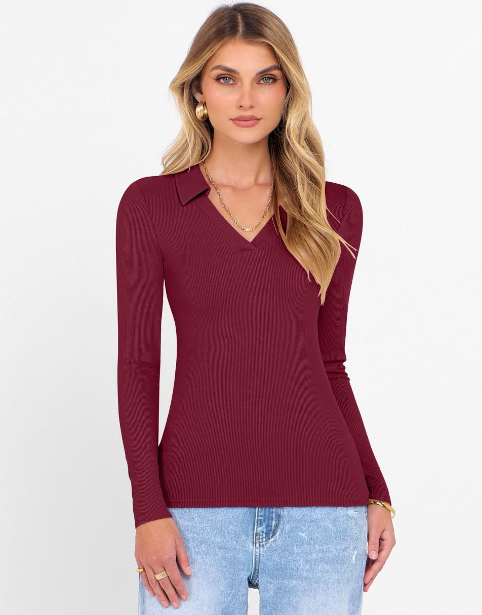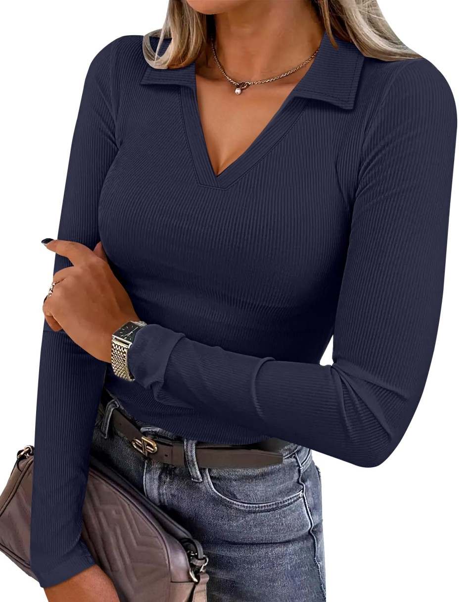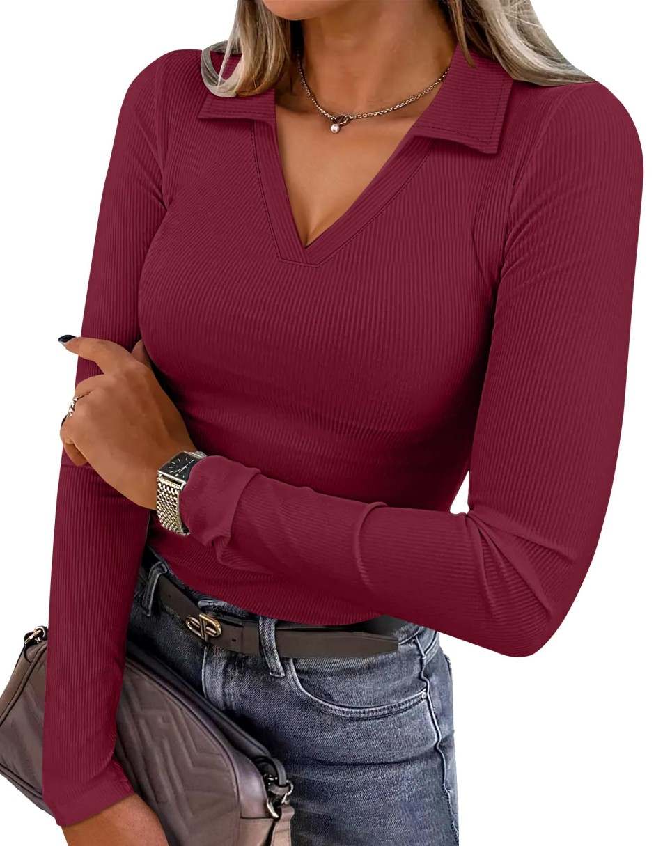 - Features - Our long sleeve V neck design is versatile and suitable for many occasions - wear it to office, the street, the cafe or just for everyday casual wear. The slim fit highlights your perfect figure, making you look confident and stylish wherever you go. Our tops are slim, comfortable, lightweight and very flattering, making them a must-have in your wardrobe.