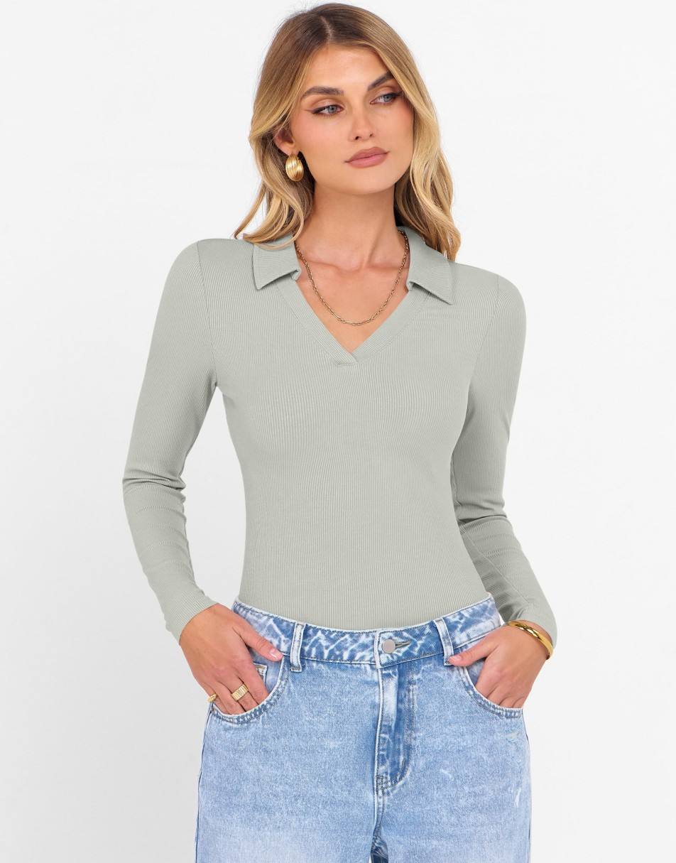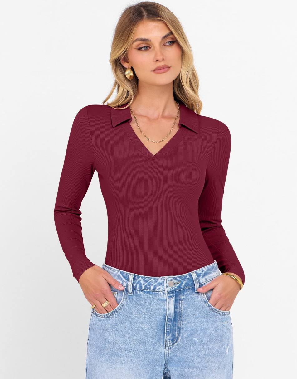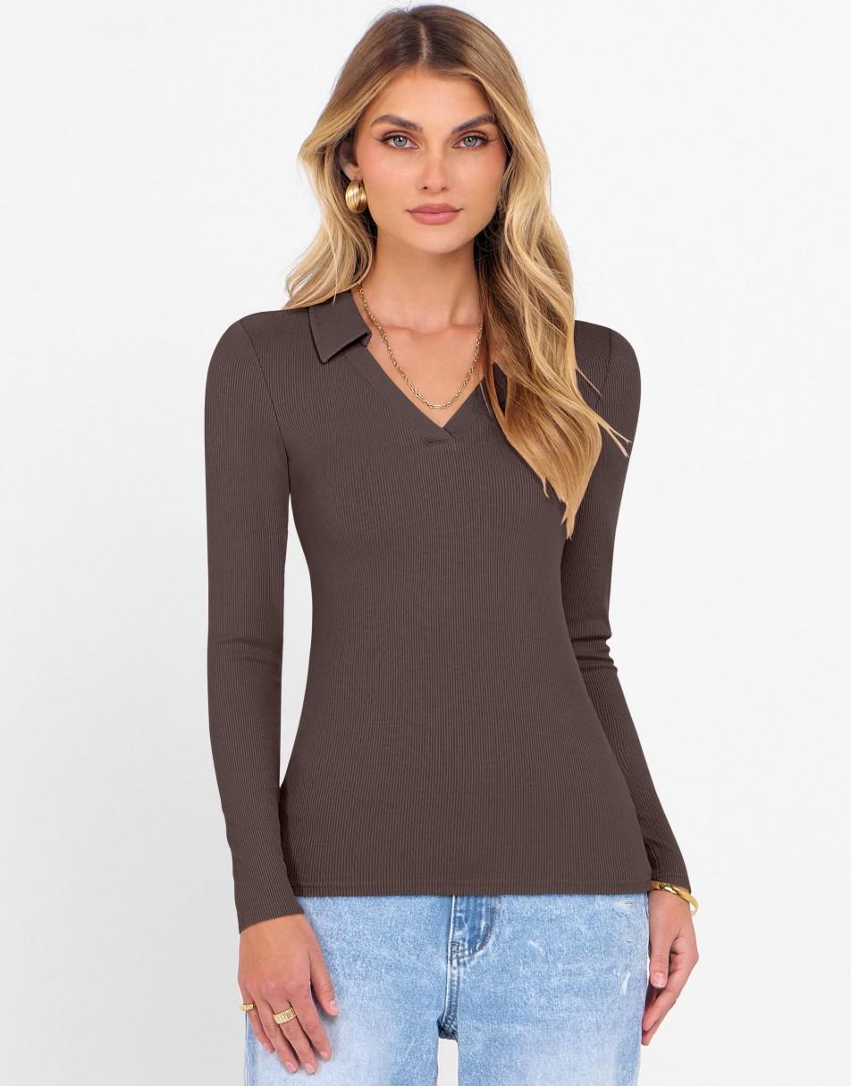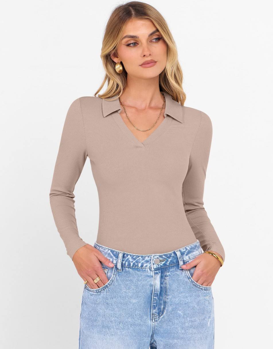 - Features - Our long sleeve V neck design is versatile and suitable for many occasions - wear it to office, the street, the cafe or just for everyday casual wear. The slim fit highlights your perfect figure, making you look confident and stylish wherever you go. Our tops are slim, comfortable, lightweight and very flattering, making them a must-have in your wardrobe.
