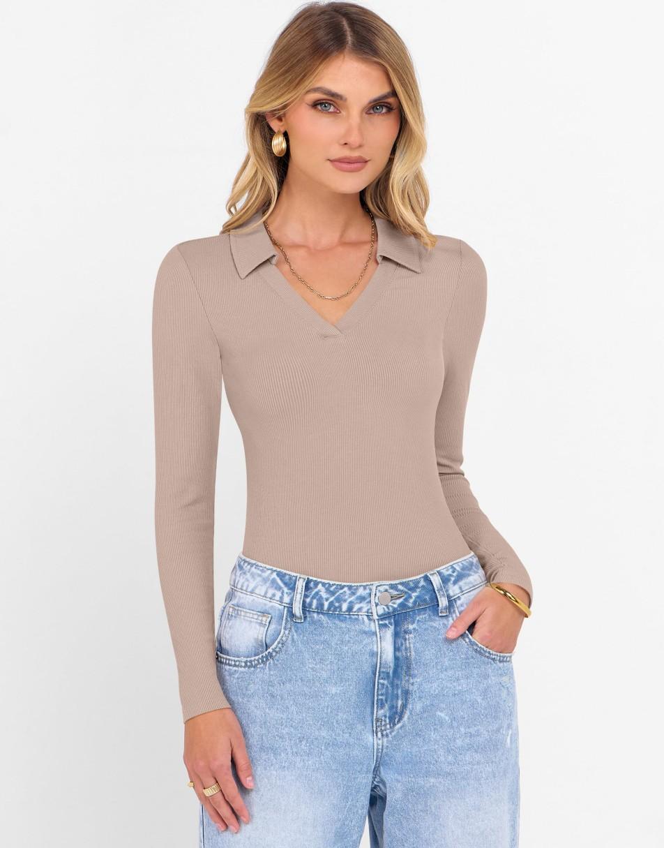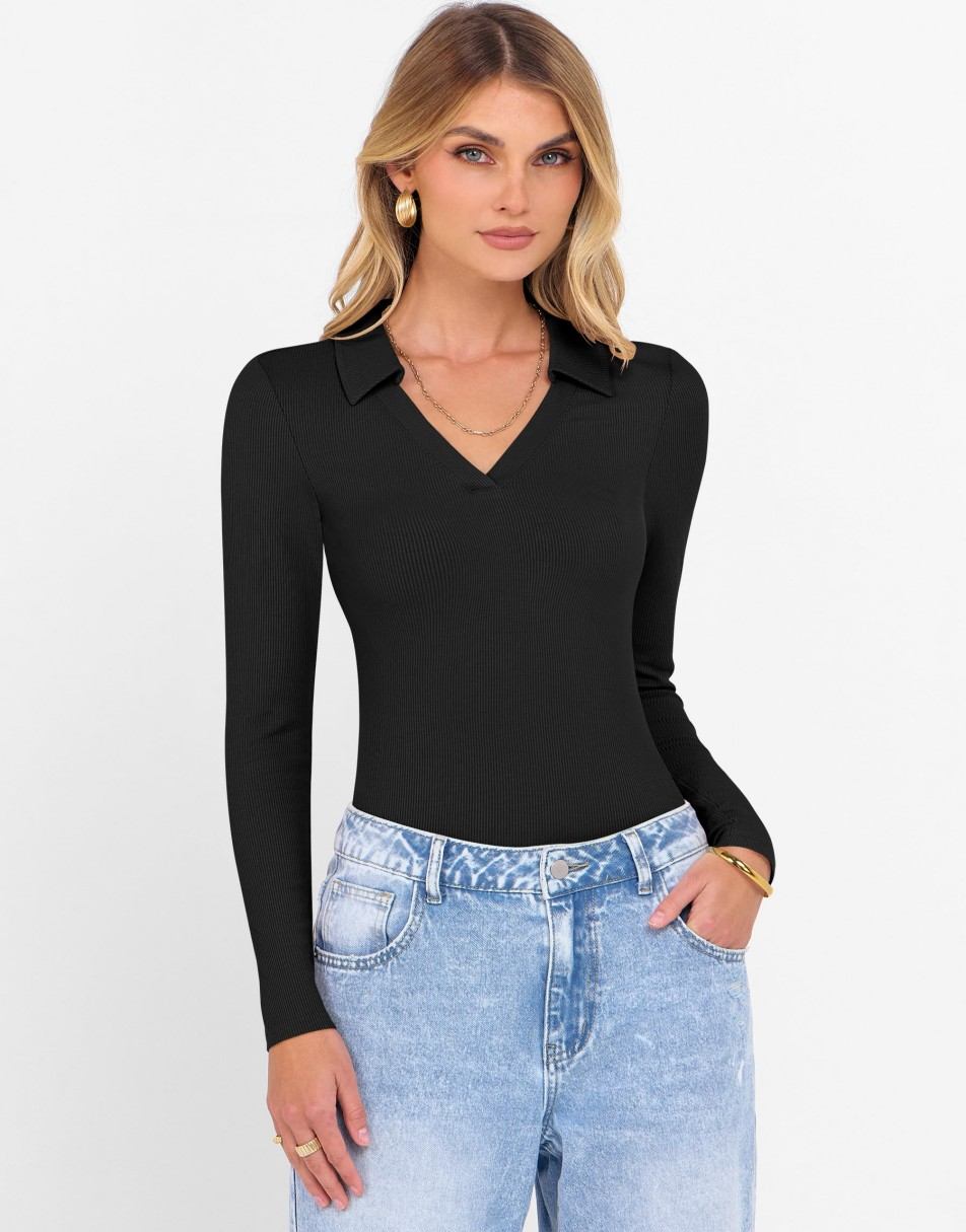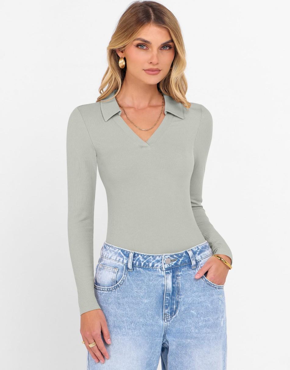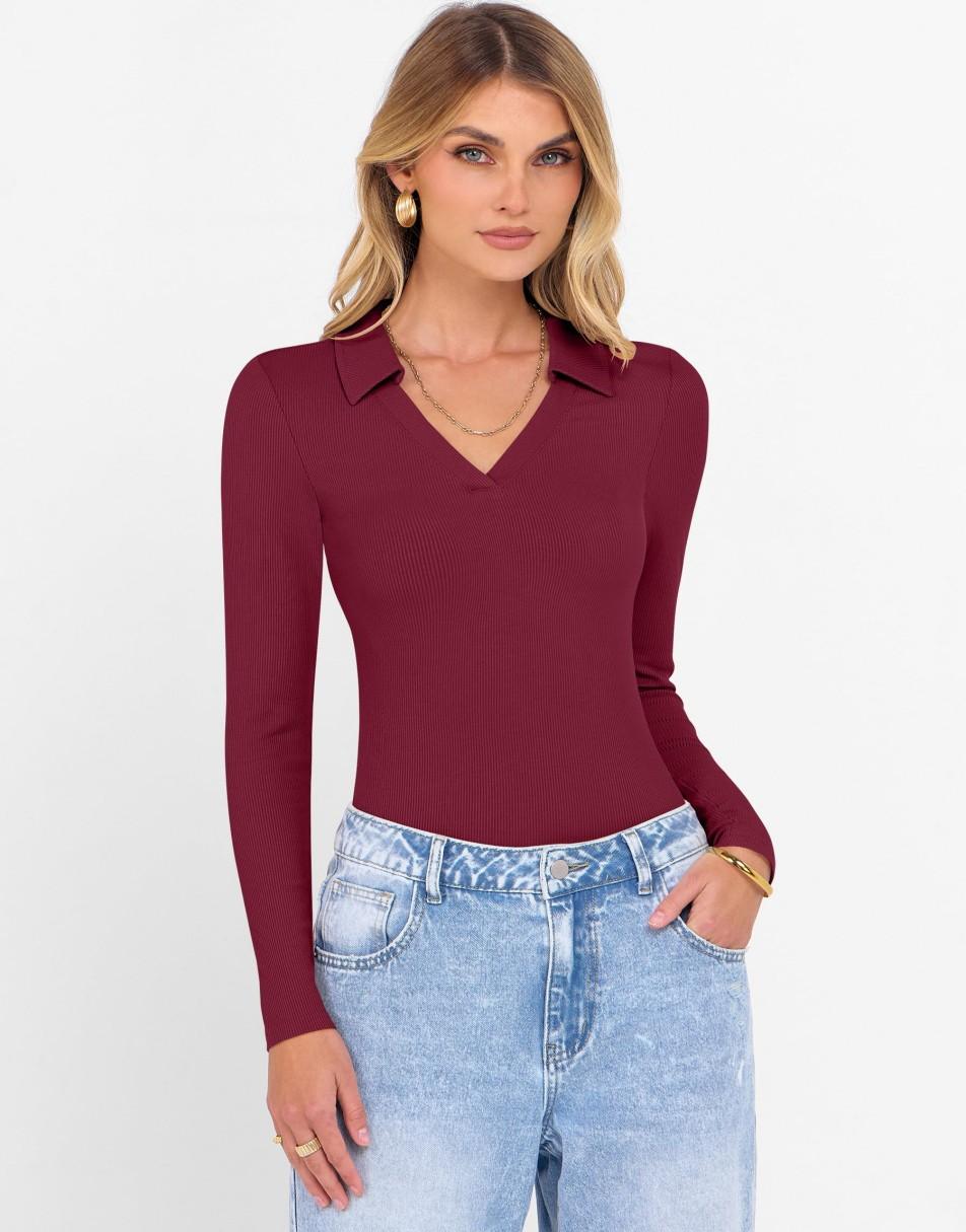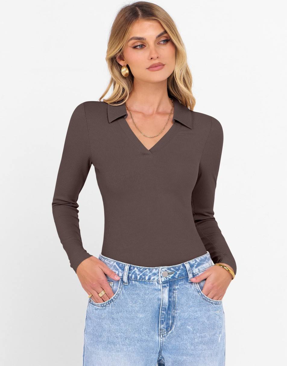 - Features - Our long sleeve V neck design is versatile and suitable for many occasions - wear it to office, the street, the cafe or just for everyday casual wear. The slim fit highlights your perfect figure, making you look confident and stylish wherever you go. Our tops are slim, comfortable, lightweight and very flattering, making them a must-have in your wardrobe.