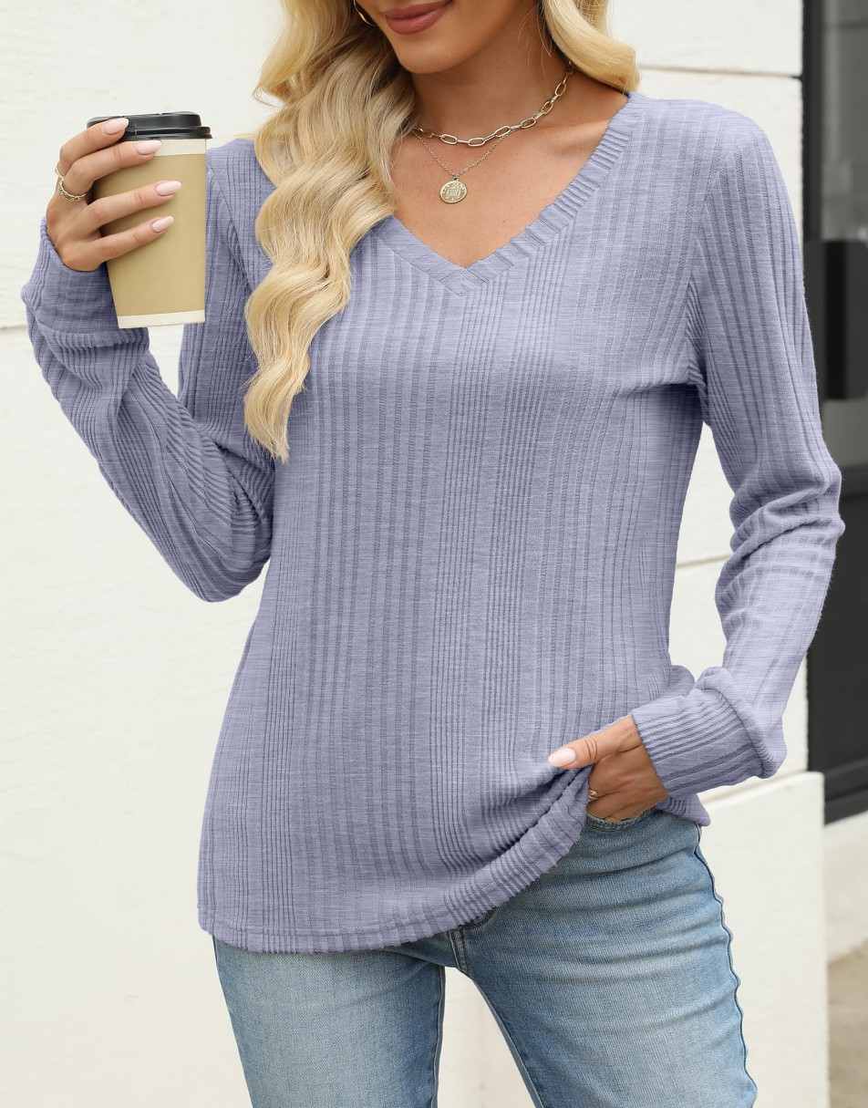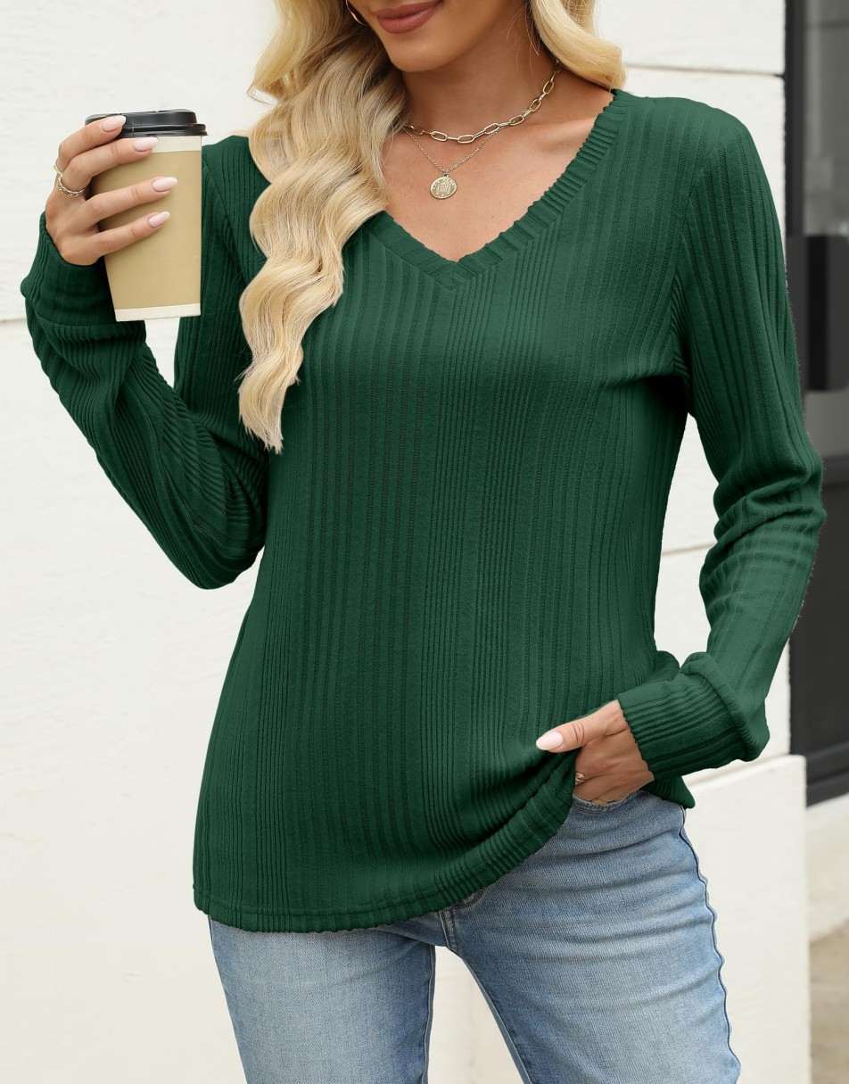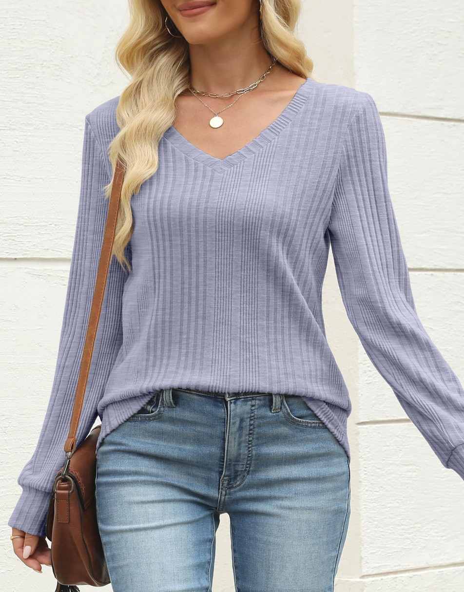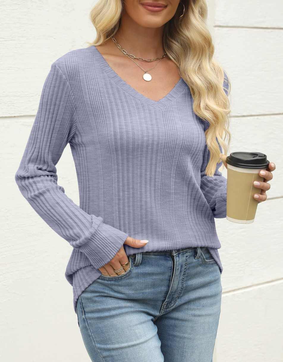 • ANRABESS Womens Long Sleeve Shirts V Neck Tunic Tops Ribbed Knit Lightweight Sweaters 2025 Fall Dressy Casual Blouses