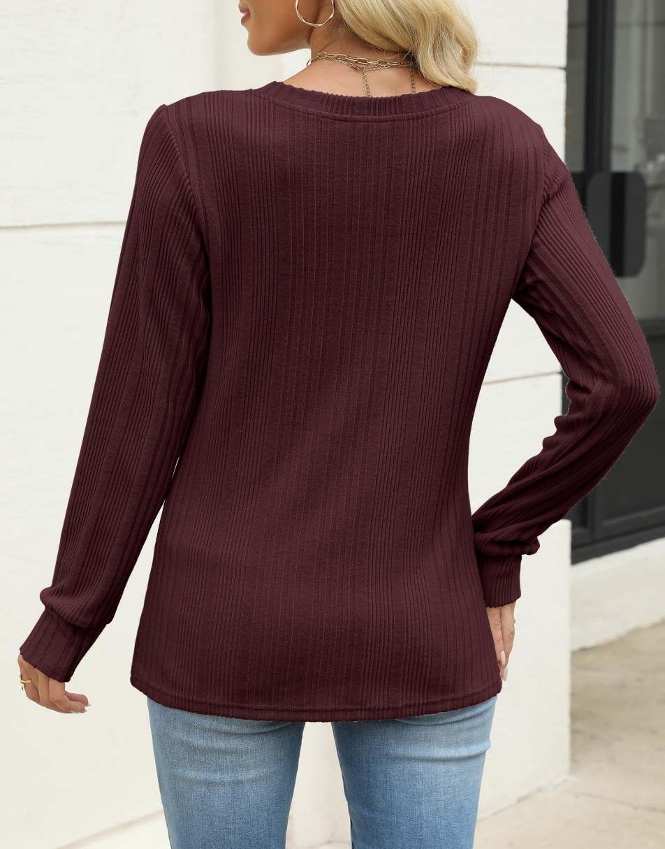 ANRABESS Womens Long Sleeve Shirts V Neck Tunic Tops Ribbed Knit Lightweight Sweaters 2025 Fall Dressy Casual Blouses