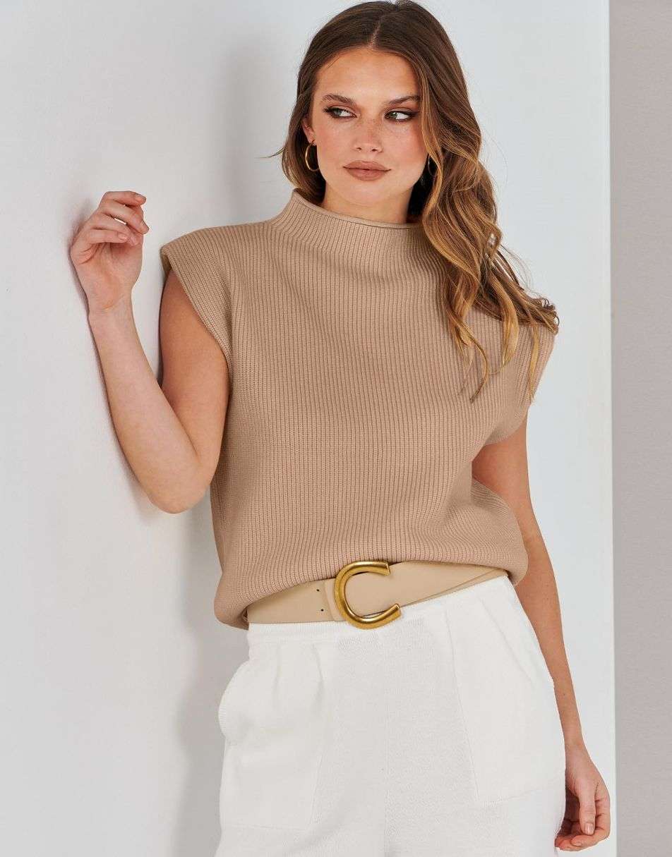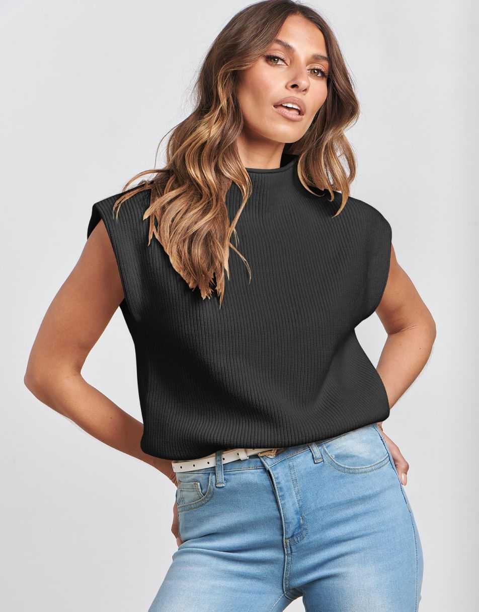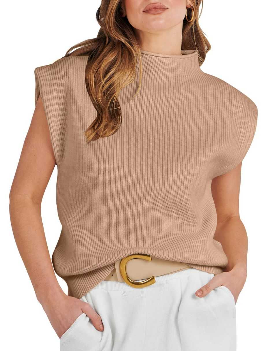 • ANRABESS Women's Mock Neck Sleeveless Sweater Vest Casual Solid Cap Sleeve Knit Pullover Tank Tops 2023 Colthes