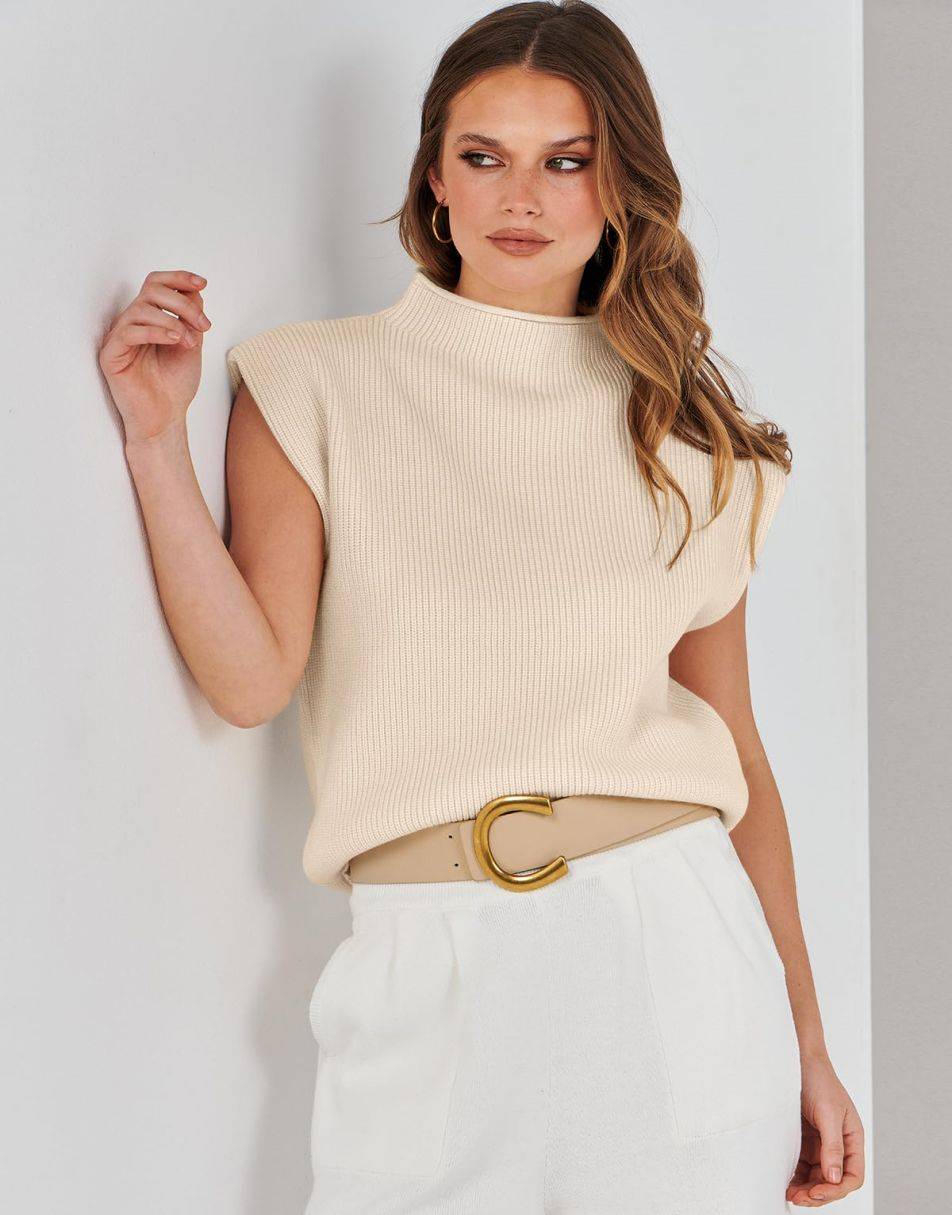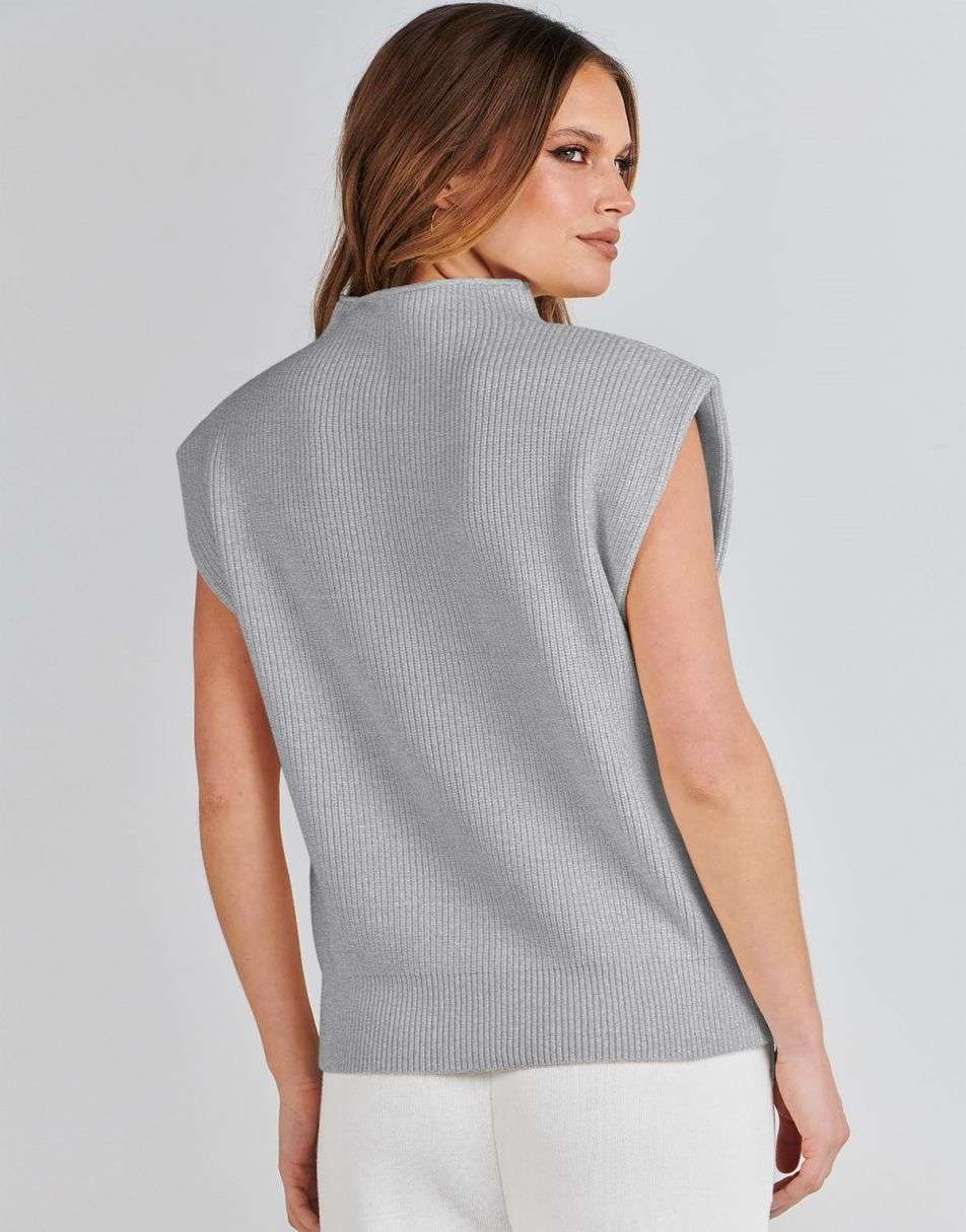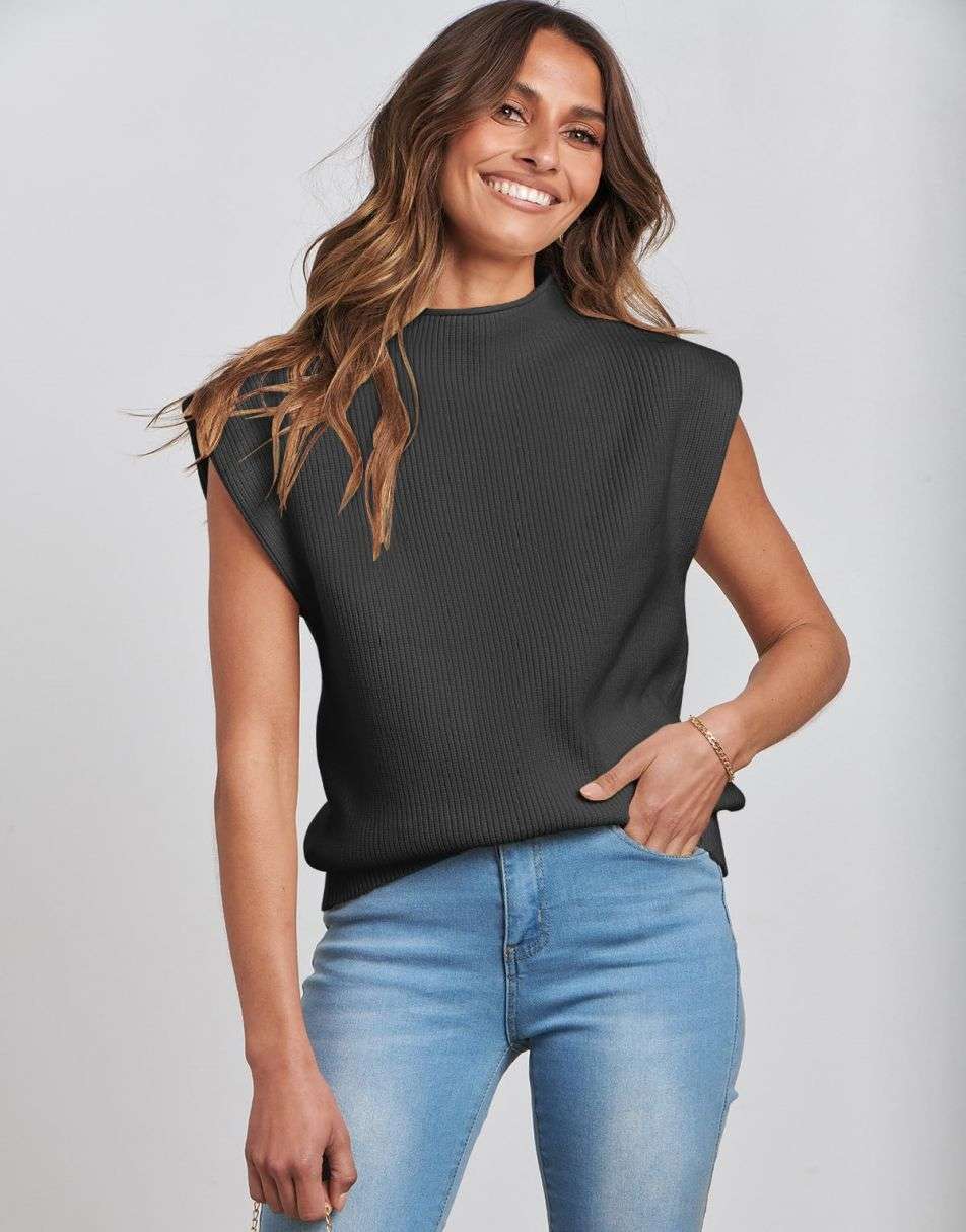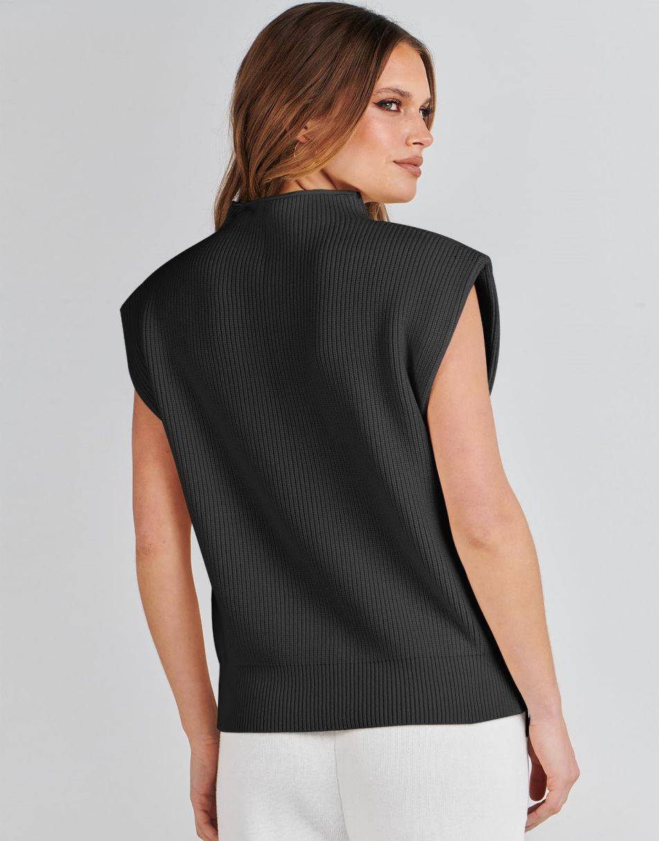 • ANRABESS Women's Mock Neck Sleeveless Sweater Vest Casual Solid Cap Sleeve Knit Pullover Tank Tops 2023 Colthes
