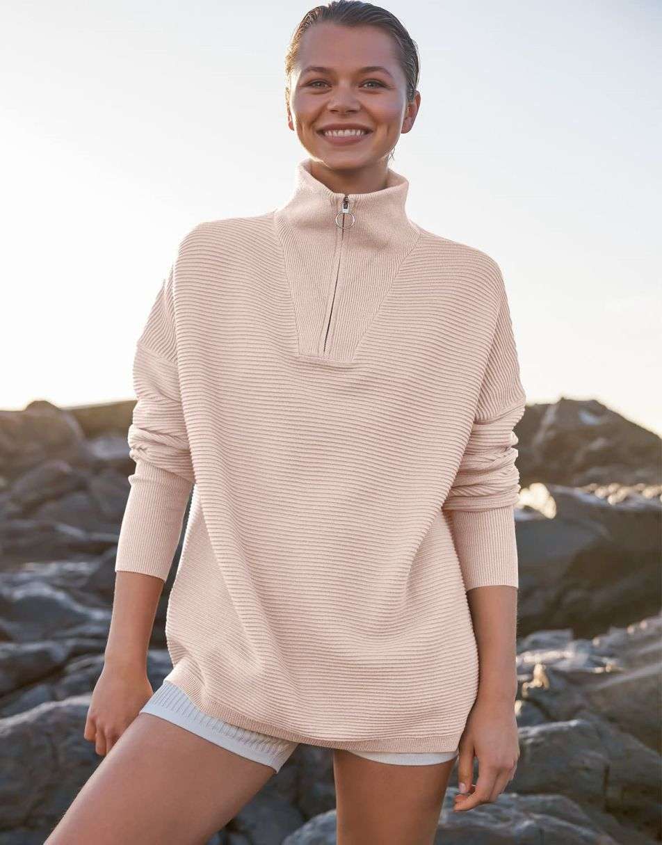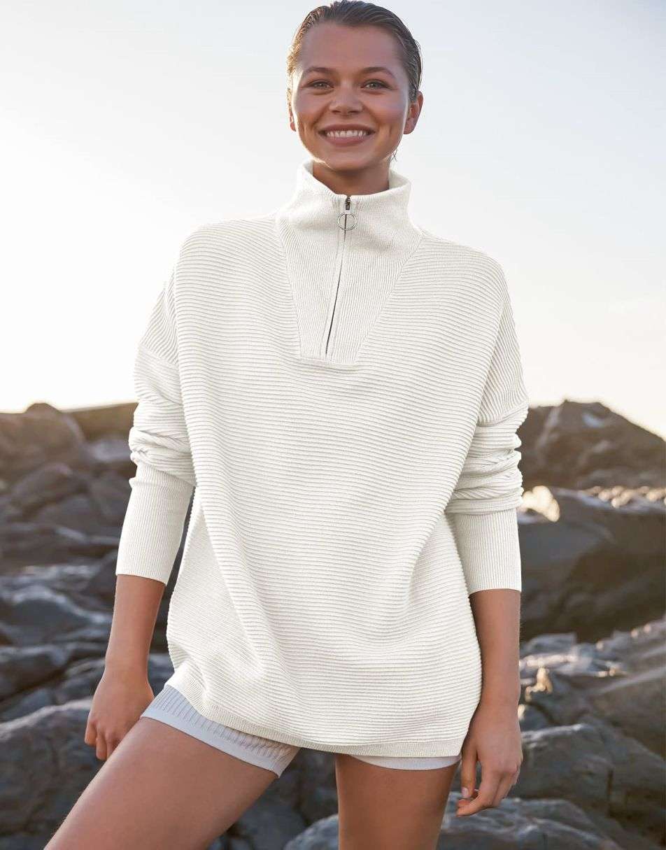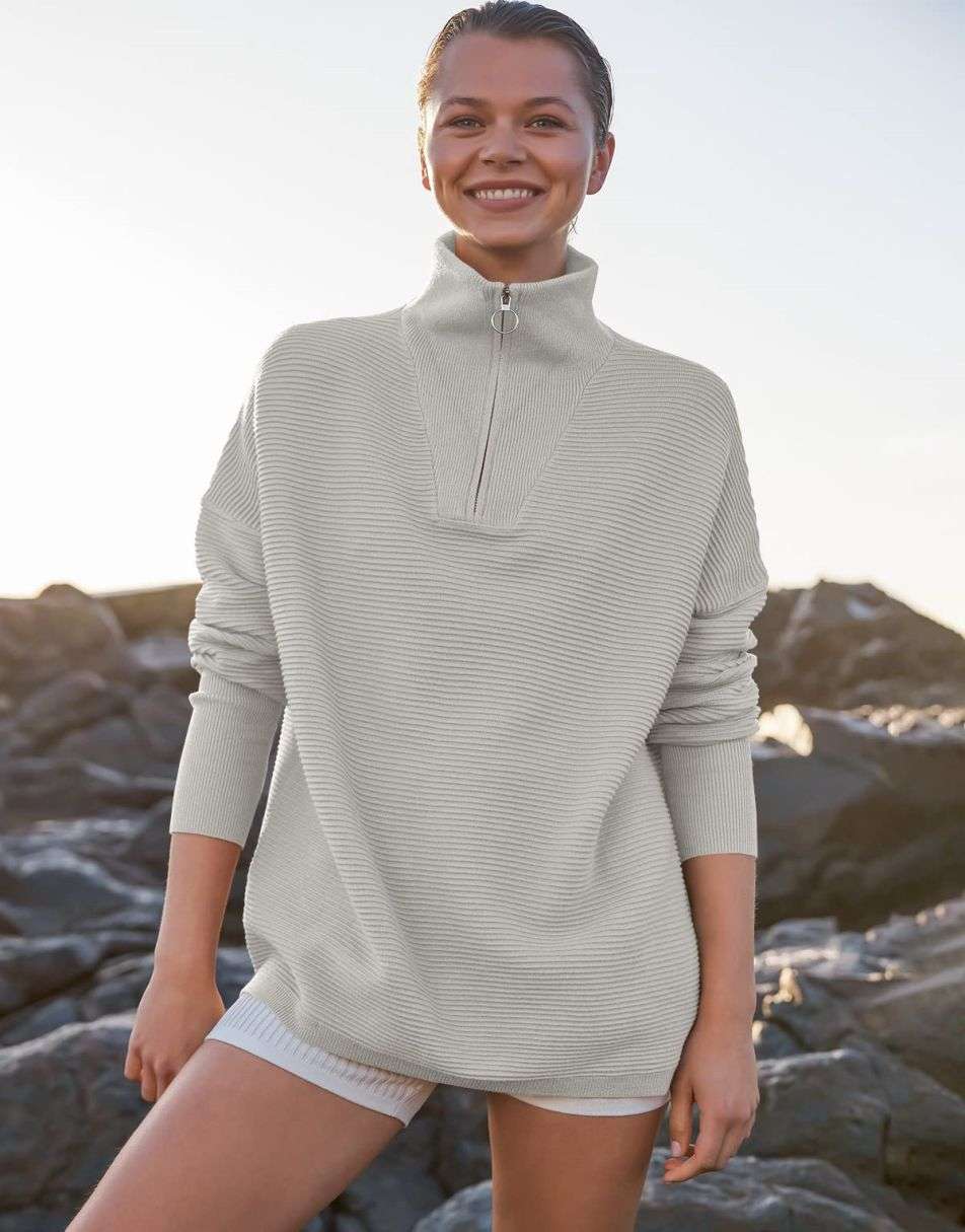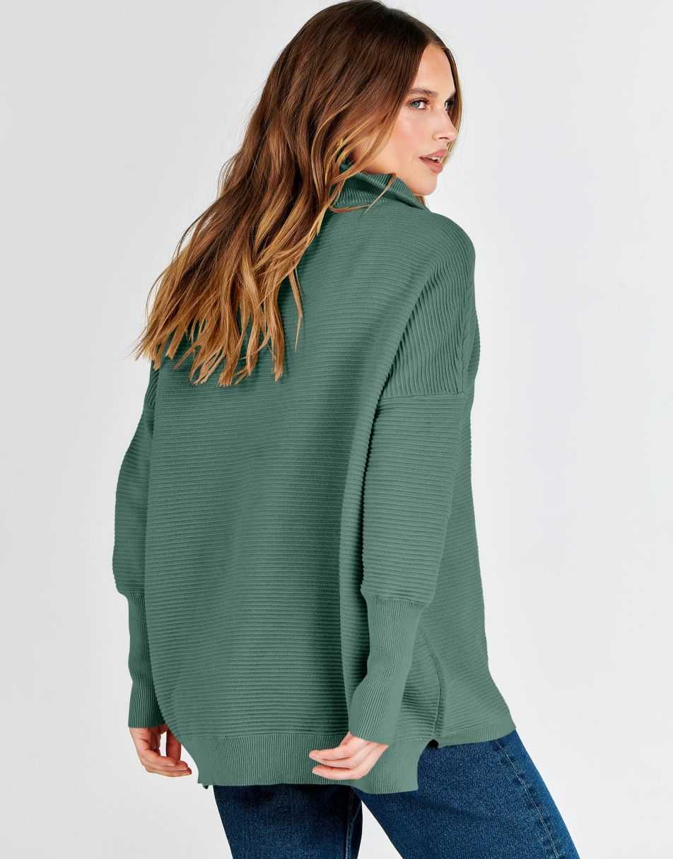• Design - 2023 fall / winter fashion sweater,quarter zipper,v neck,collared,oversized style,Slit Side,long sleeve,ribbed knit tunic sweater.
