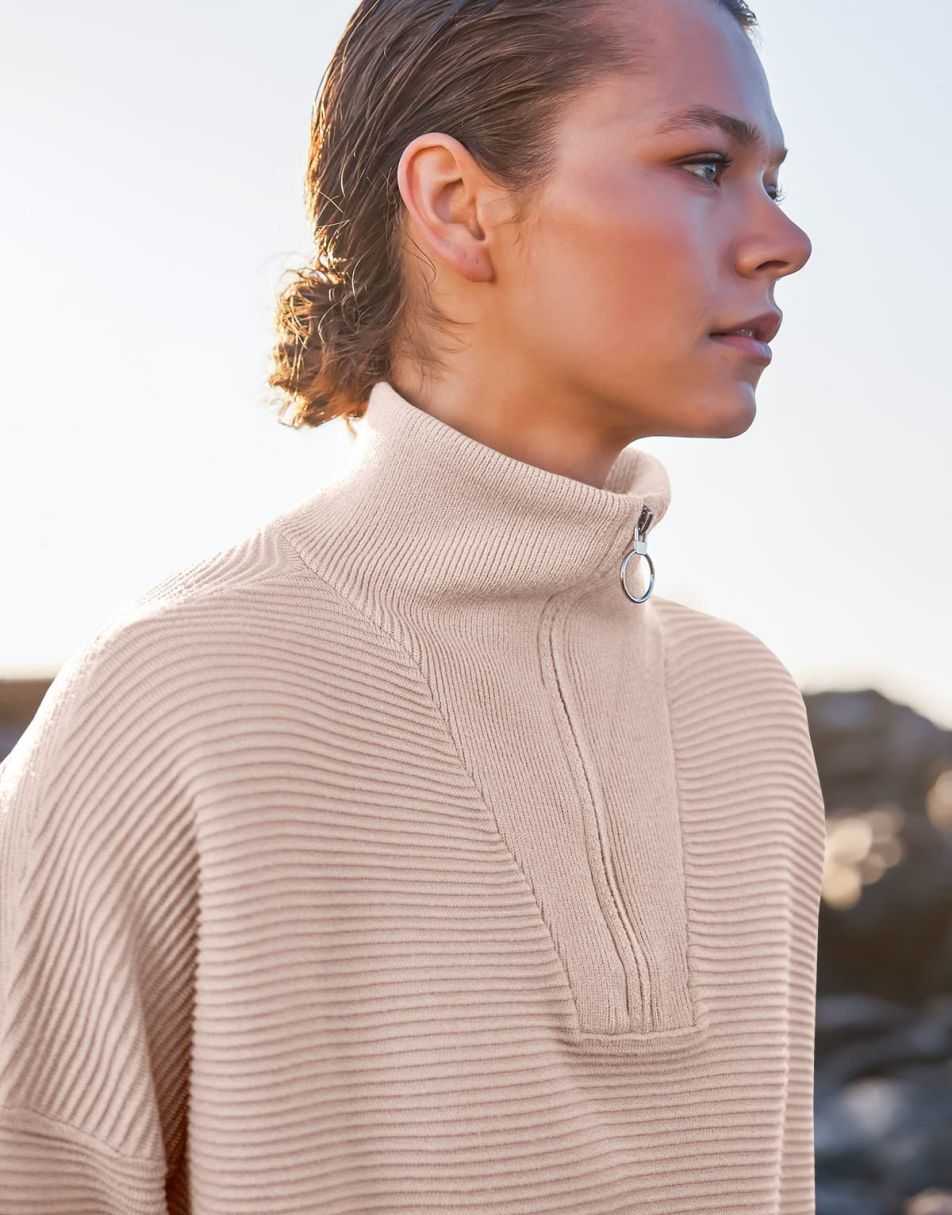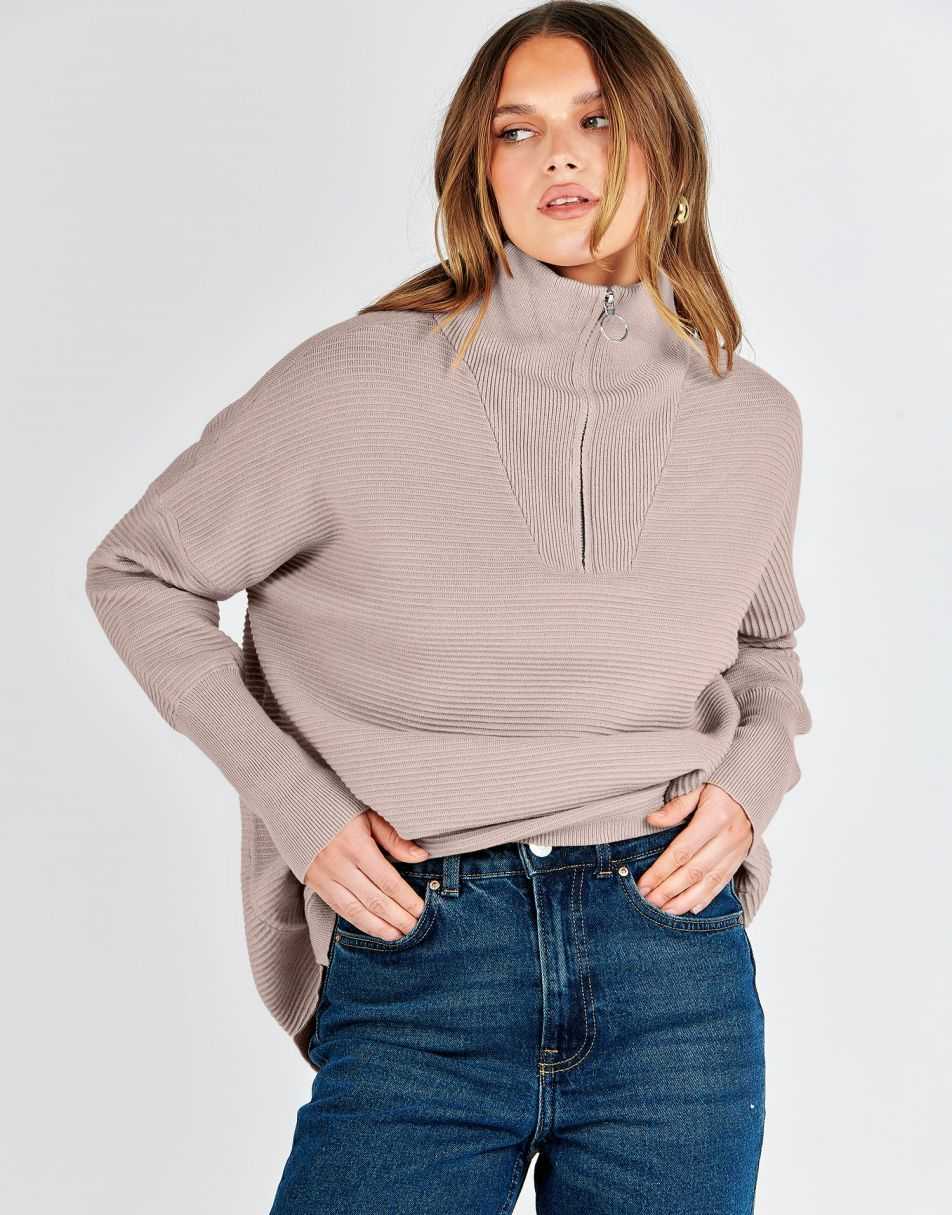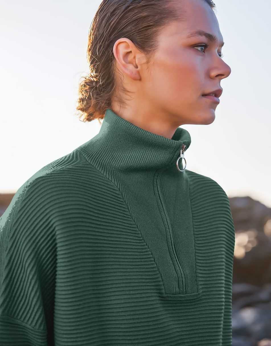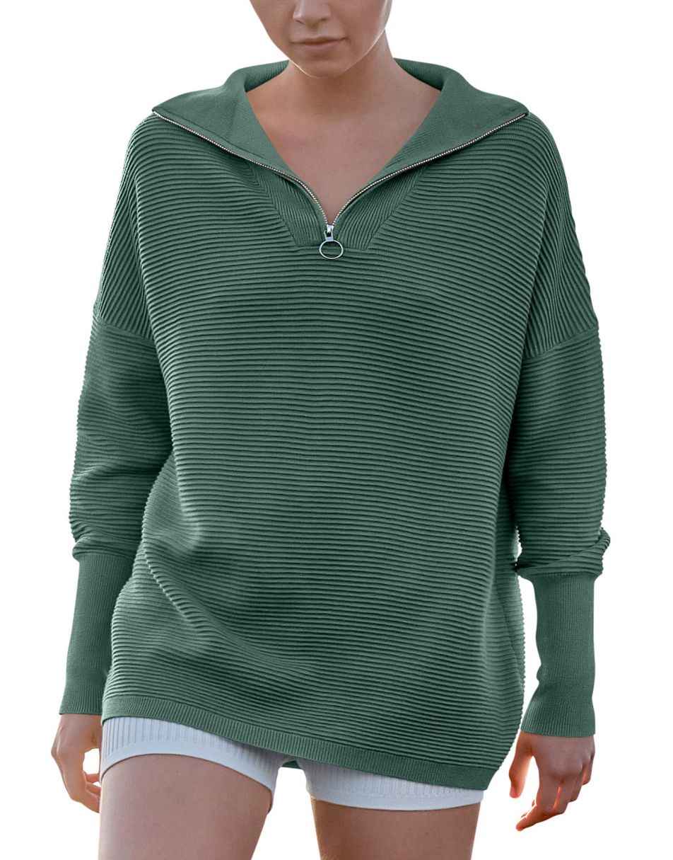 • Design - 2023 fall / winter fashion sweater,quarter zipper,v neck,collared,oversized style,Slit Side,long sleeve,ribbed knit tunic sweater.